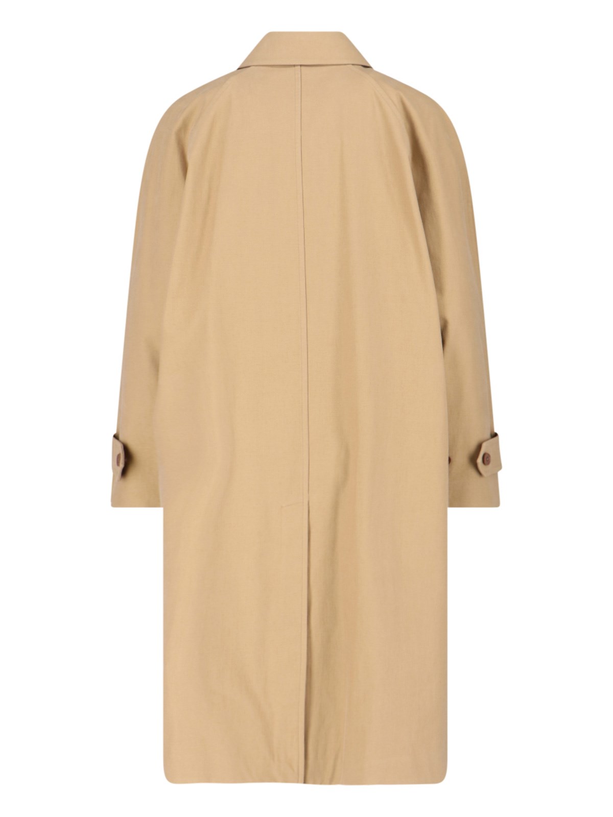 The Row "Pluma" beige cotton and cashmere coat with classic collar, hidden button closure, two side pockets, buttons on adjustable cuffs, back split detail, straight hem.