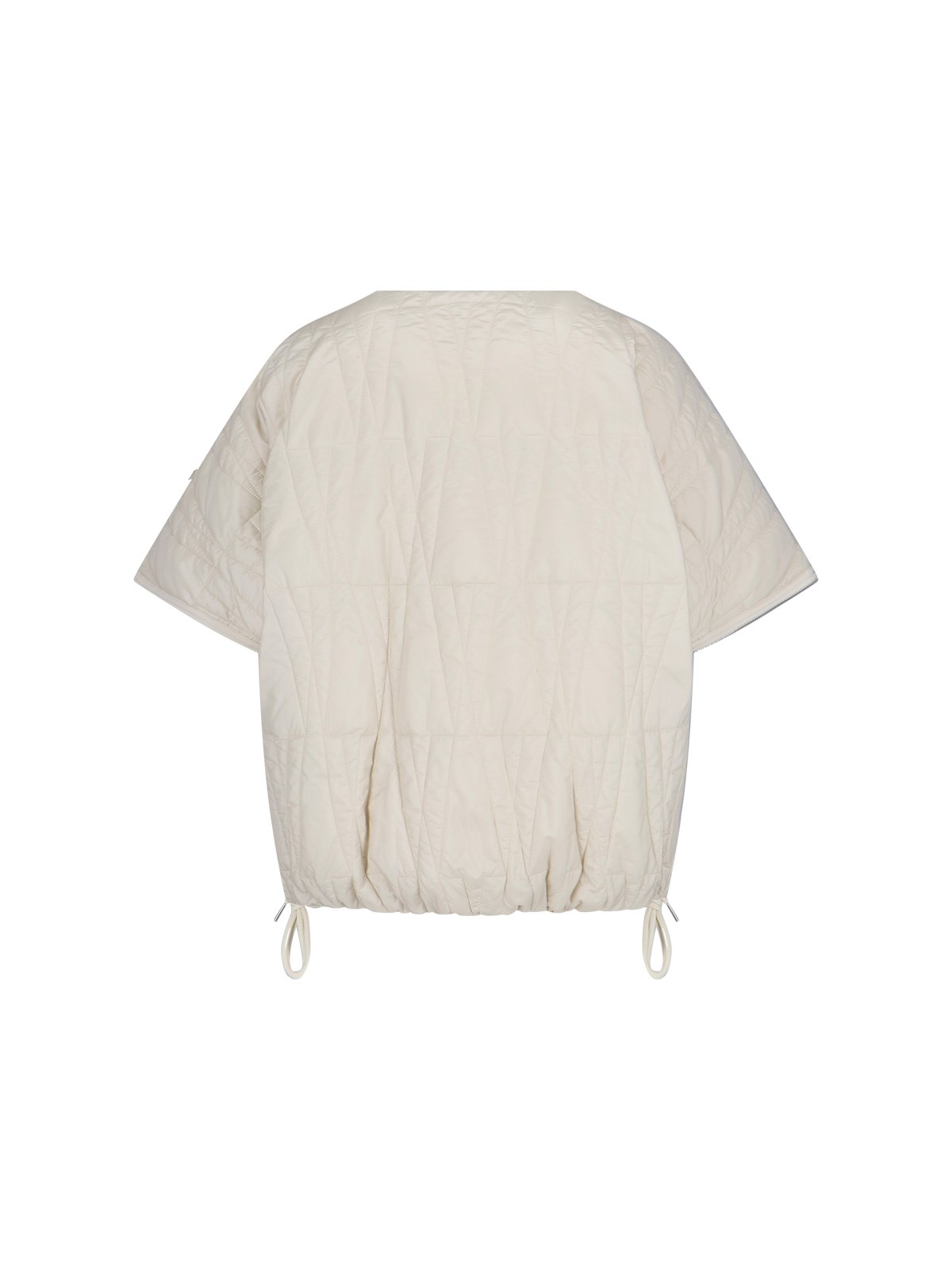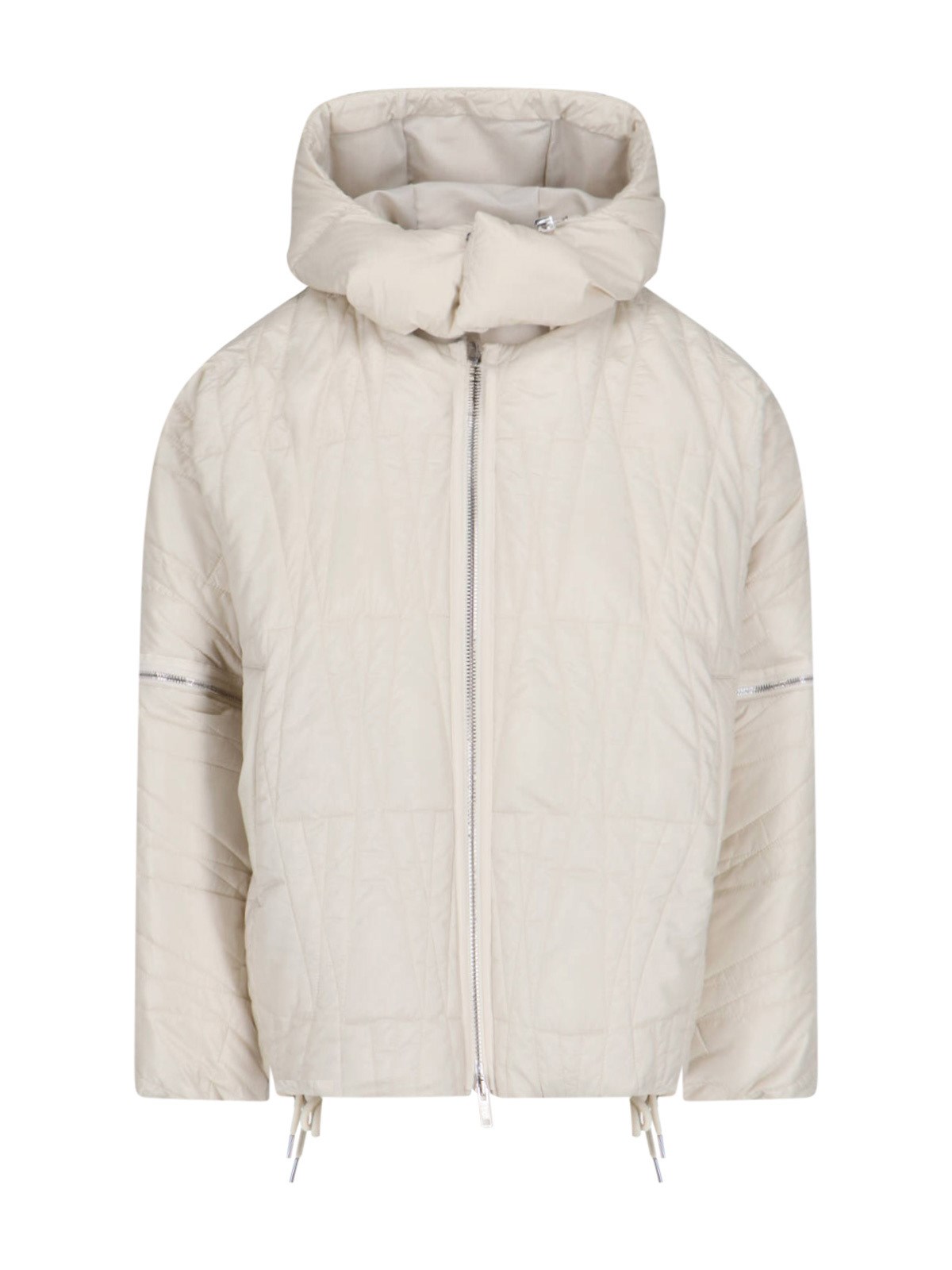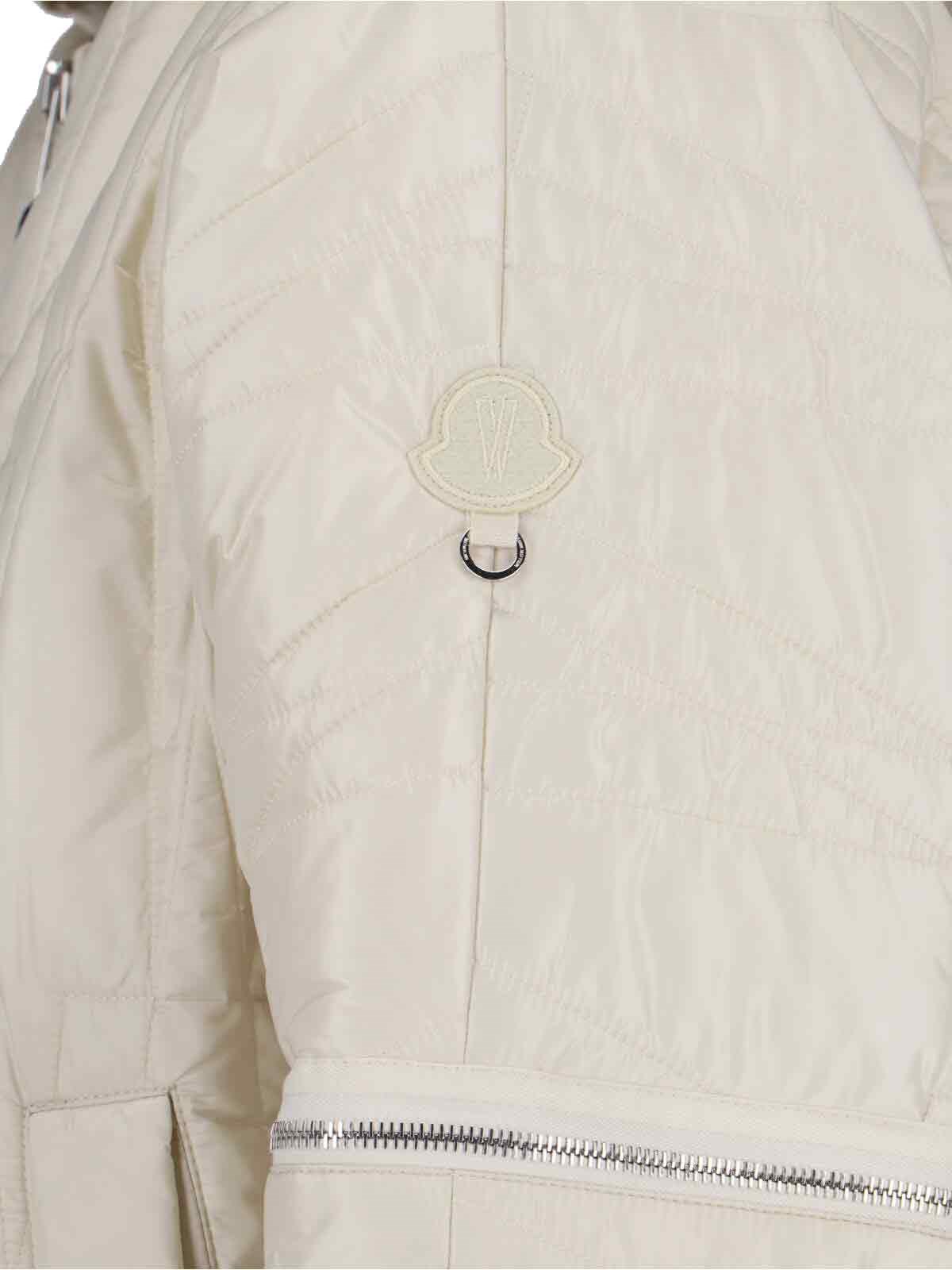 Moncler Genius x Willow Smith "Haissa 2 in 1" short down jacket in cream fabric with quilted and padded design, removable drawstring hood, side cut-out details, high neck, double zip closure, two side button pockets, removable sleeves, tonal logo patch on the sleeve, drawstring on the hem, straight hem.