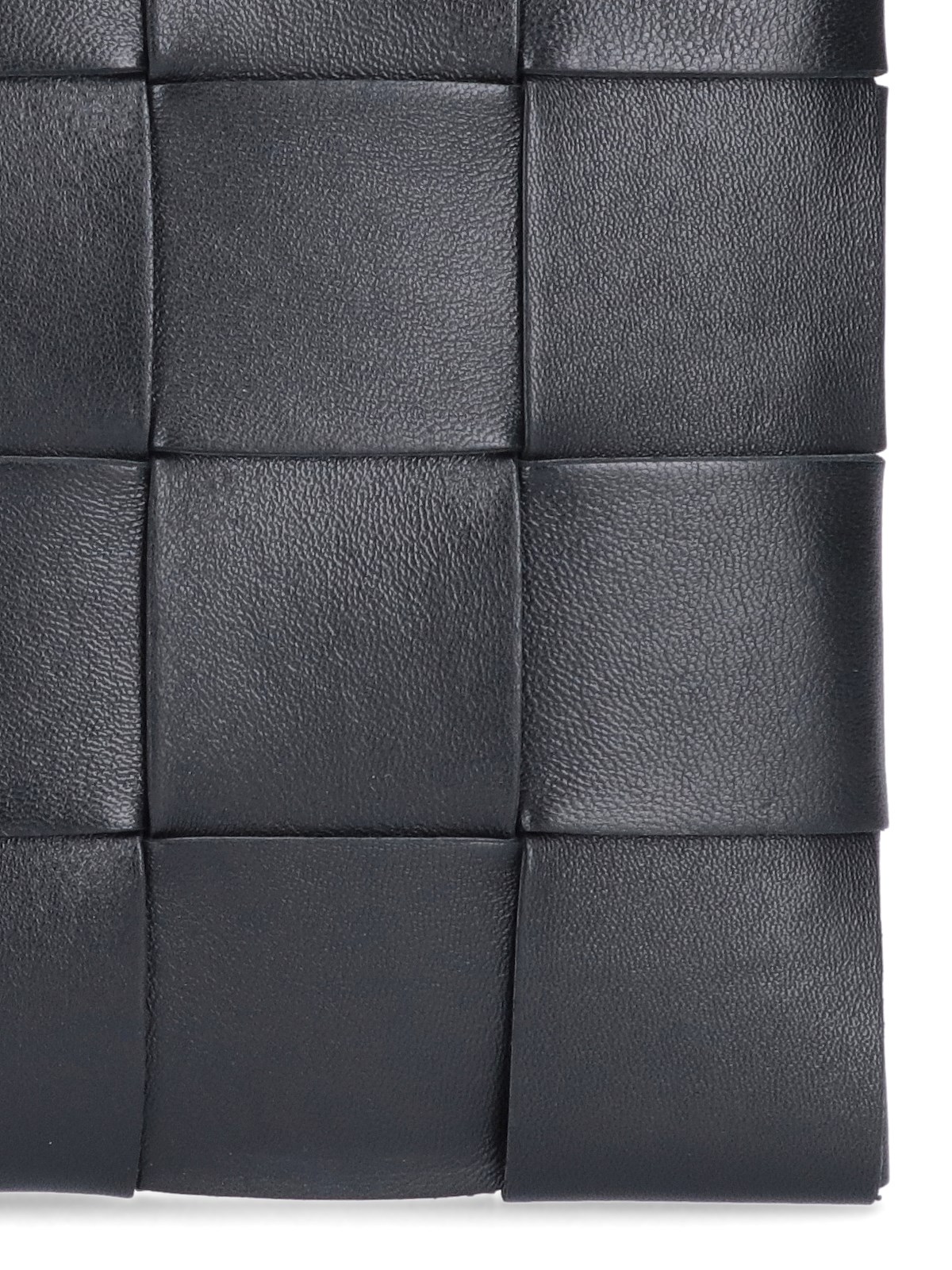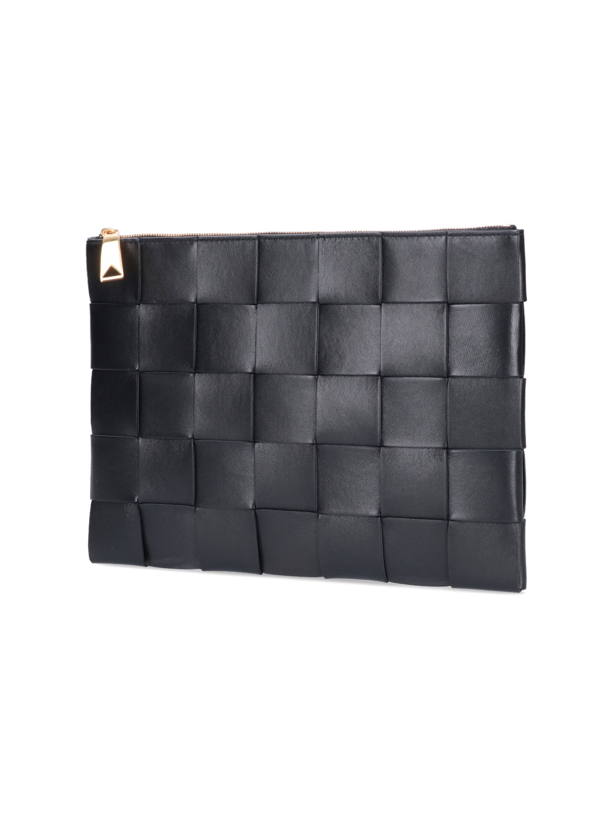 Bottega Veneta "Intrecciato" Pochette, black leather, top zipper closure, gold metallic hardware, one inside pocket.