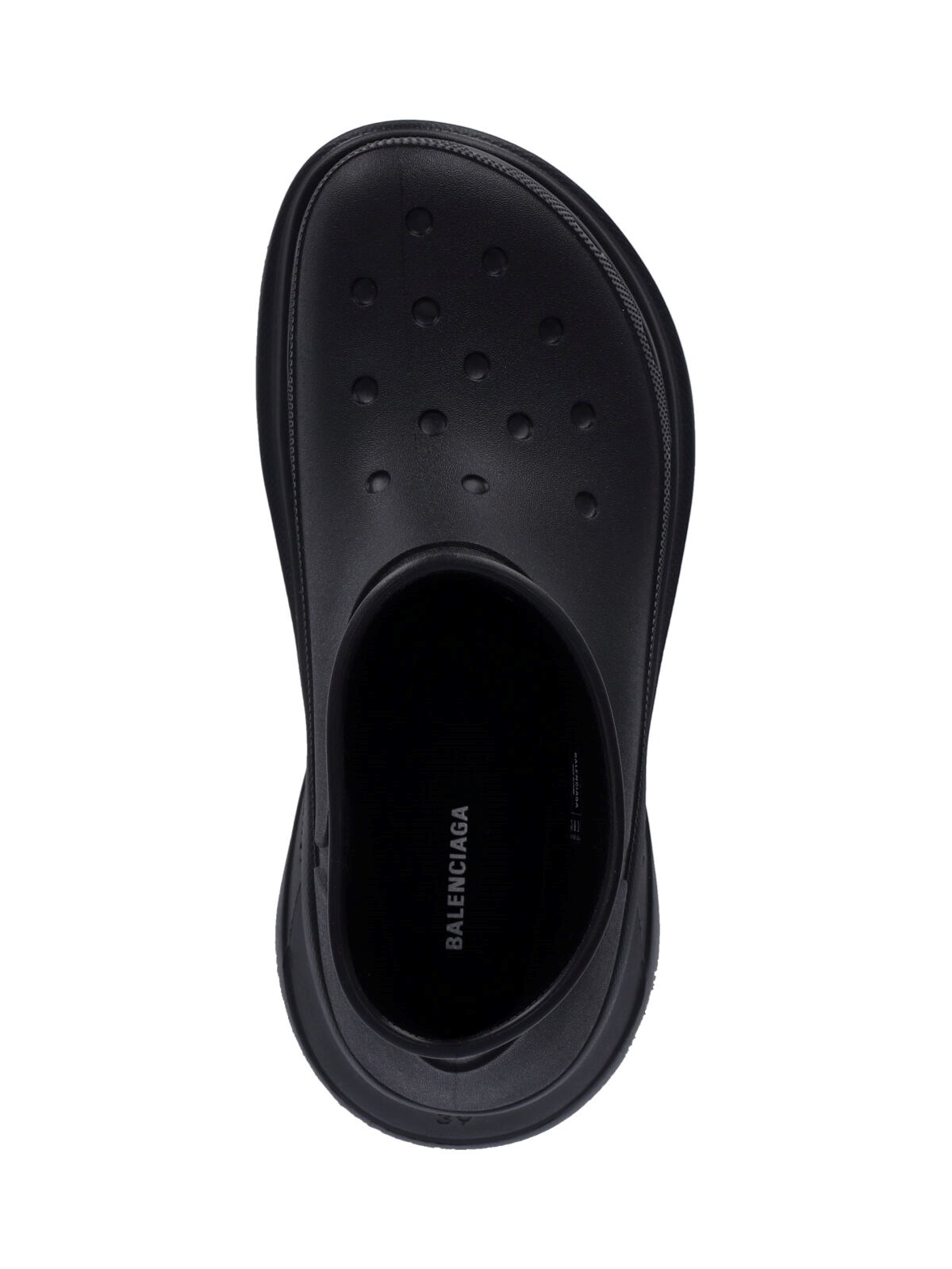 Balenciaga X Crocs black rubber ankle boots¢â with round toe, openwork details, embossed logo on the top, slip-on fit, rubber platform sole.