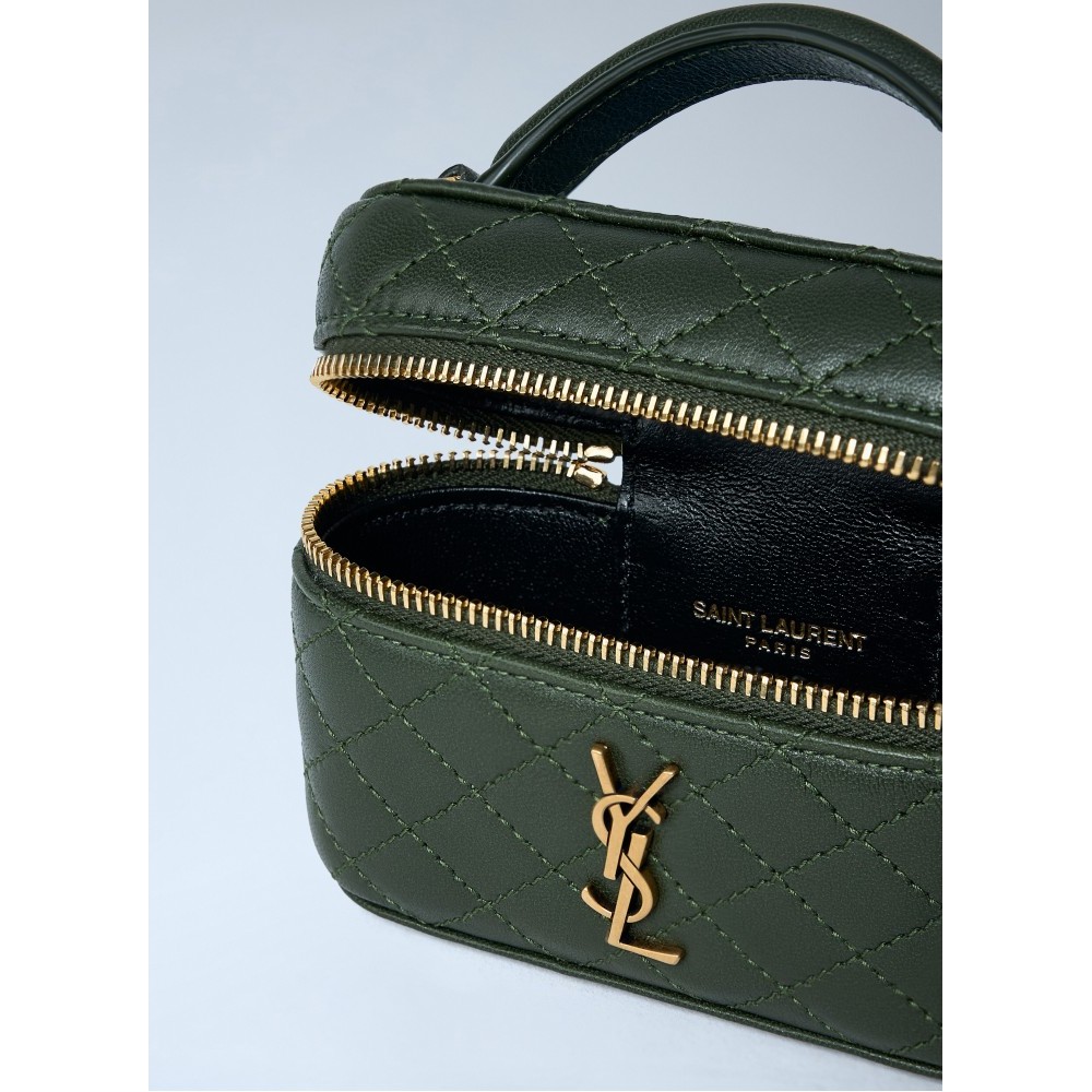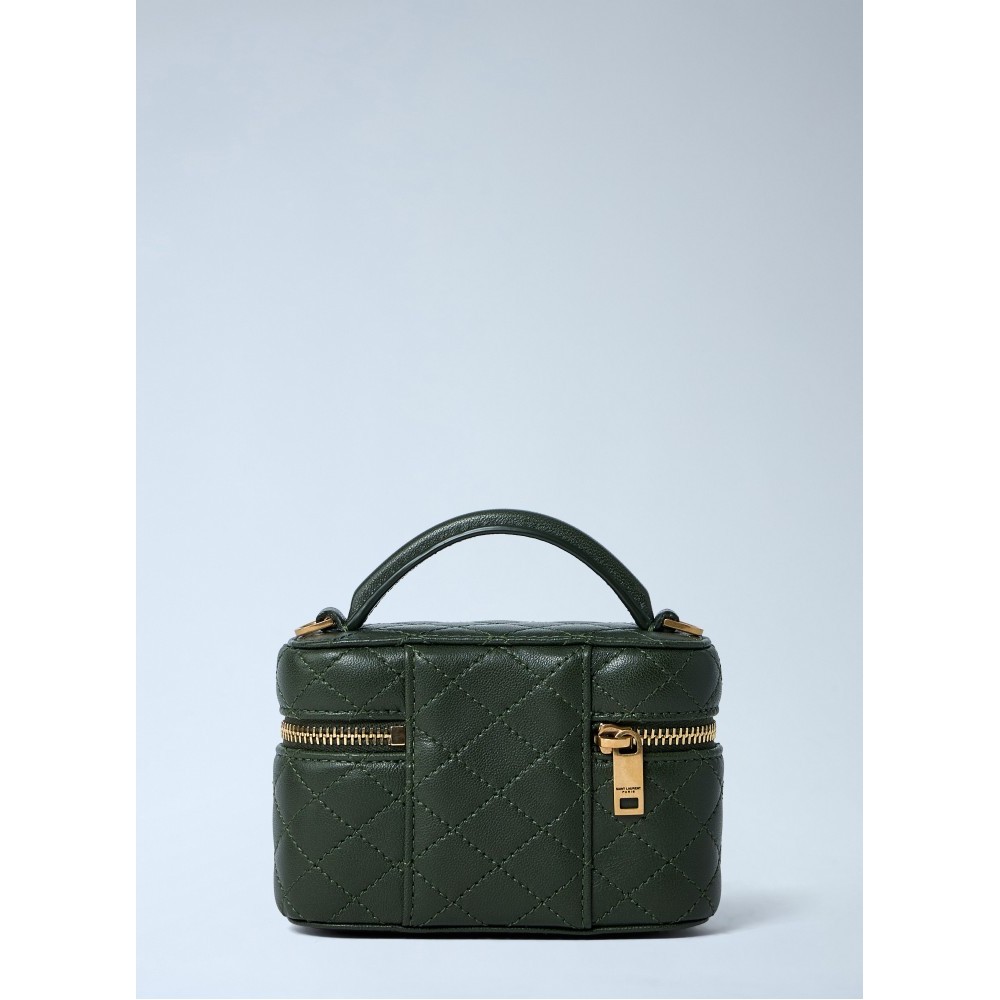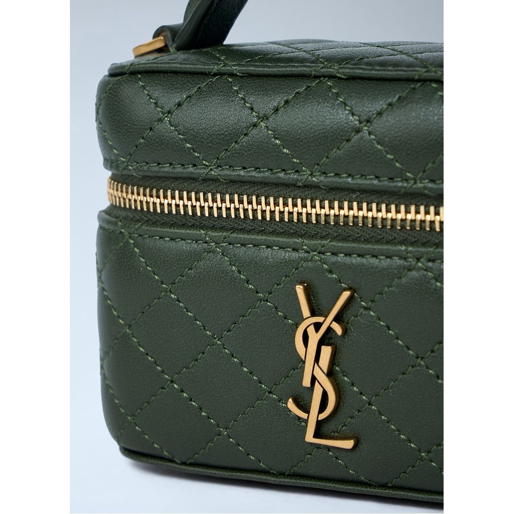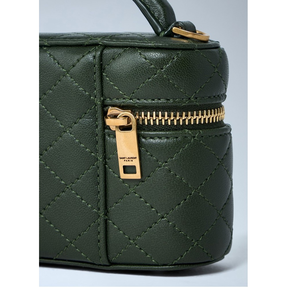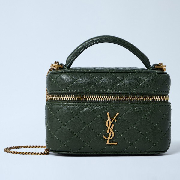 Quilted leather handbag with gold-tone hardware.