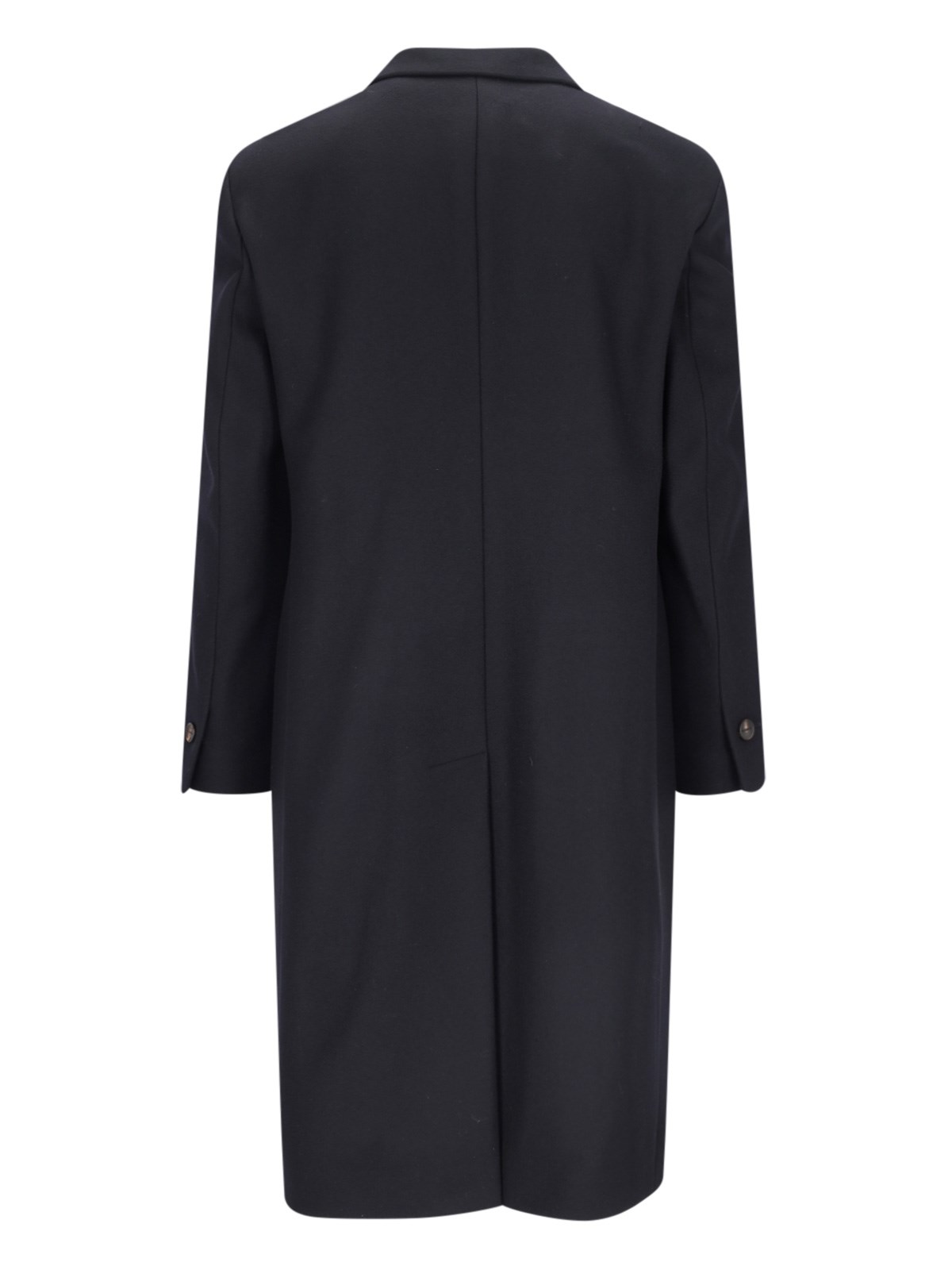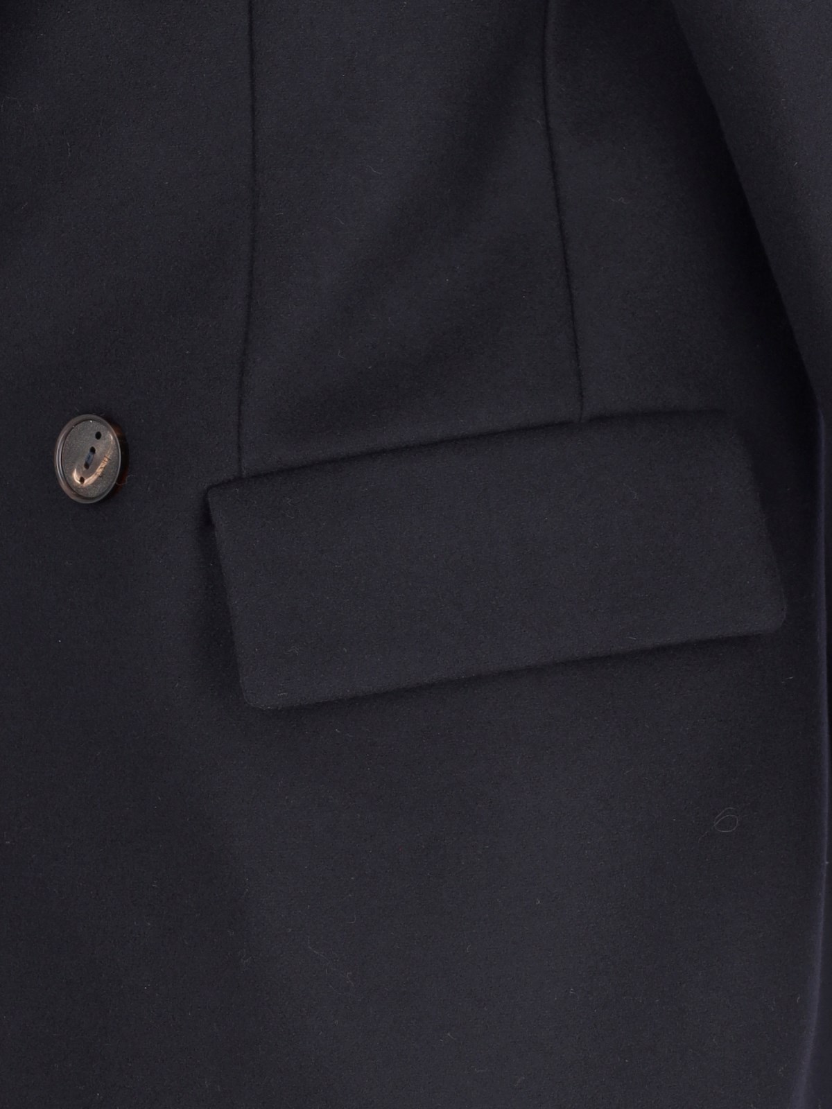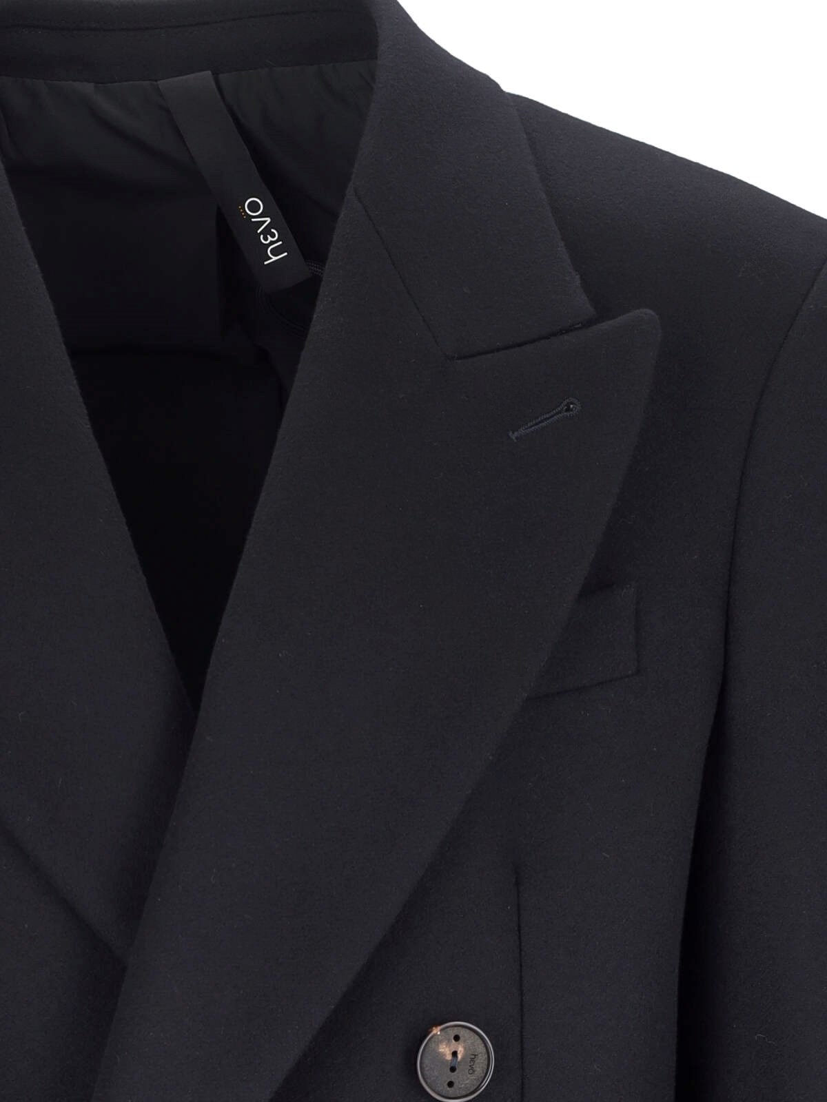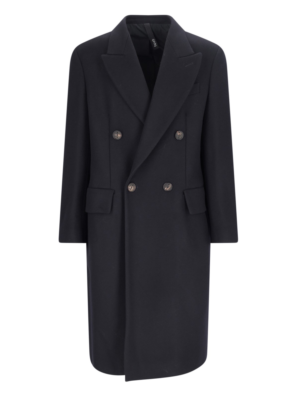 Hevo ¡®Martina¡¯ double-breasted coat, in blue virgin wool blend, navy tone, peaked lapels, button fastening, button cuffs, chest pocket, two front flap pockets, central back vent, straight hem.