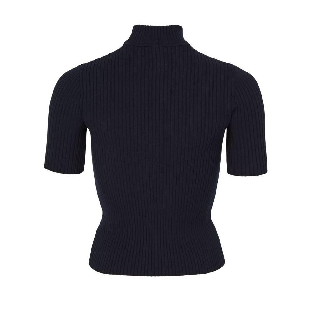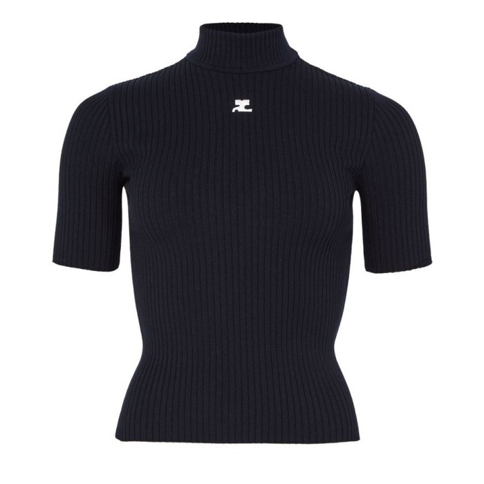 Description : Embroidered logo, chest logo, ribbed, mockneck, short-sleeved.
