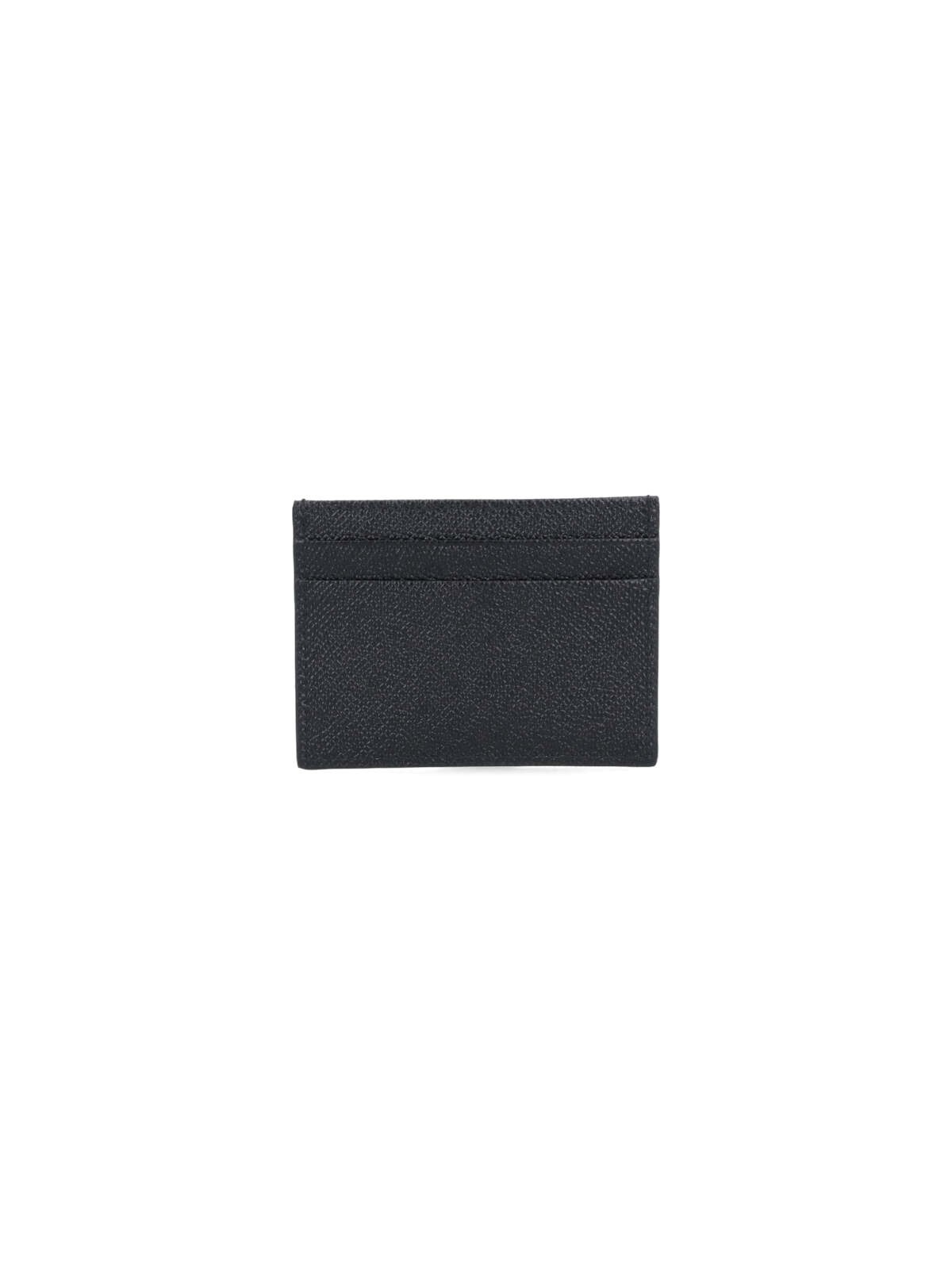 Dolce & Gabbana Logo Card Holder, black grained leather, one flat top pocket, two card slots front, metal logo plate front, two card slots back.