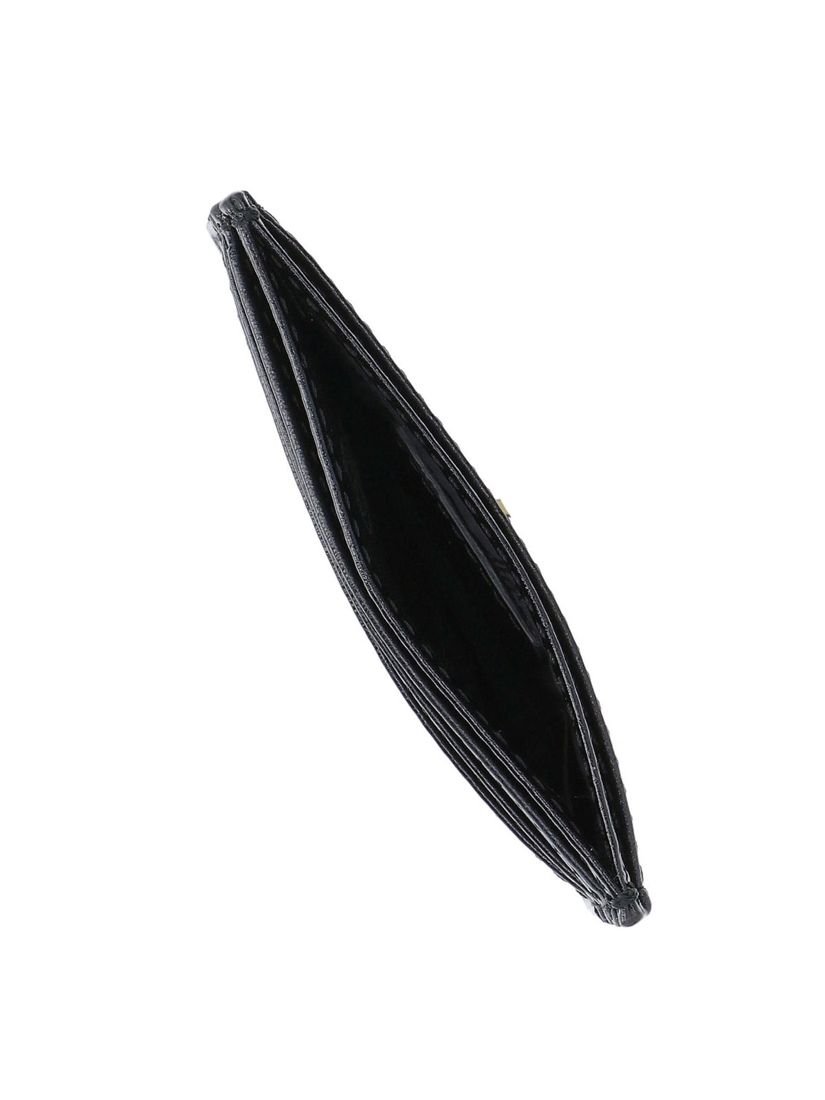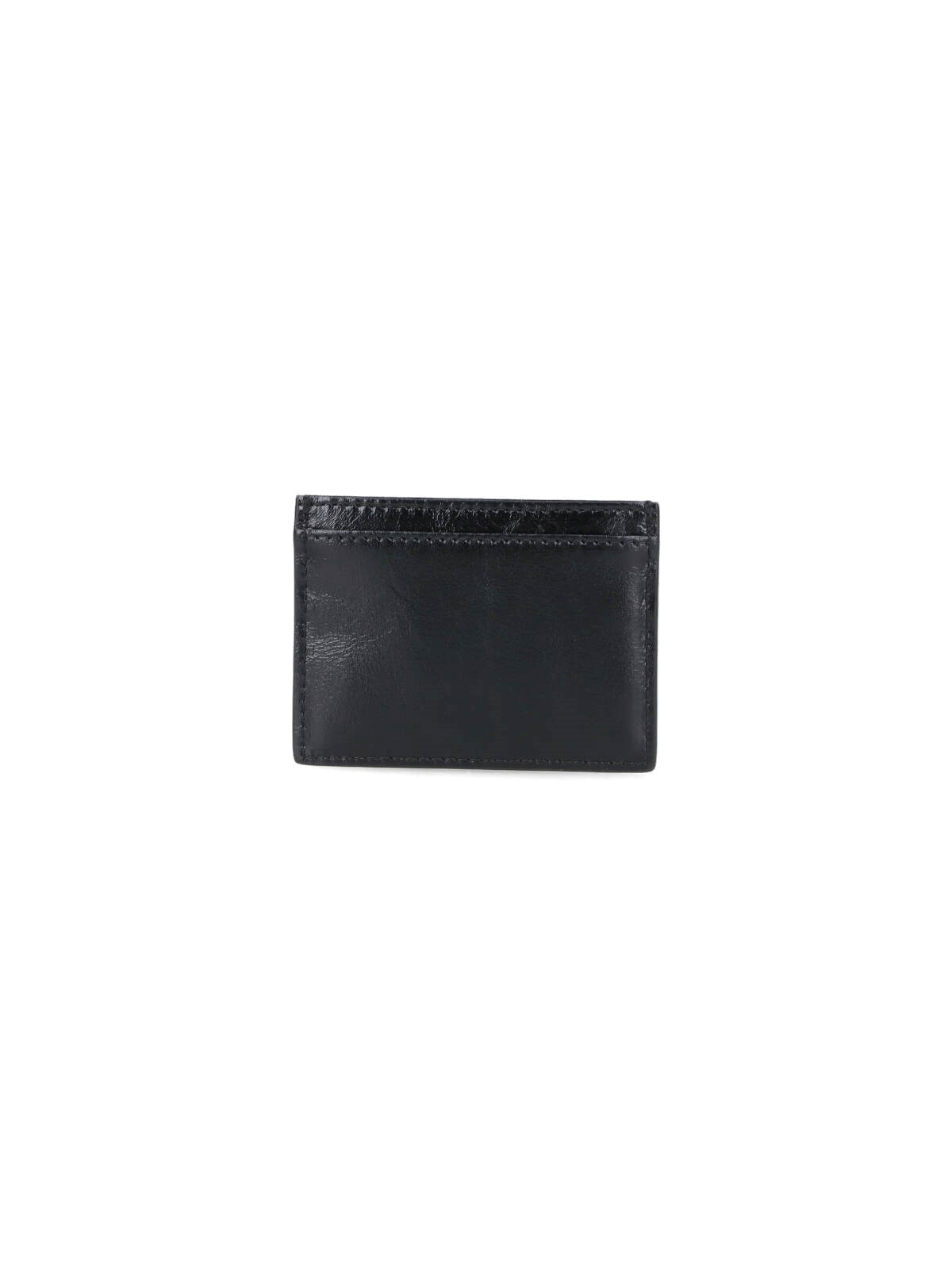 Vivienne Westwood Orb card holder in black calf leather with silver metal logo on the front, top compartment, and six card slots.