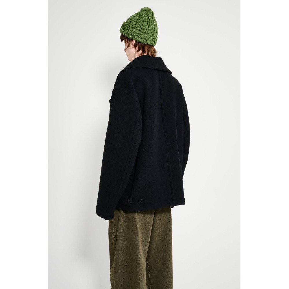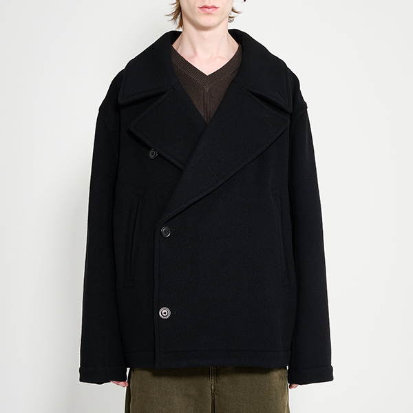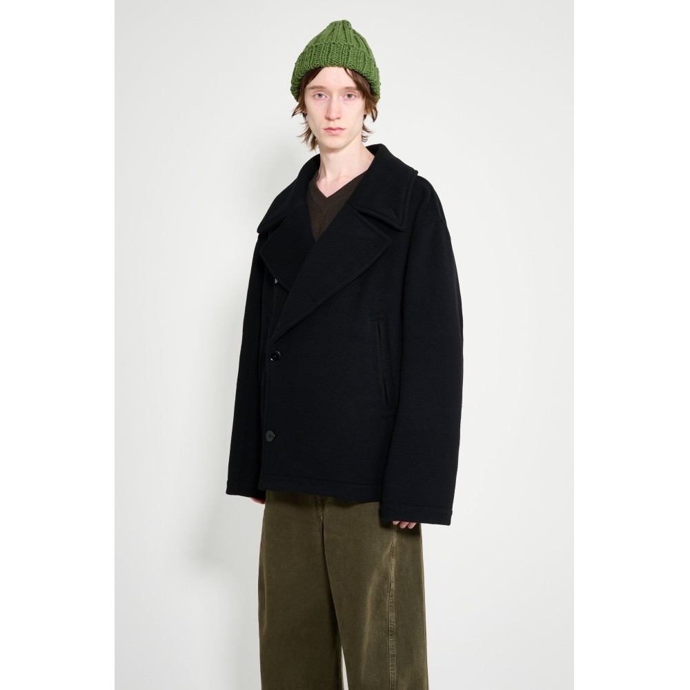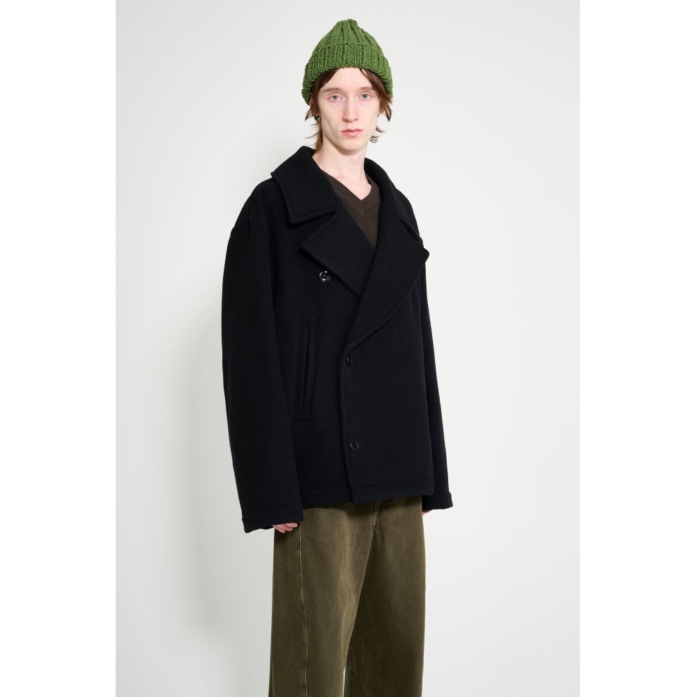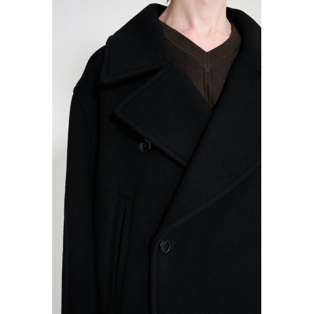 Black coat. Made in Lithuania from 100% wool. Lining made from 100% cotton.