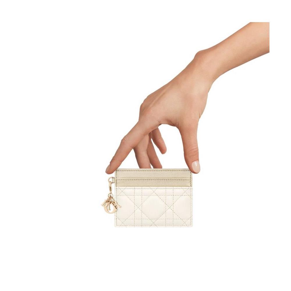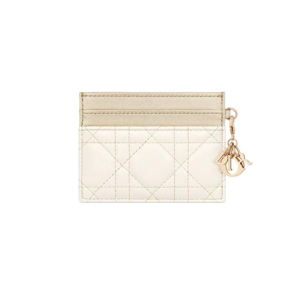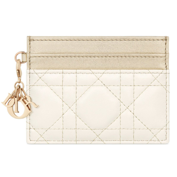 Description : Main composition: lambskin and calfskin, technical fabric lining, detachable D.I.O.R. charms, five card slots.