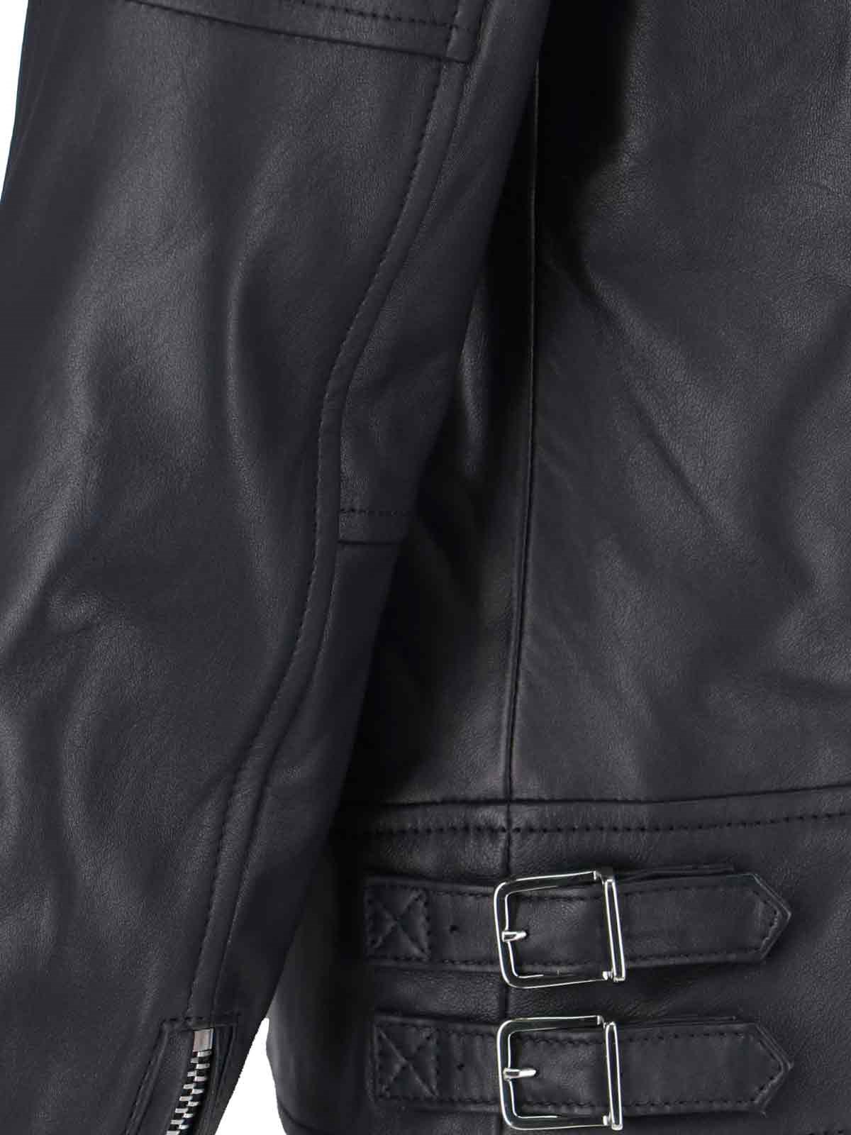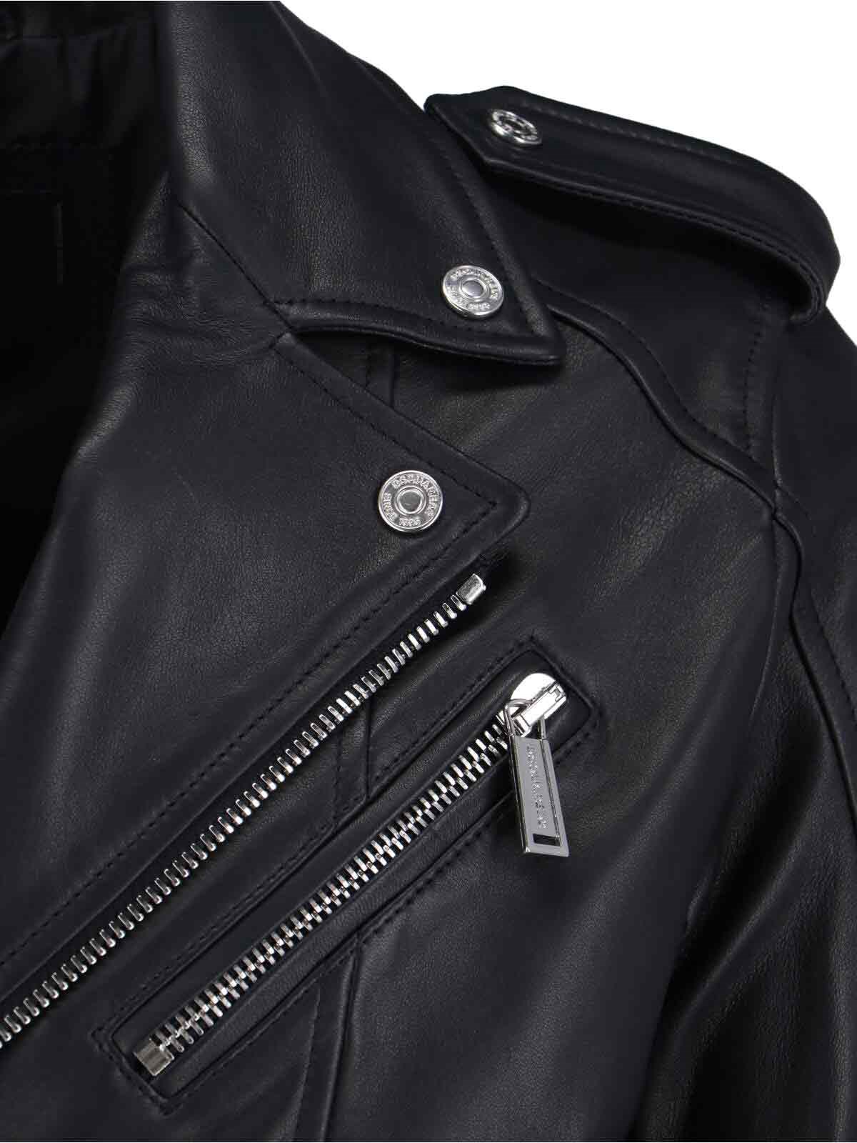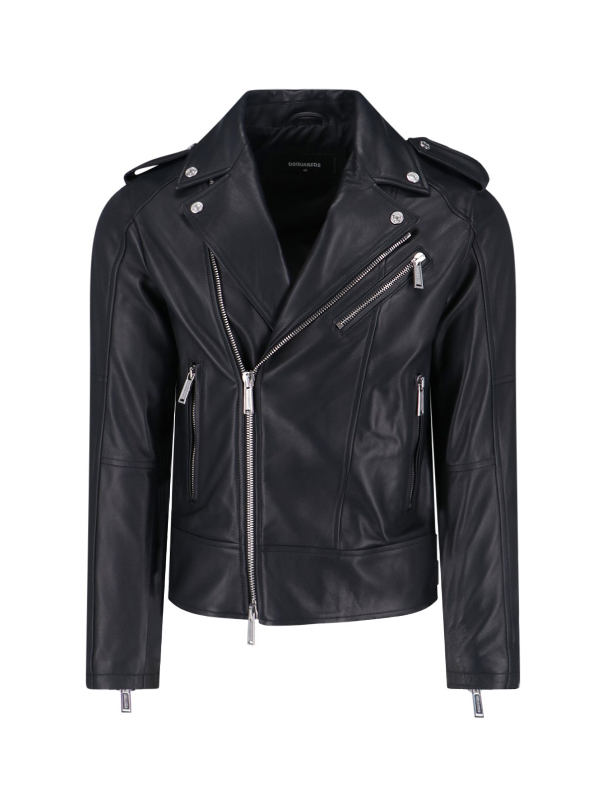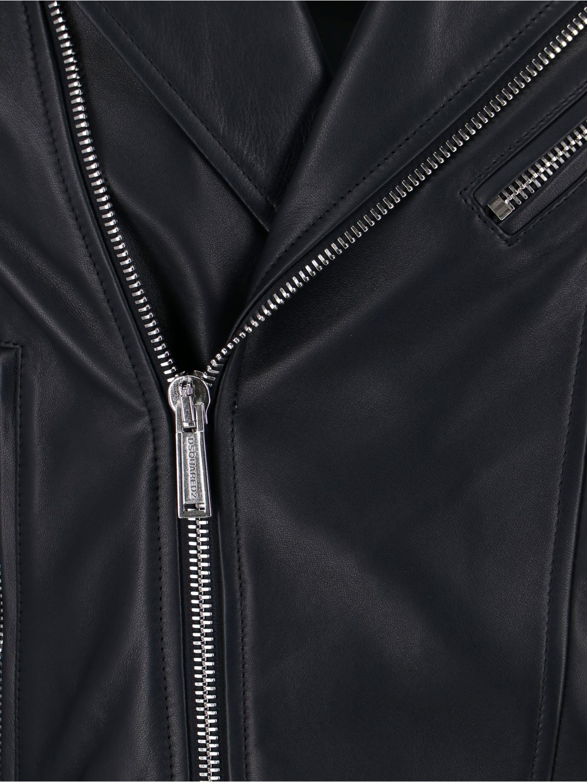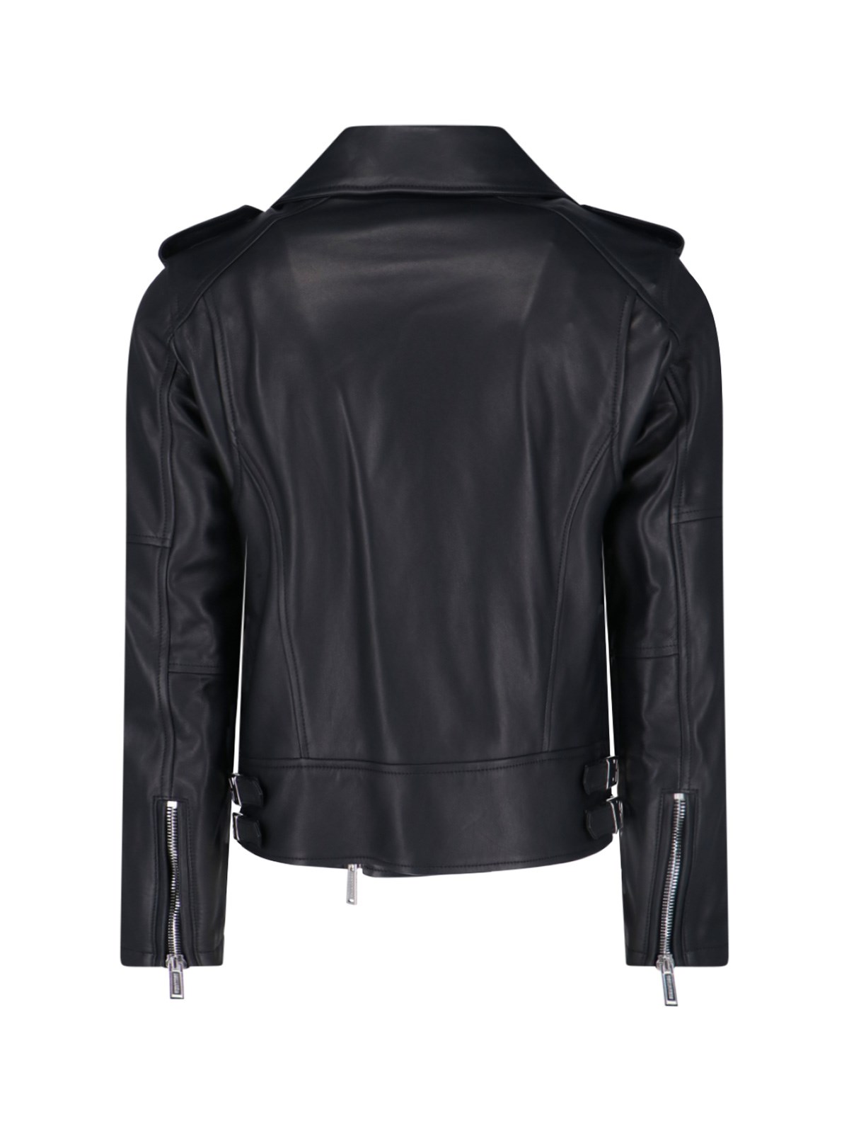 Dsquared2 "Biker" jacket in black leather-effect fabric with button lapels, zip closure, shoulder buttons, two side zip pockets, zip closure on the cuffs, straight hem.