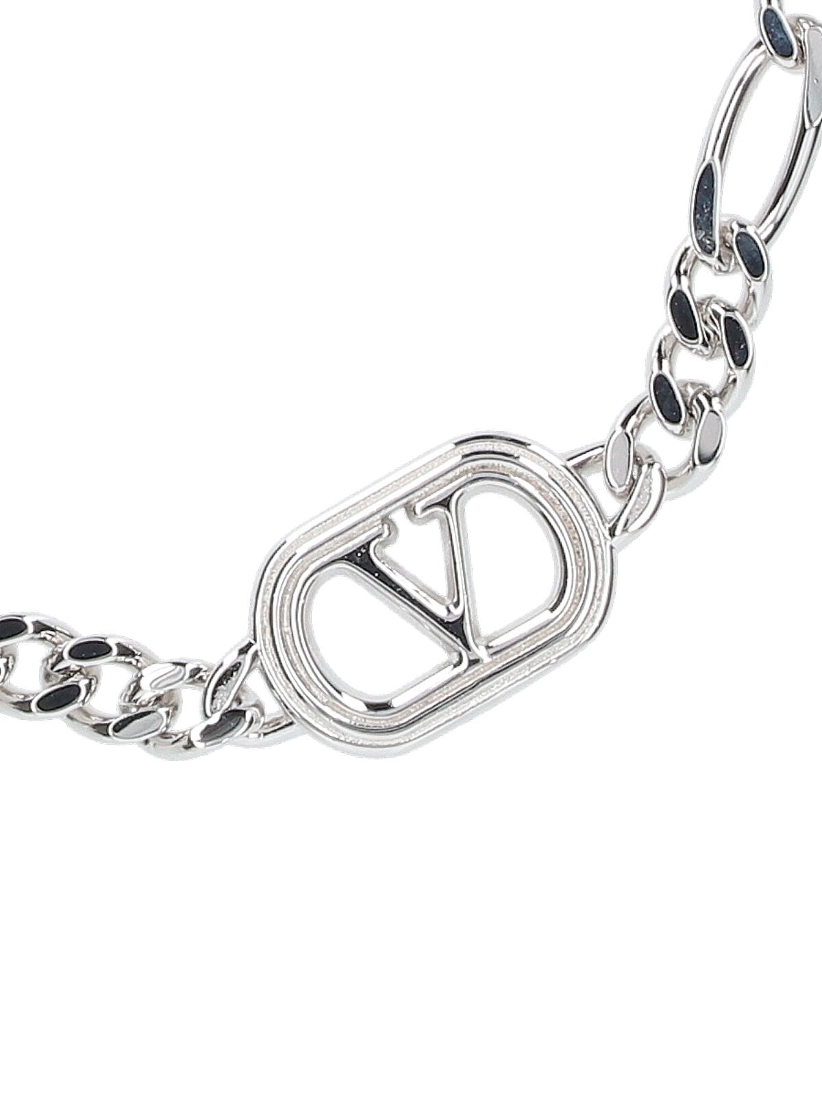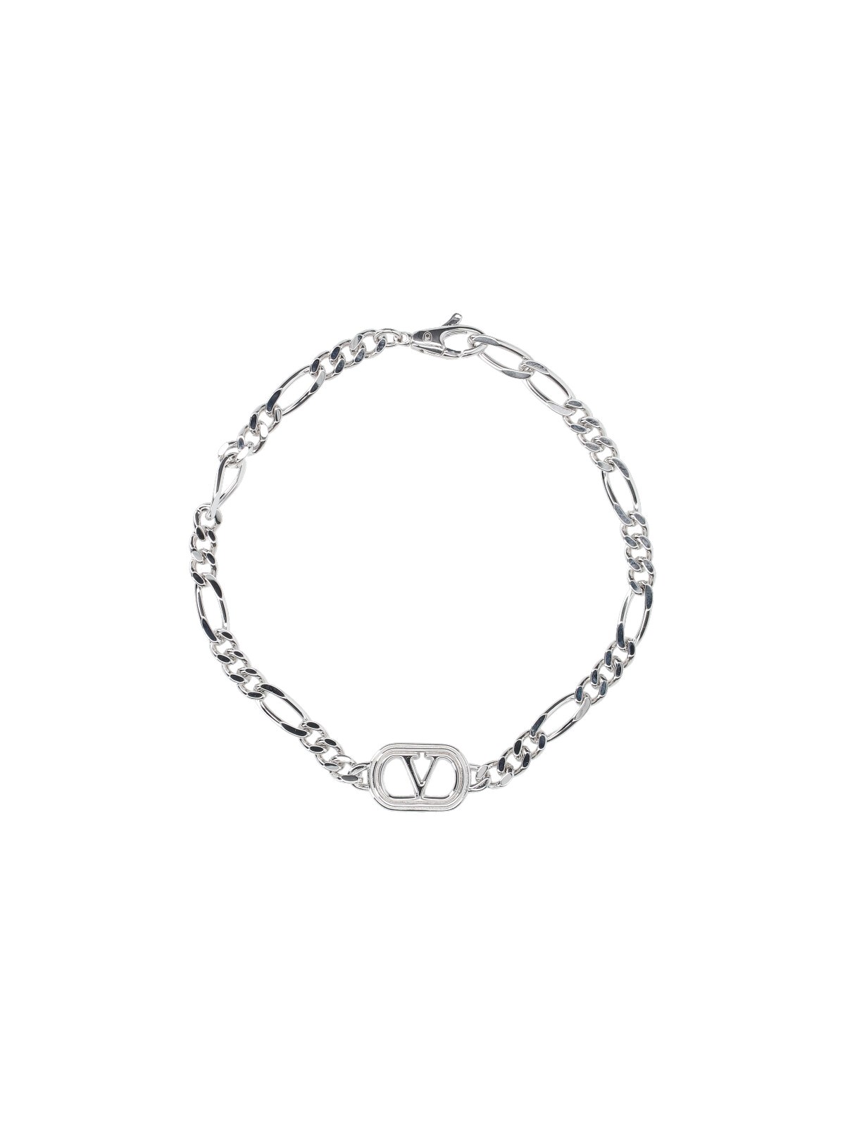 Valentino Garavani "Ovalette" bracelet in silver brass, "VLogo Signature" logo detail, carabiner closure.