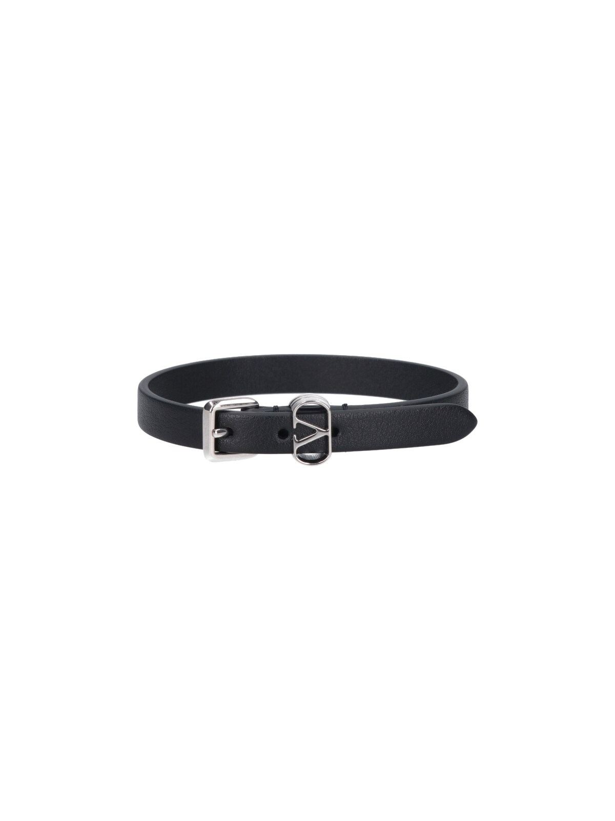 Valentino Garavani Ovalette bracelet in black calf leather with Vlogo signature logo detail on the front, adjustable strap.