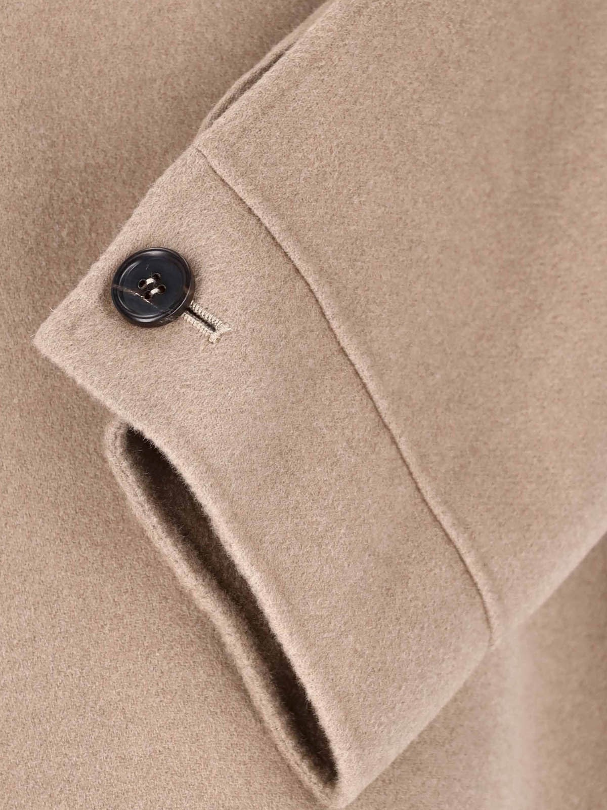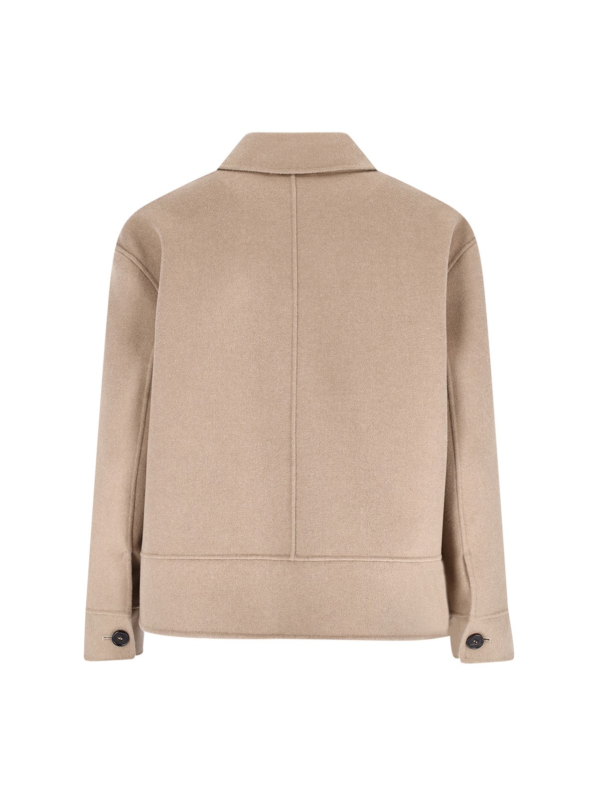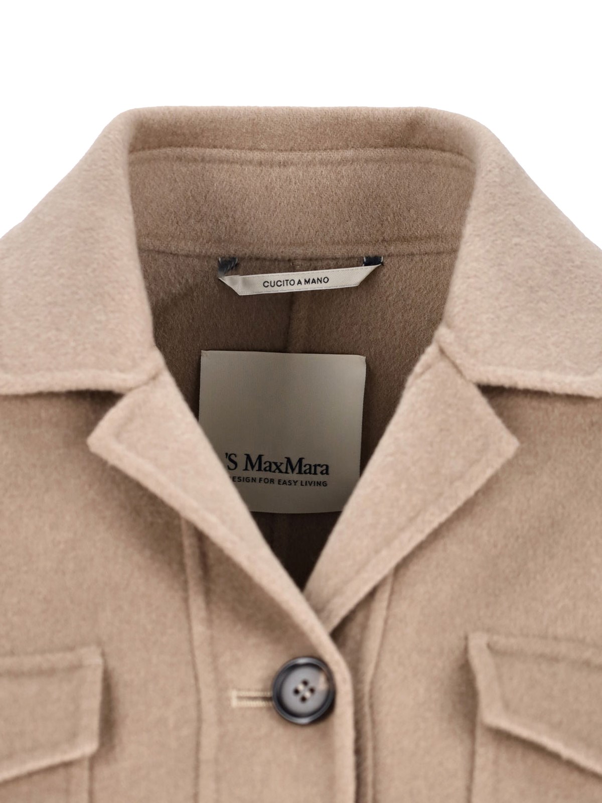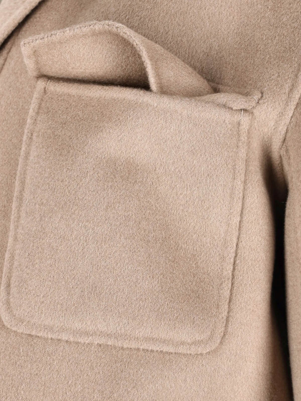 "S Max Mara"s Fiero" light brown virgin wool jacket with collar, button closure, long sleeves, two front flap pockets, two side welt pockets, straight hem.