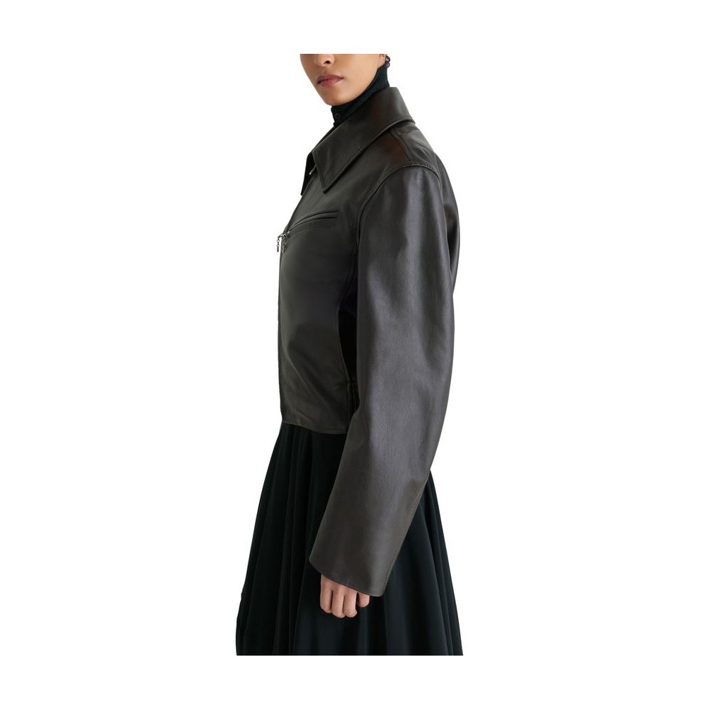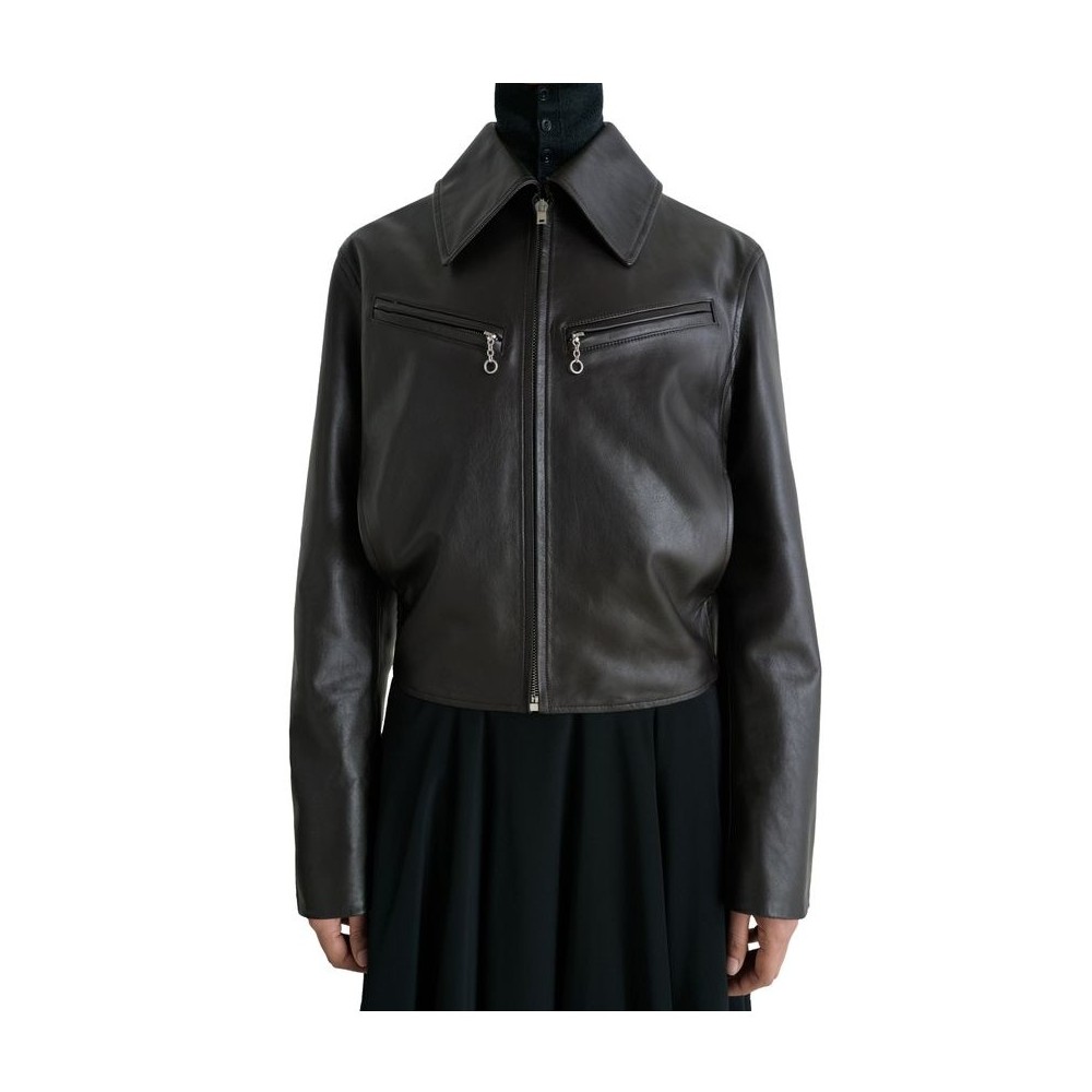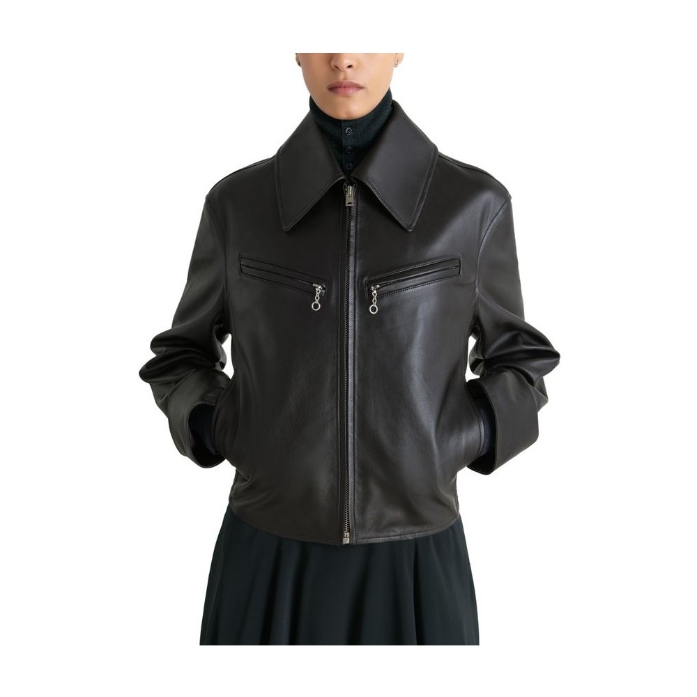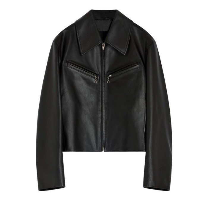 Description : Smooth leather, regular fit, collar, zipped breast pocket, side pockets, long-sleeved, notched collar.