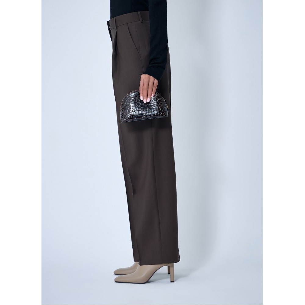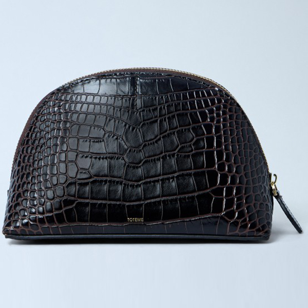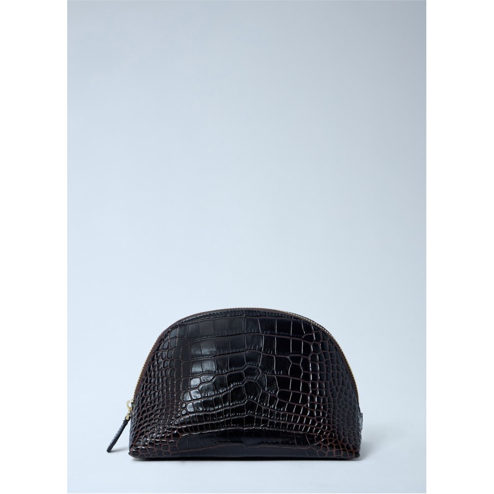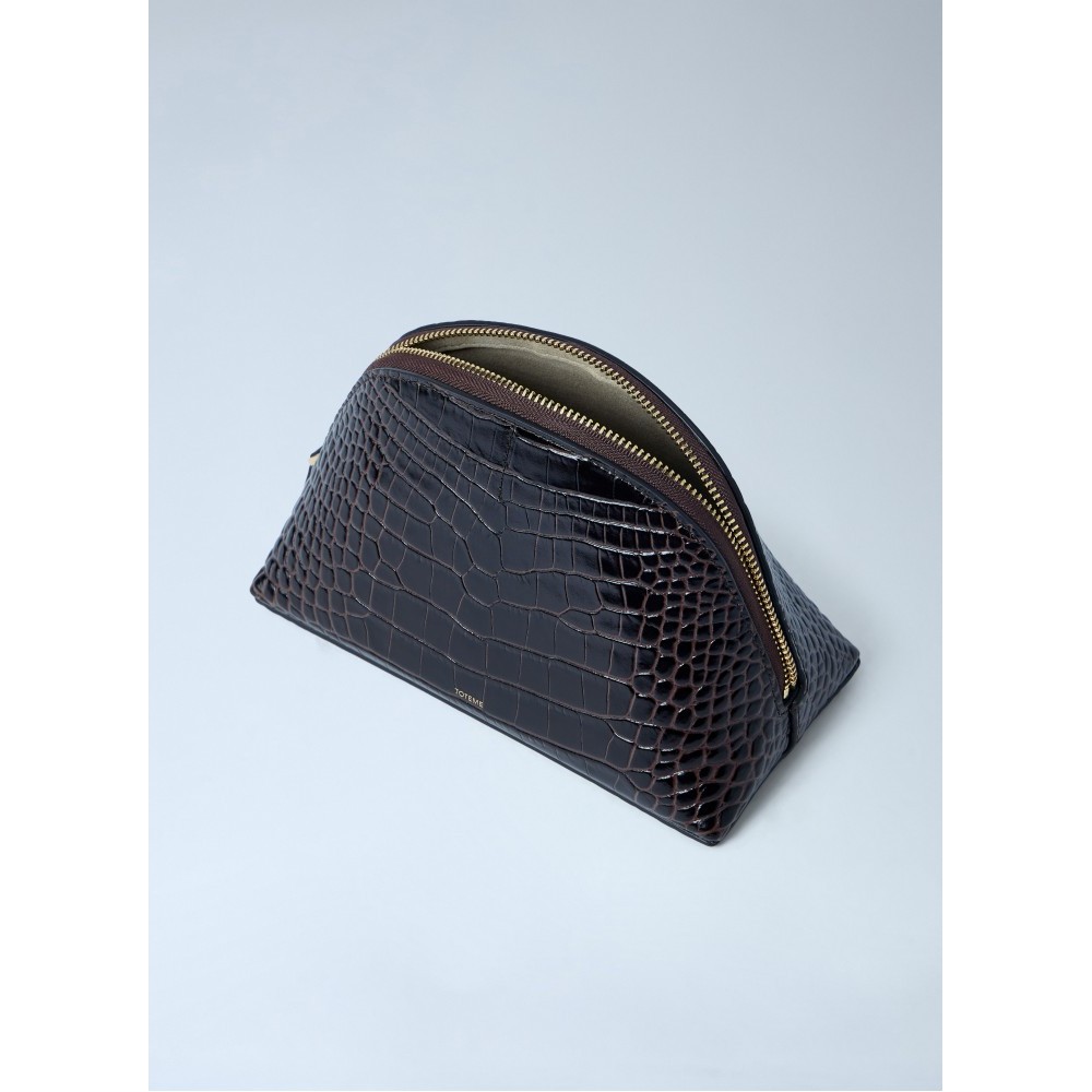 Dome-shaped pouch in croc-embossed leather with zip fastening.