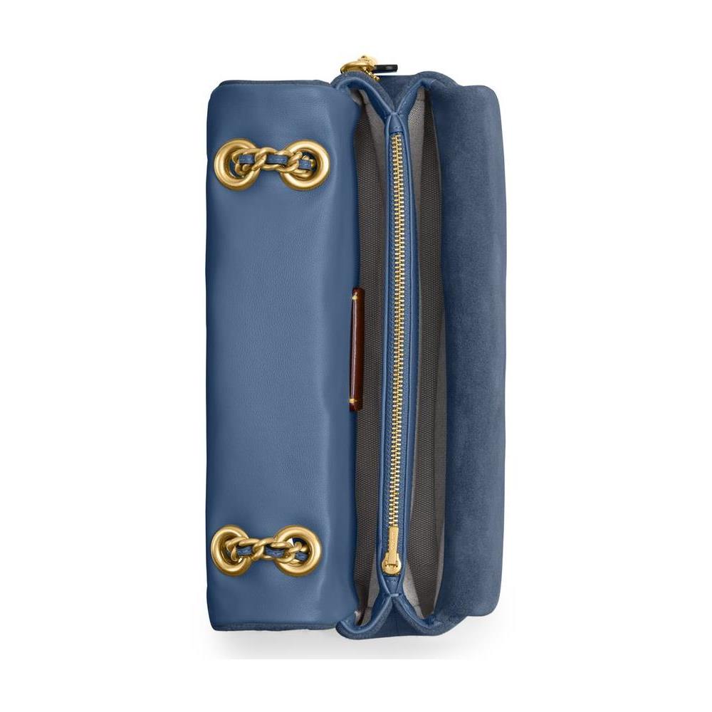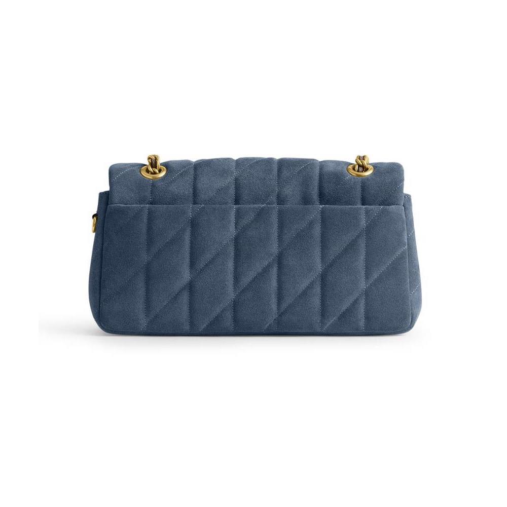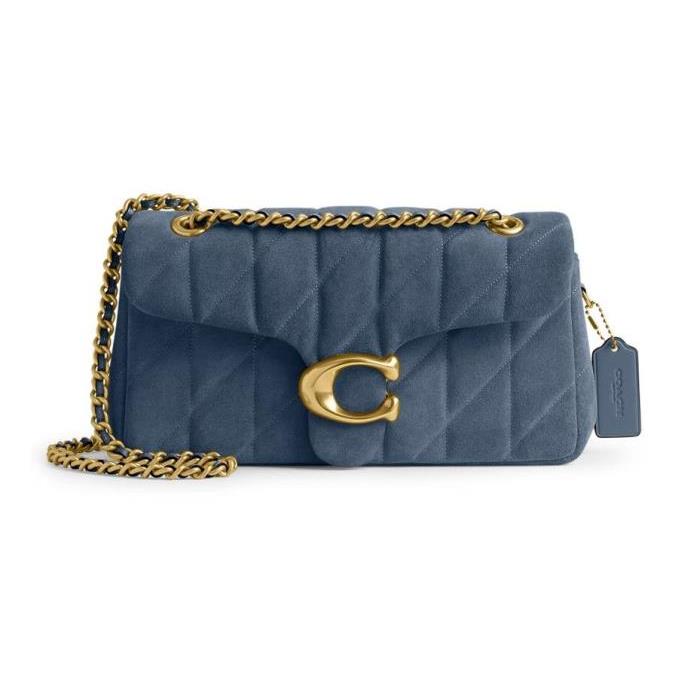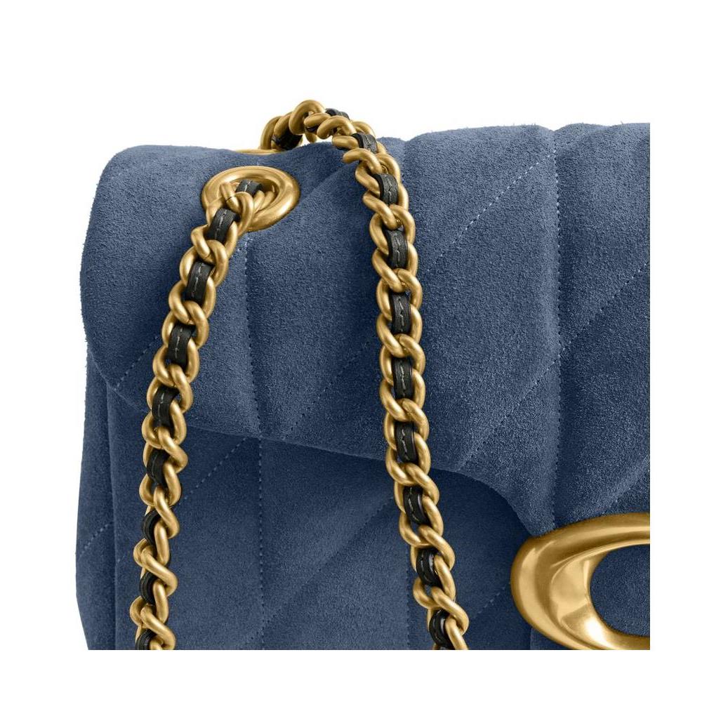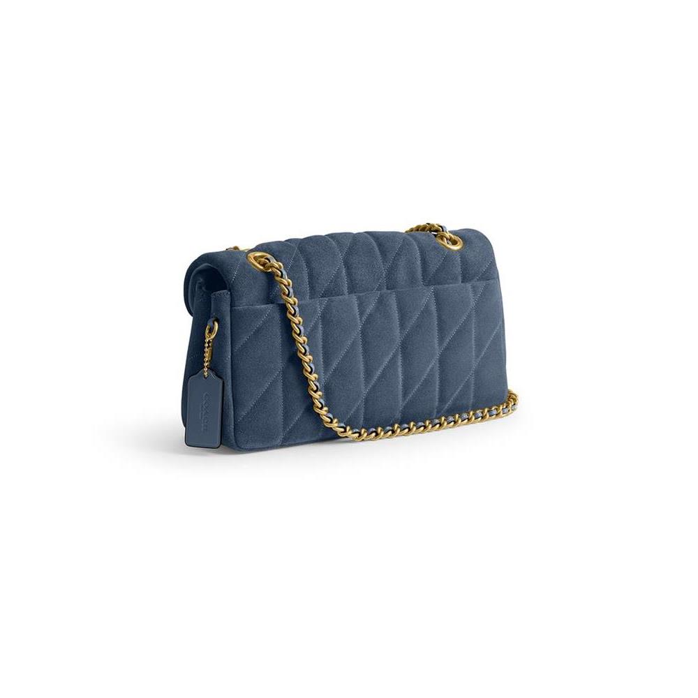Description : Shoulder bag, crossbody bag, magnetic 'c' buckle, decorative label with embossed 'Coach' logo, chain strap, front logo, metallic logo on the front, chevron pattern, suede, flap closure.