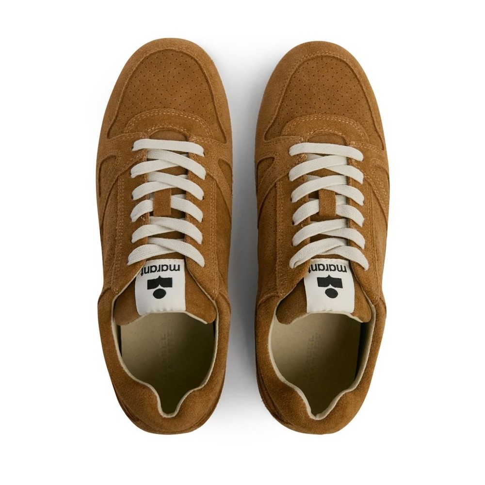 Description : Sneakers, suede, flat heel, round toe, laces and strap, leather sneakers, visible stitching.