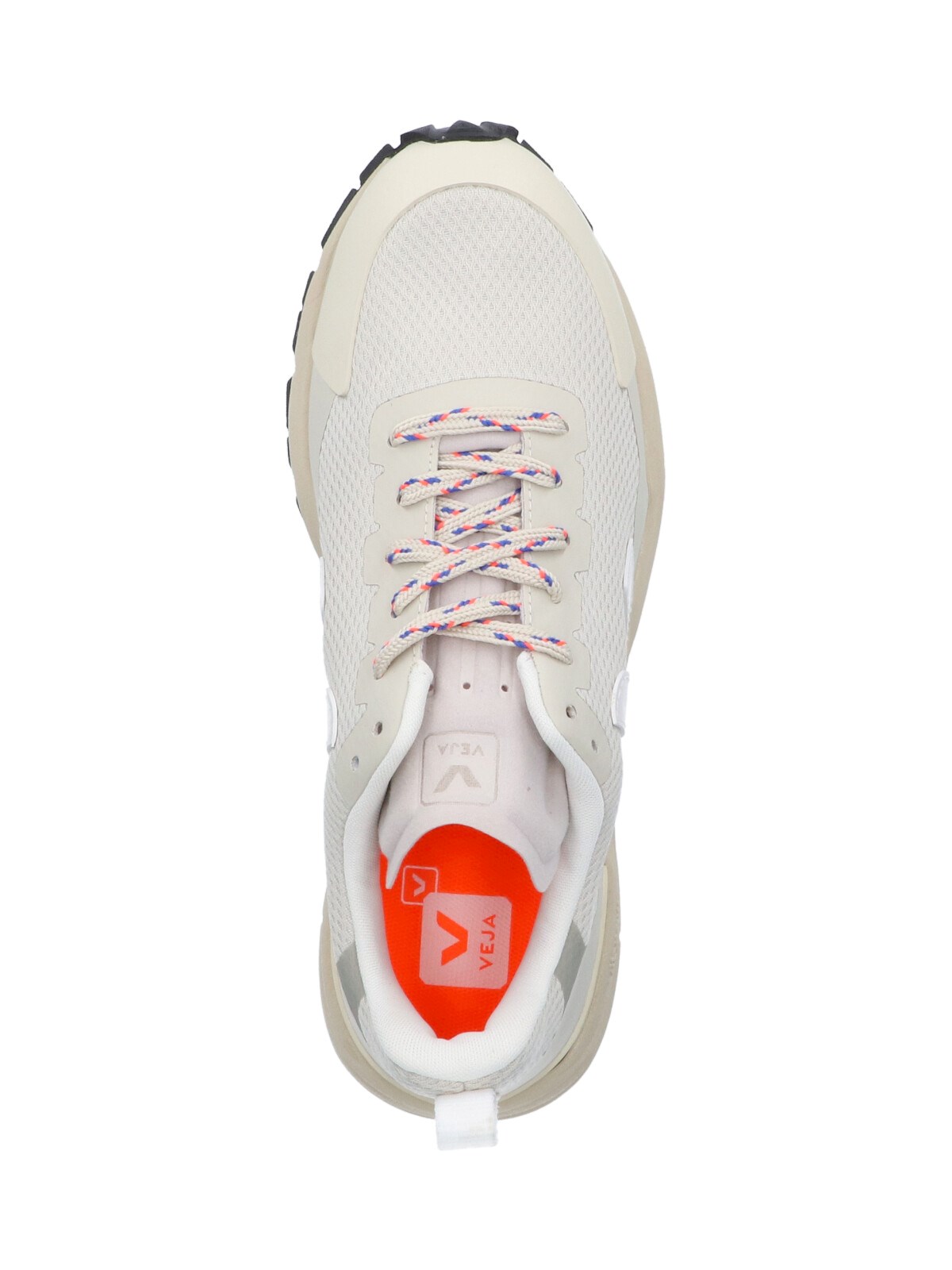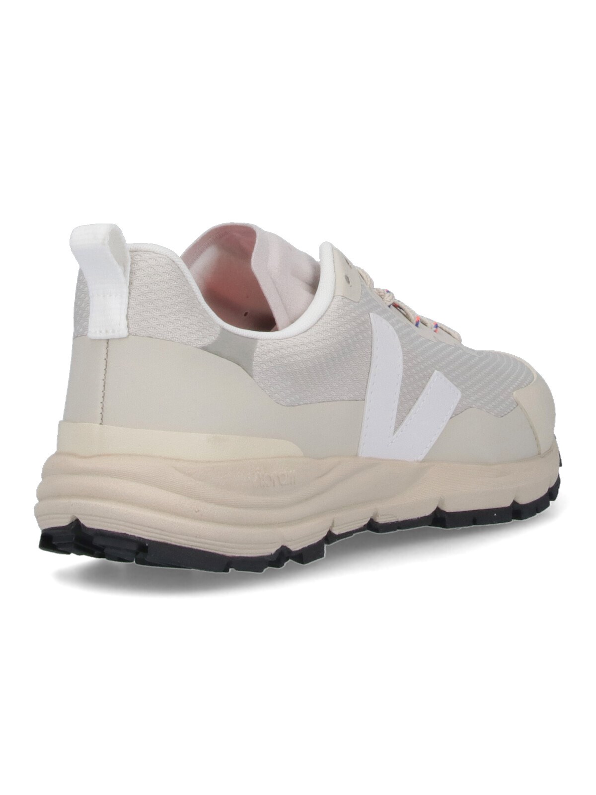 Veja "Dekkan Alveomesh" sneakers in beige mesh with round toe, lace-up closure, embossed logo on tongue, white logo patch on the side, tab on the back, textured rubber sole, embossed logo detail on the side.