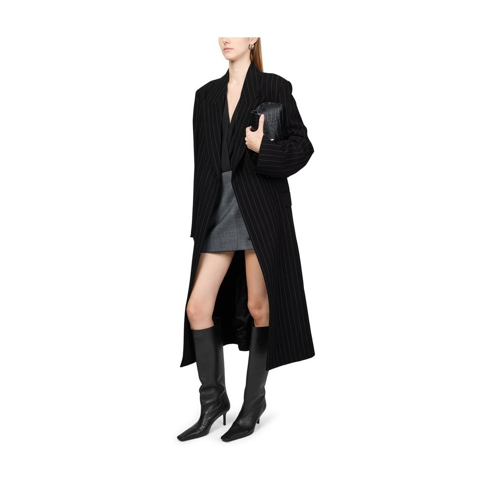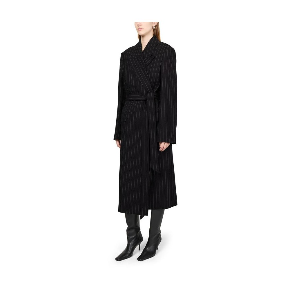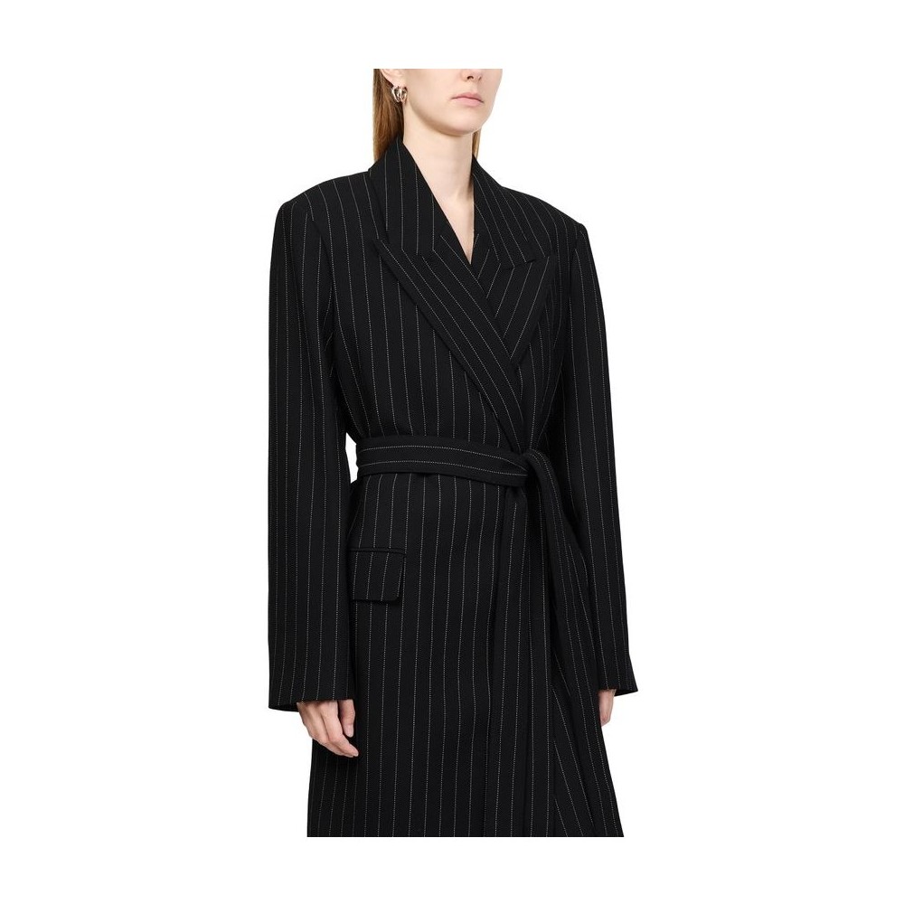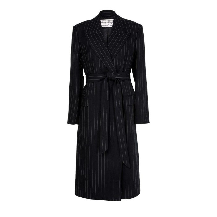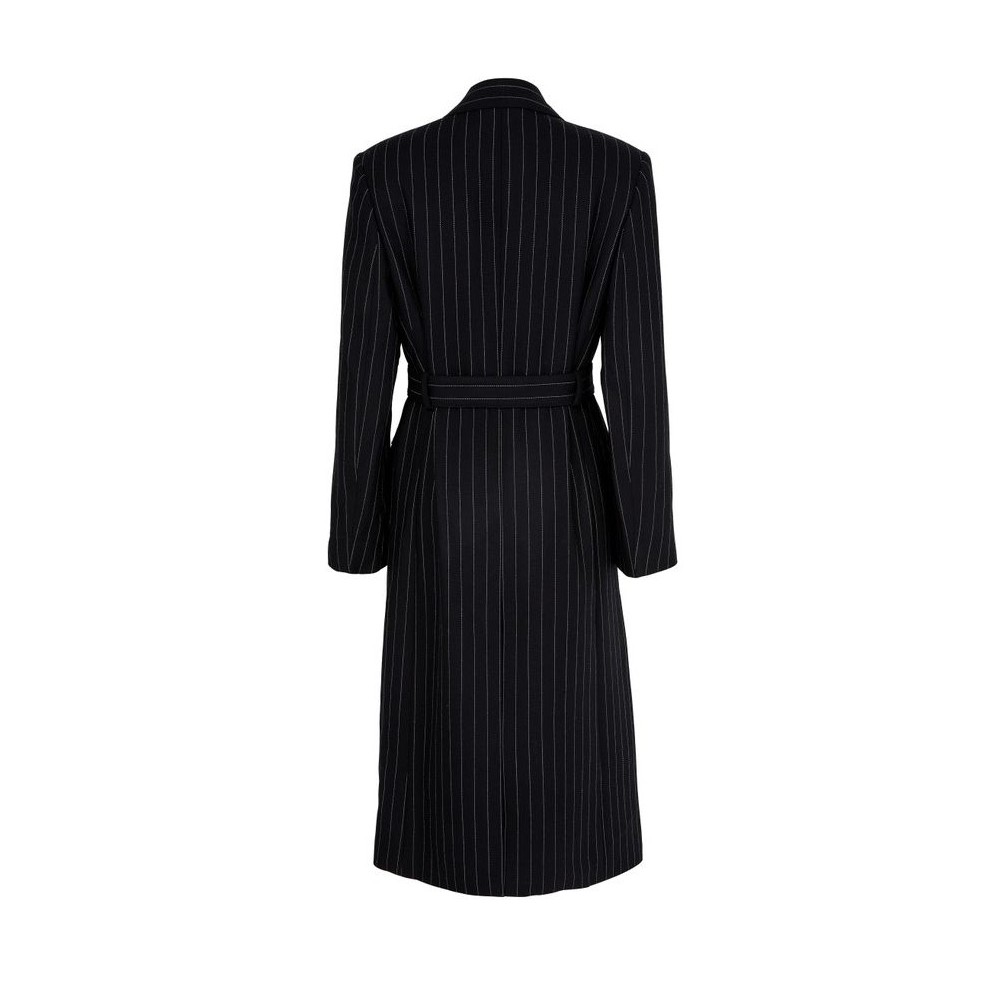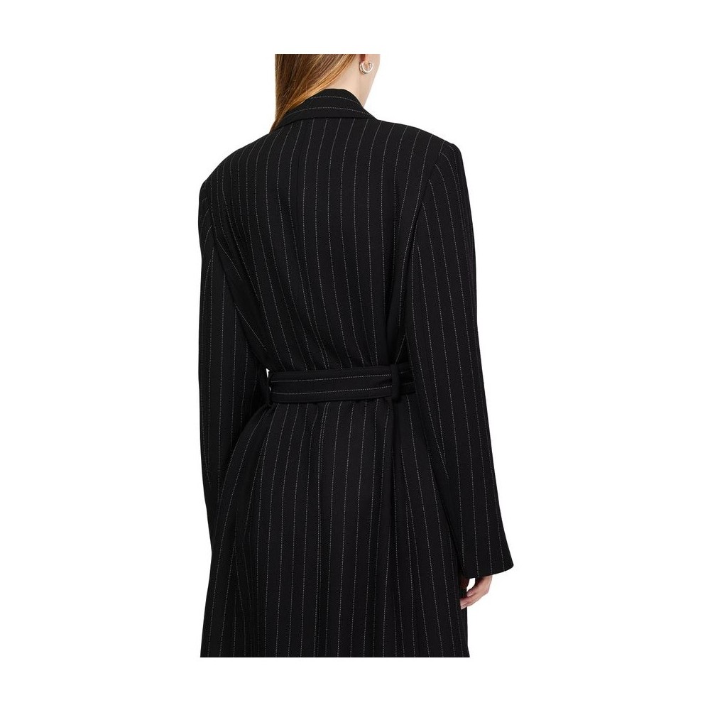 Description : Striped print, long, collar, notched collar, long-sleeved, flap pockets.