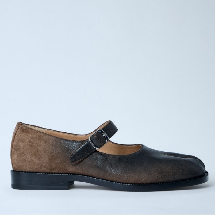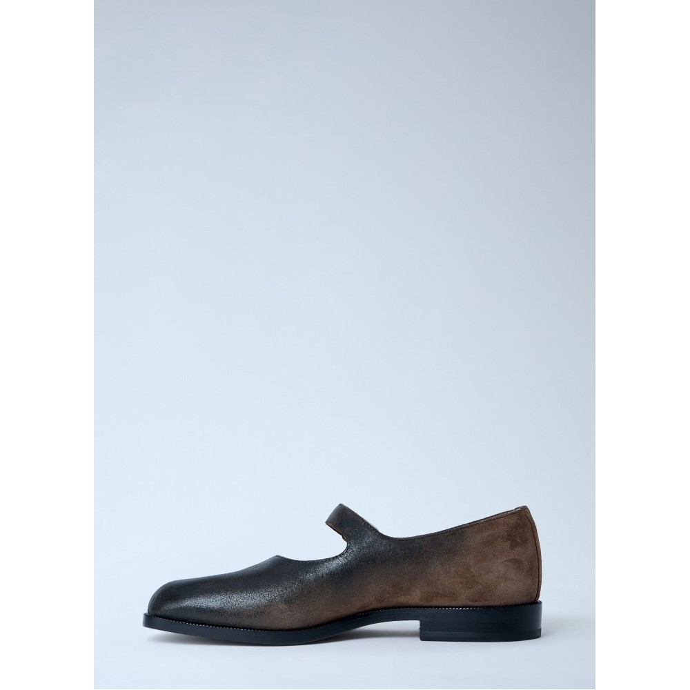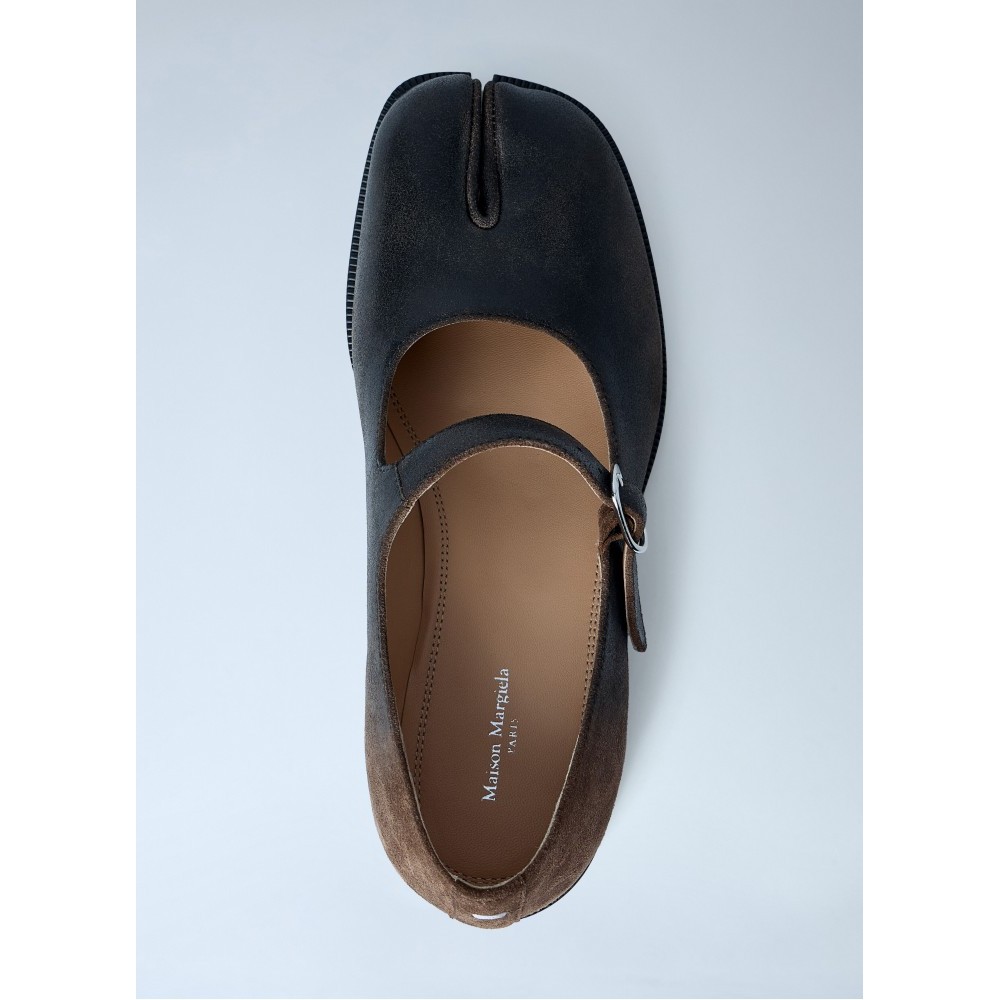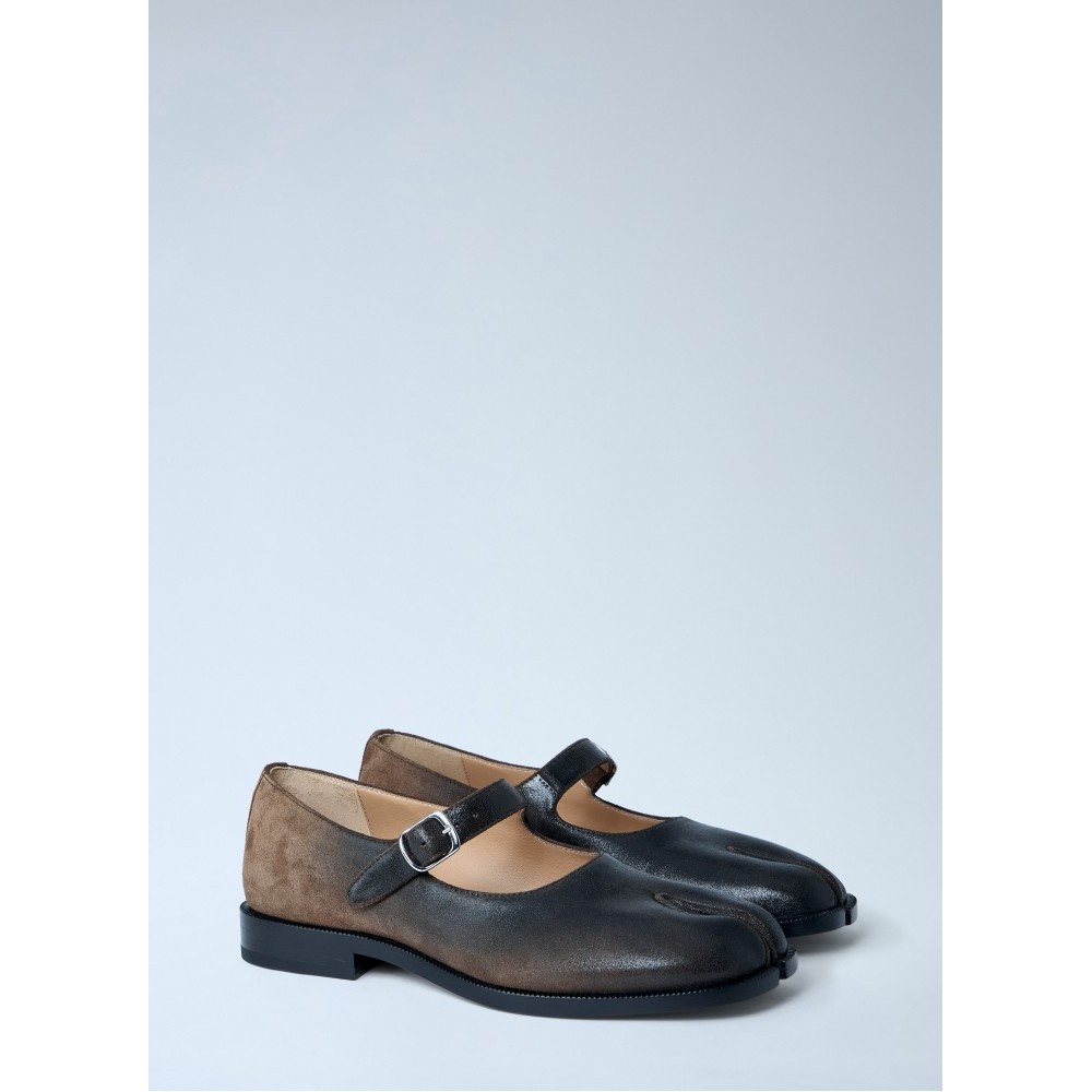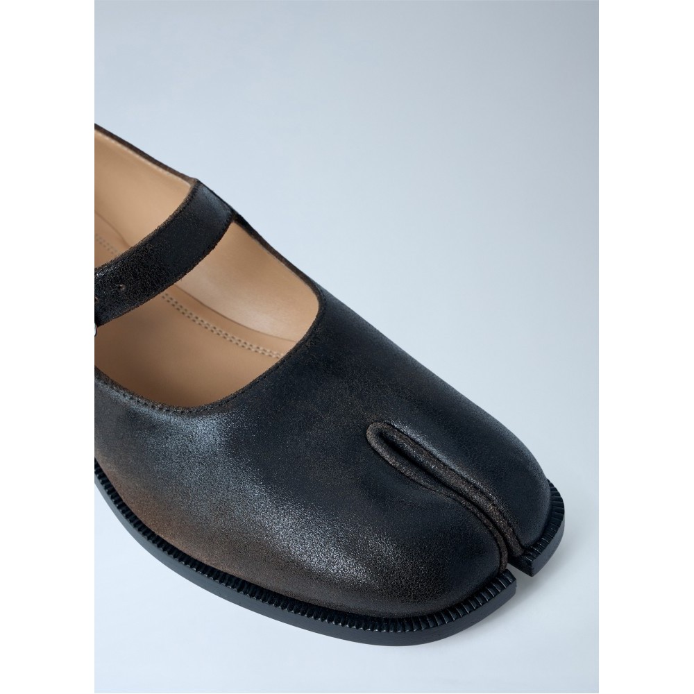 Tabi Mary Jane flats with brushed leather finish.