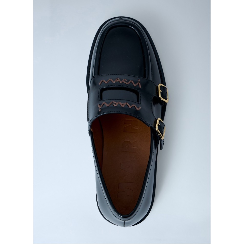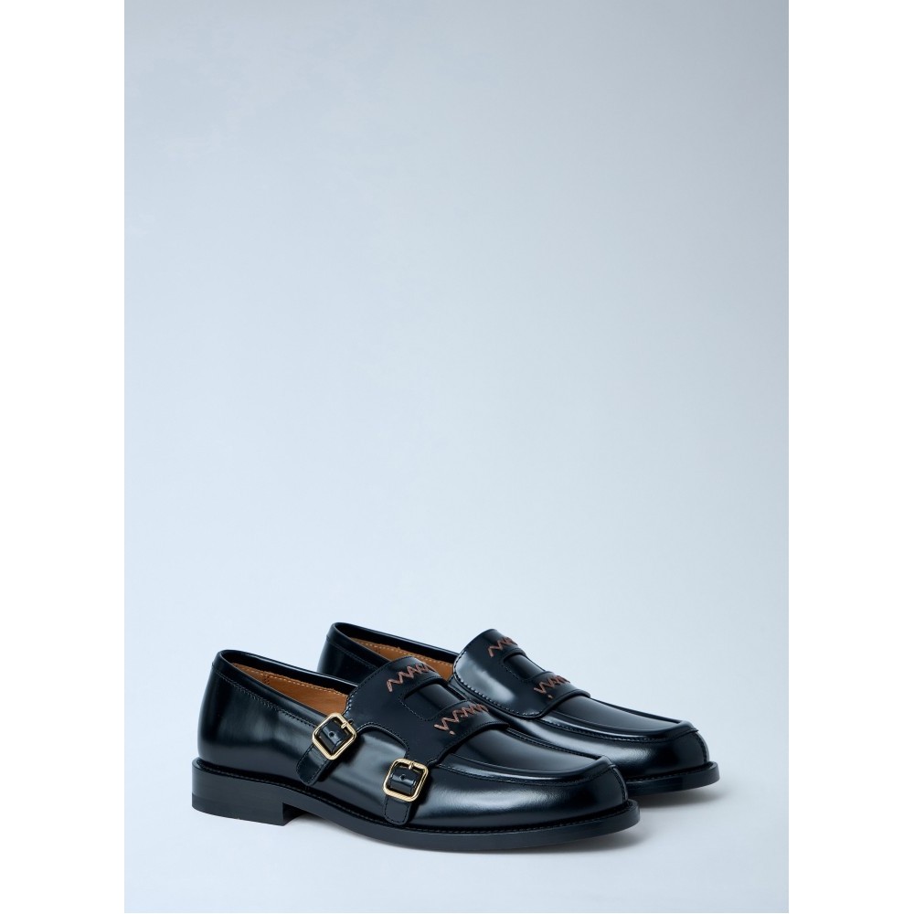 Leather loafers with double monk strap fastening.