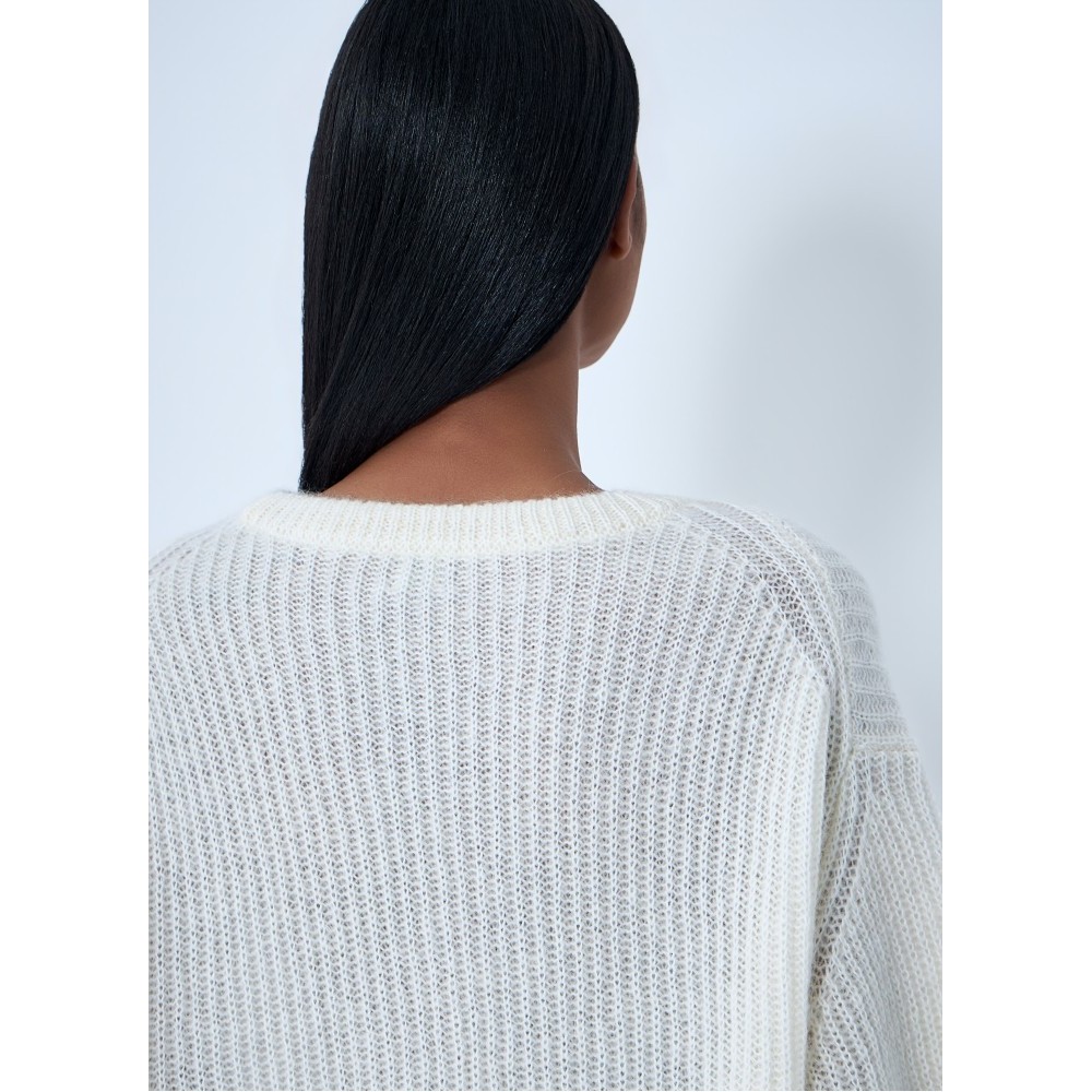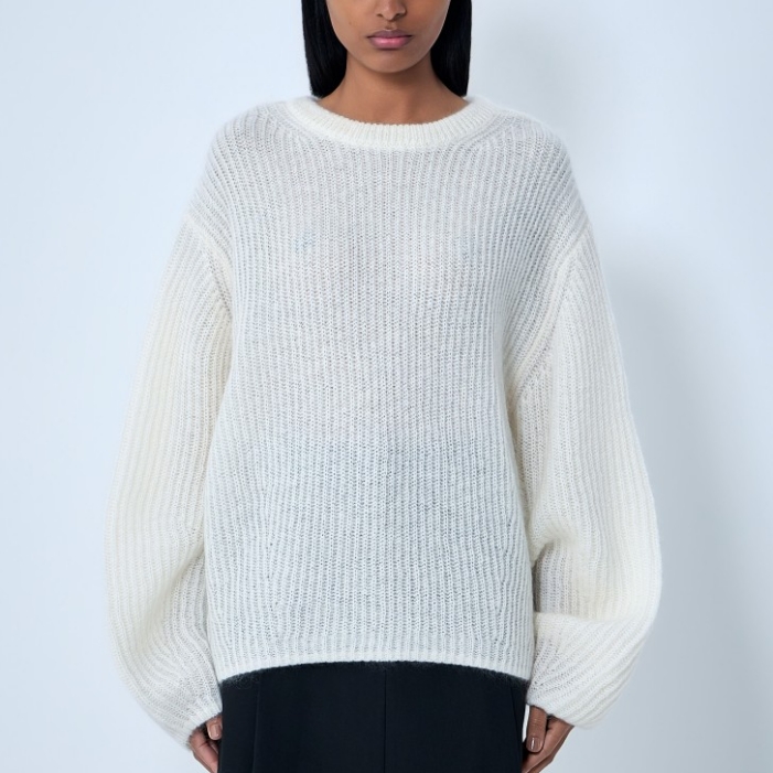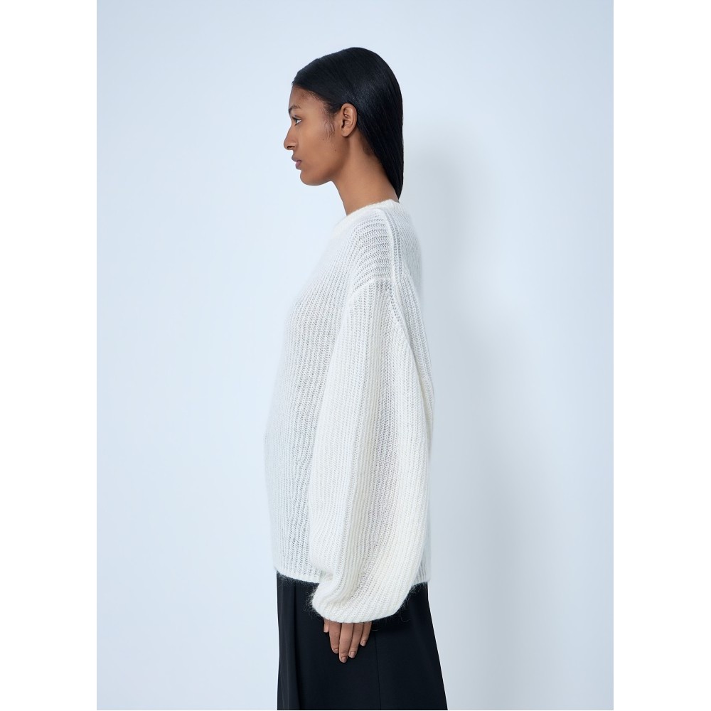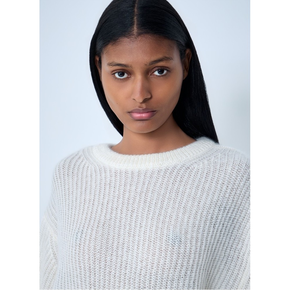 Ribbed knit sweater in wool blend.