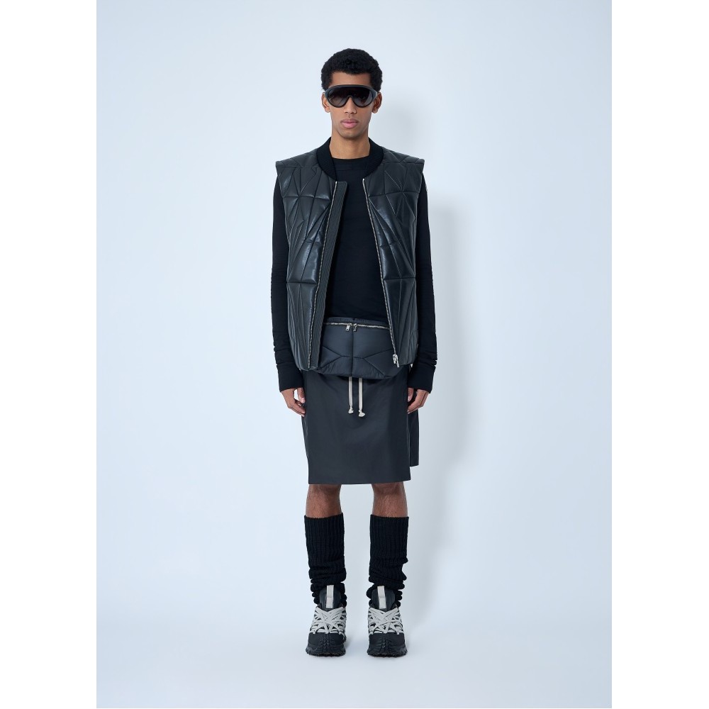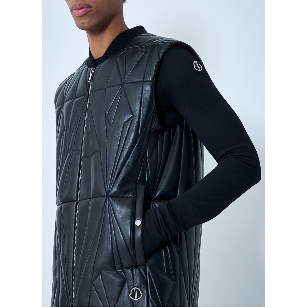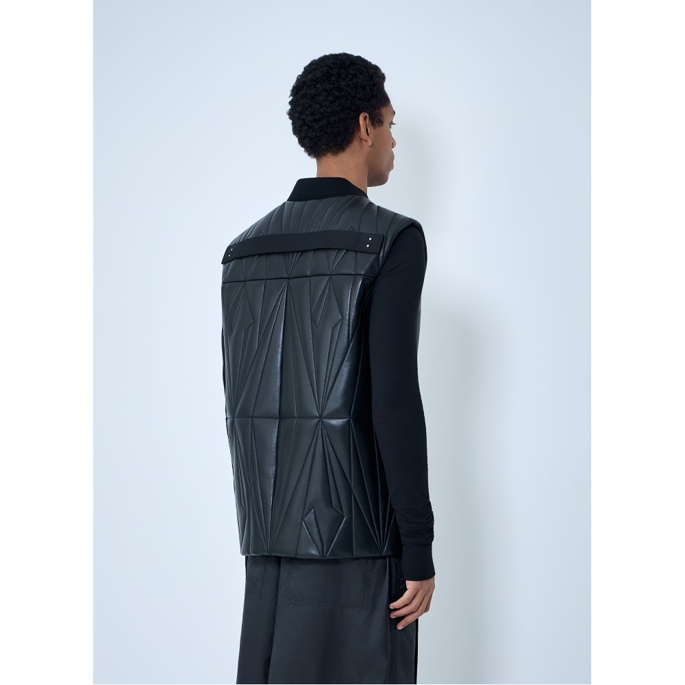 Quilted hooded gilet with full zip fastening.