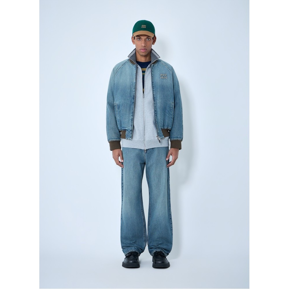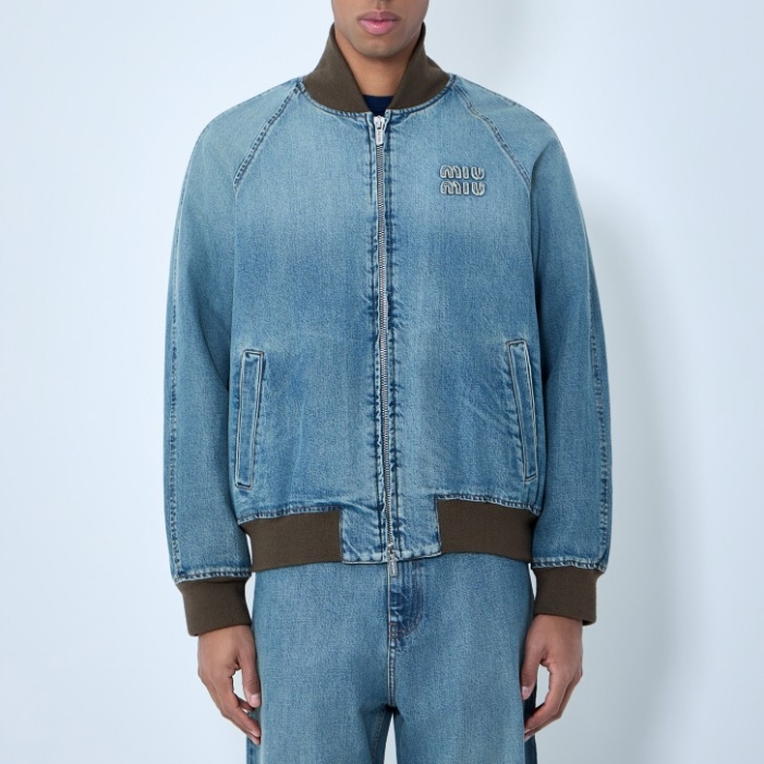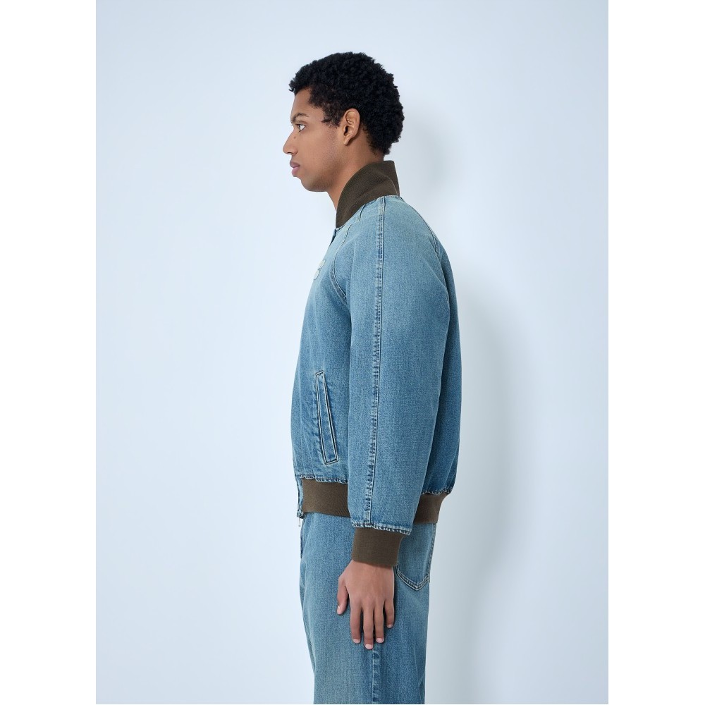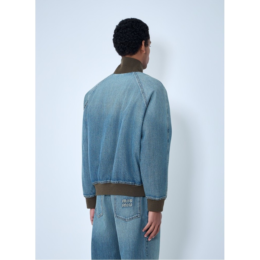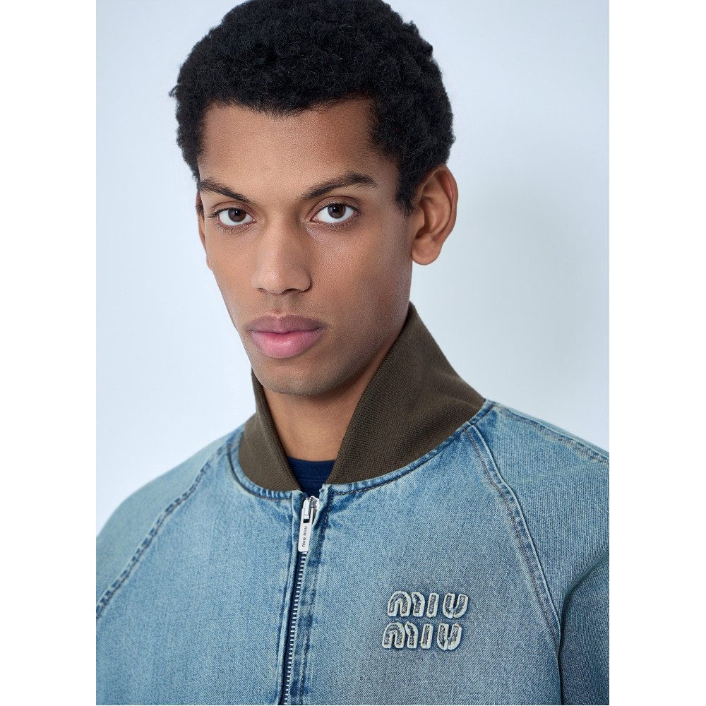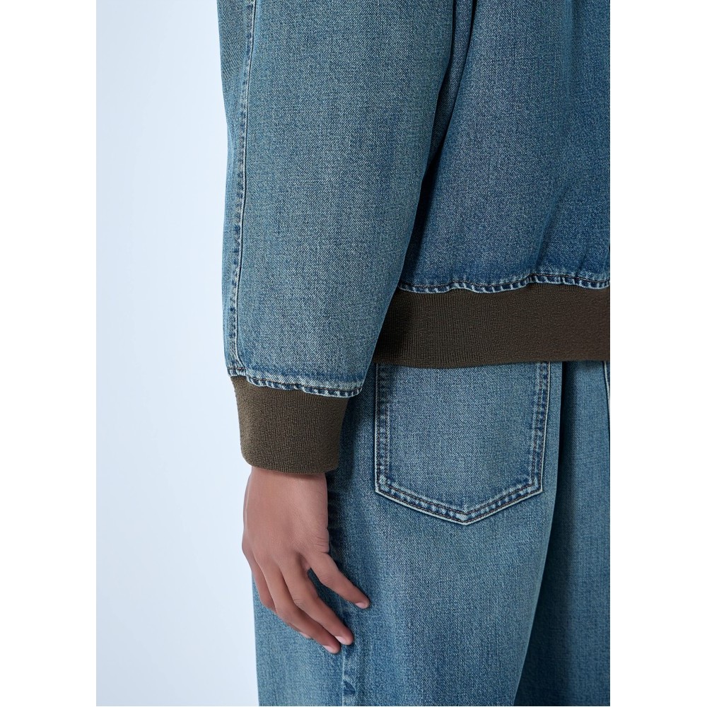 Denim jacket with rib trims.
