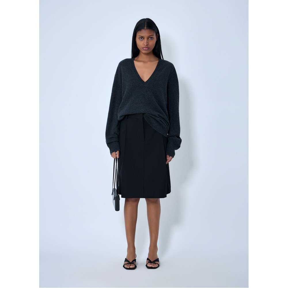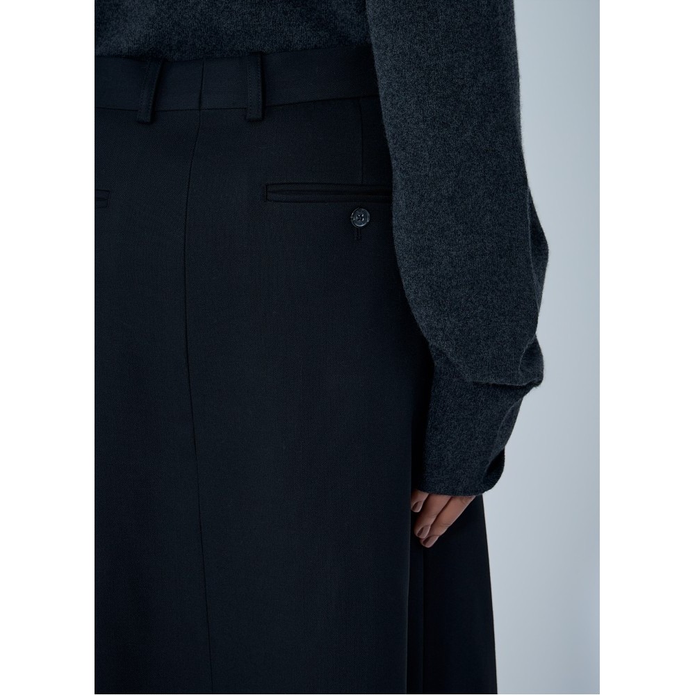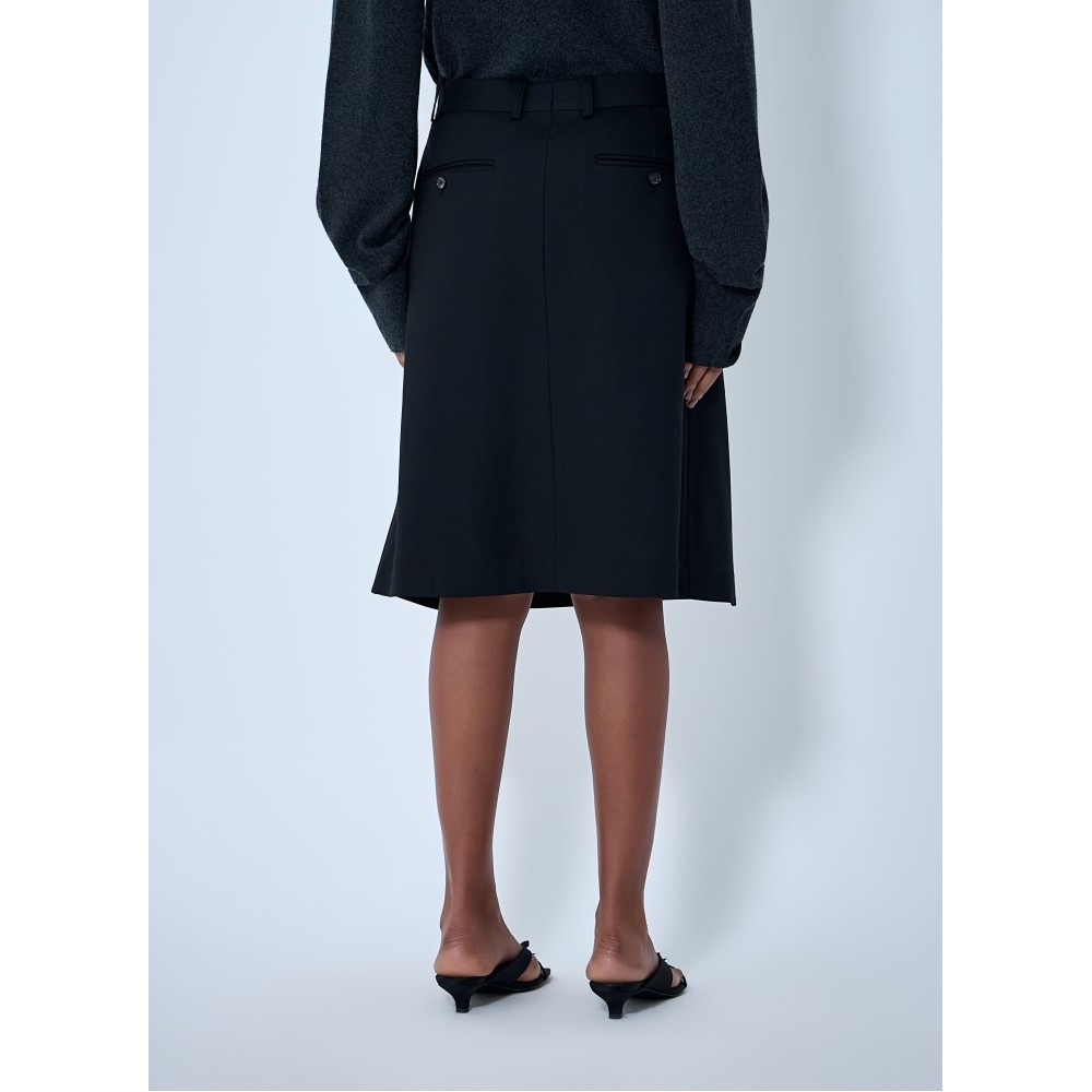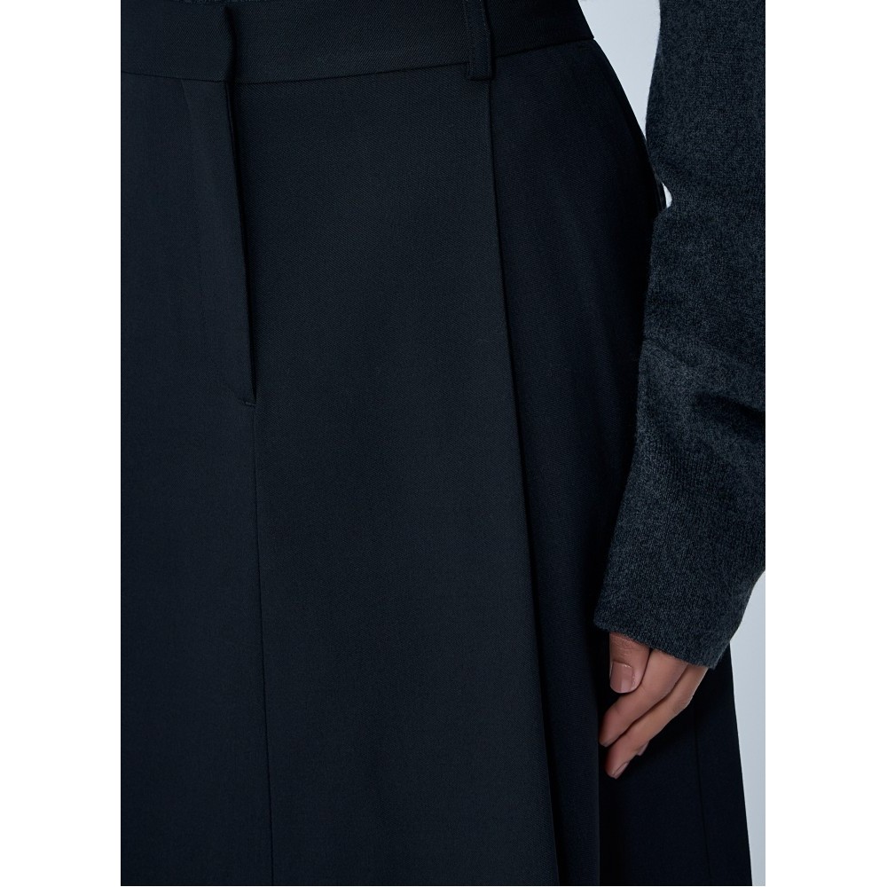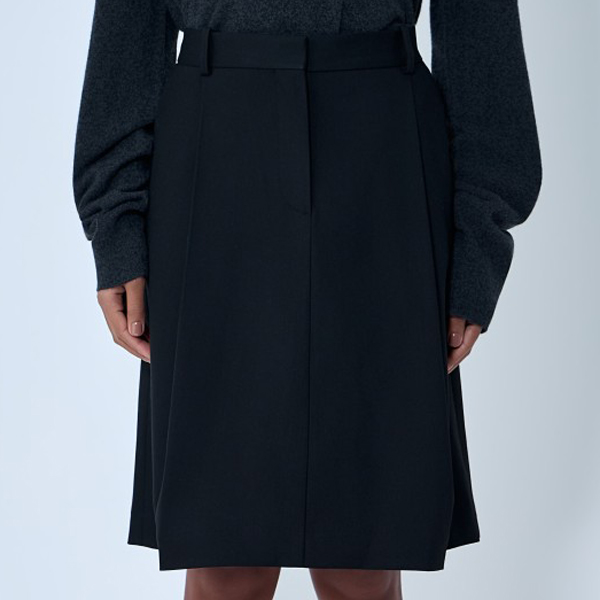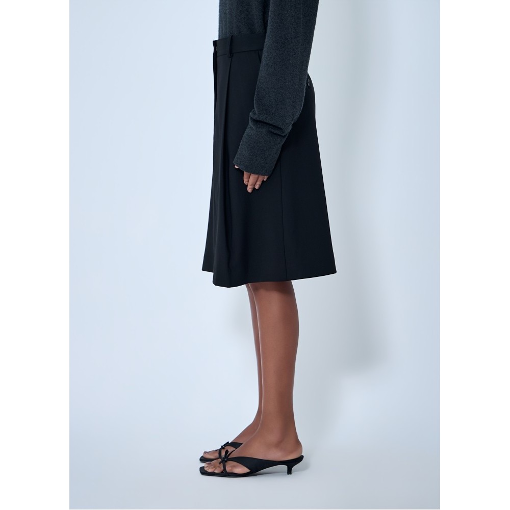 Mid rise A-line skirt with pleated construction.