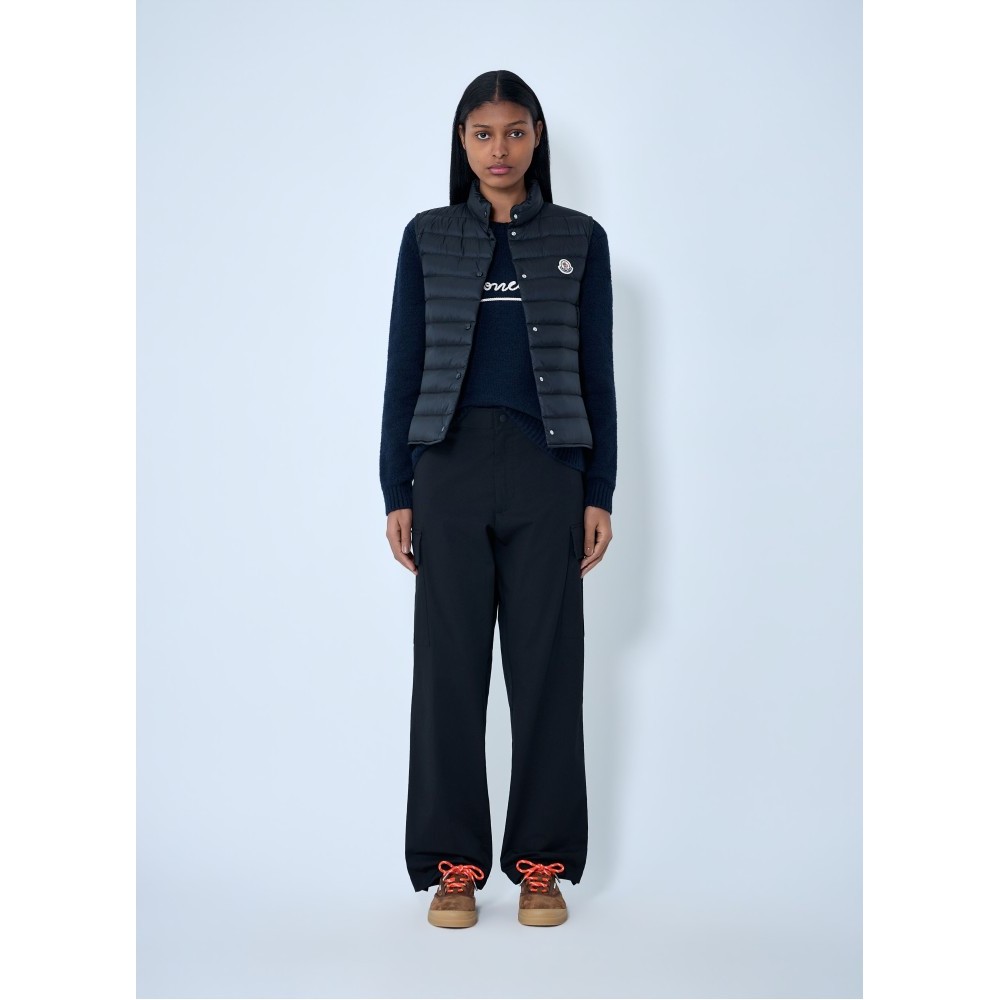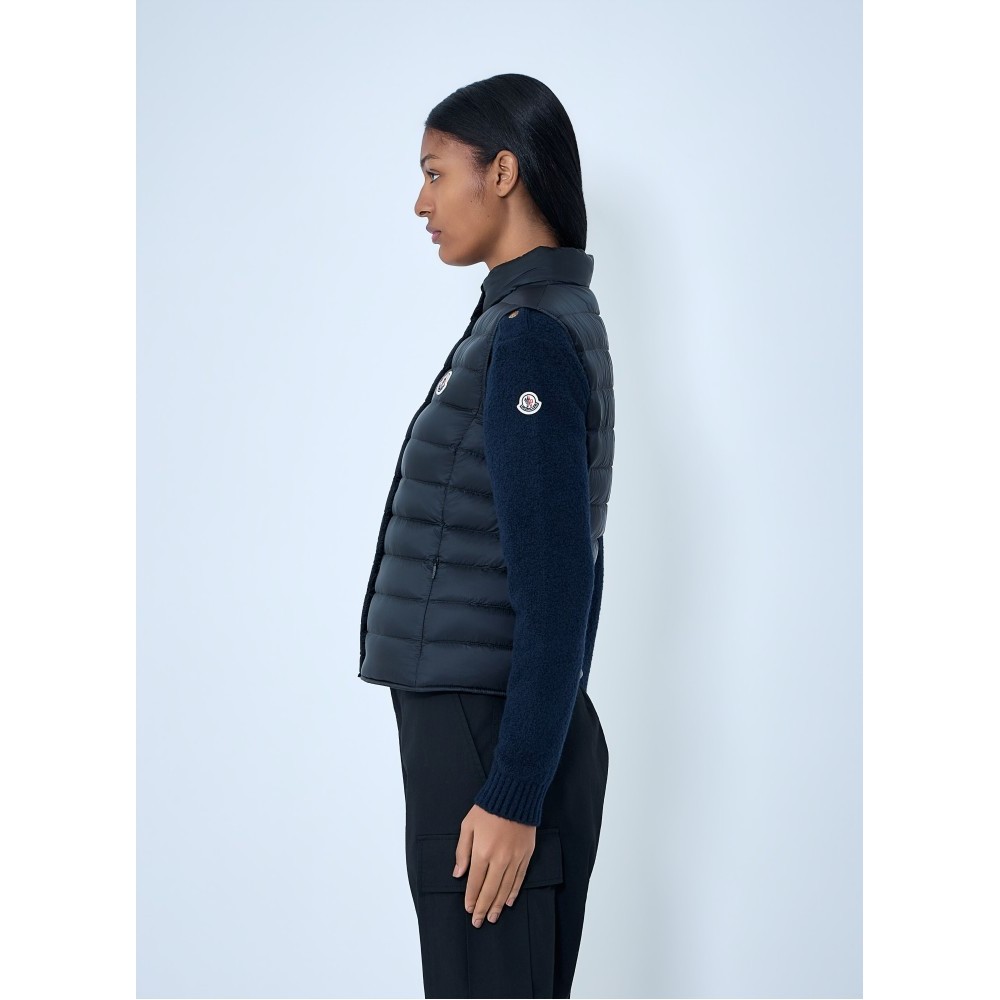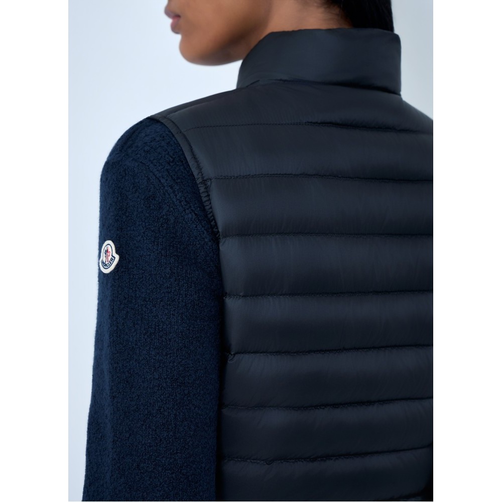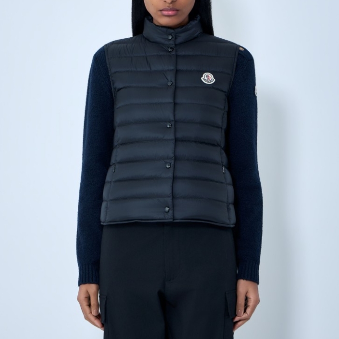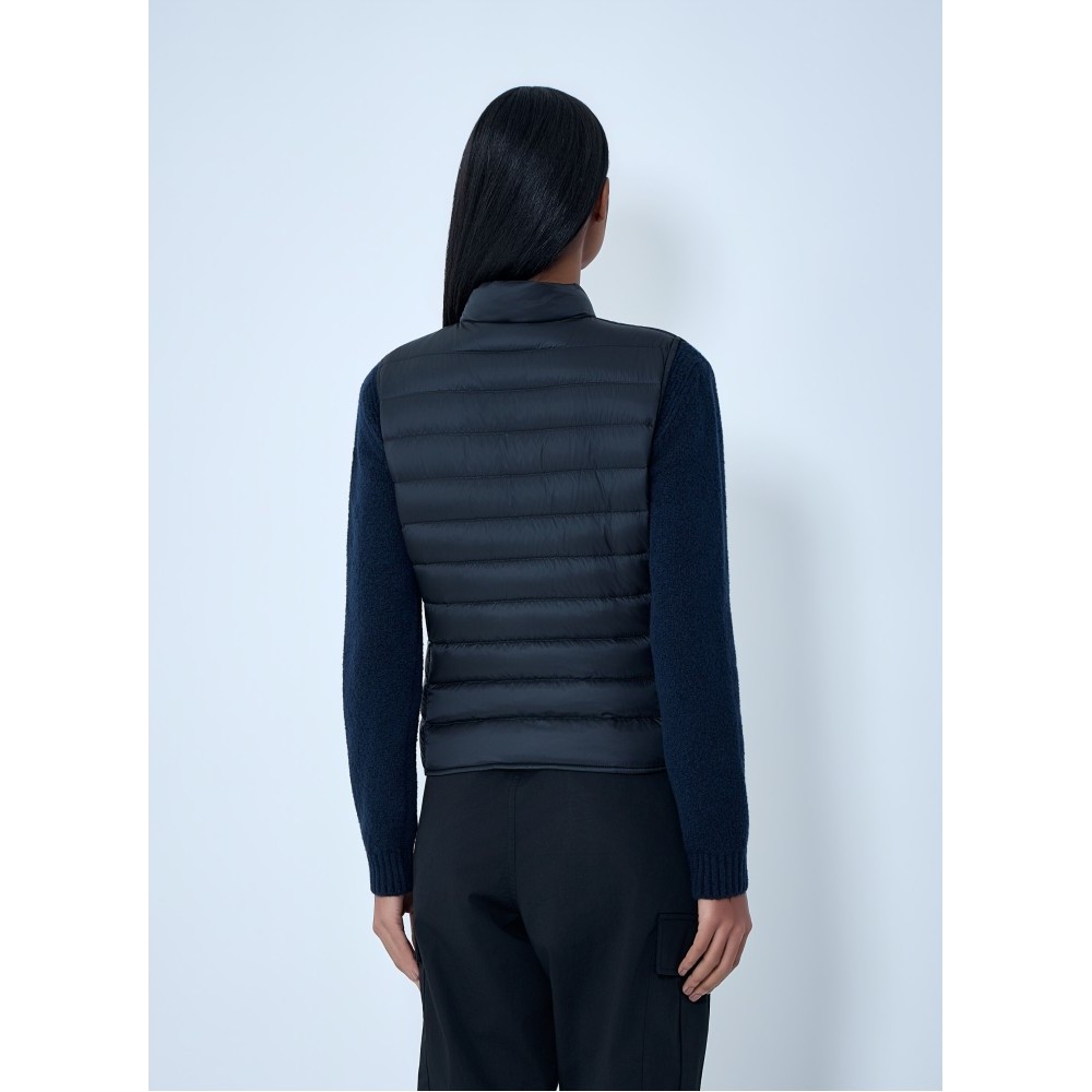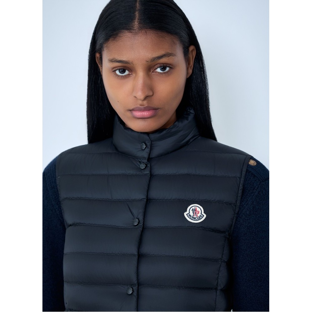 Padded sleeveless gilet with button closure.