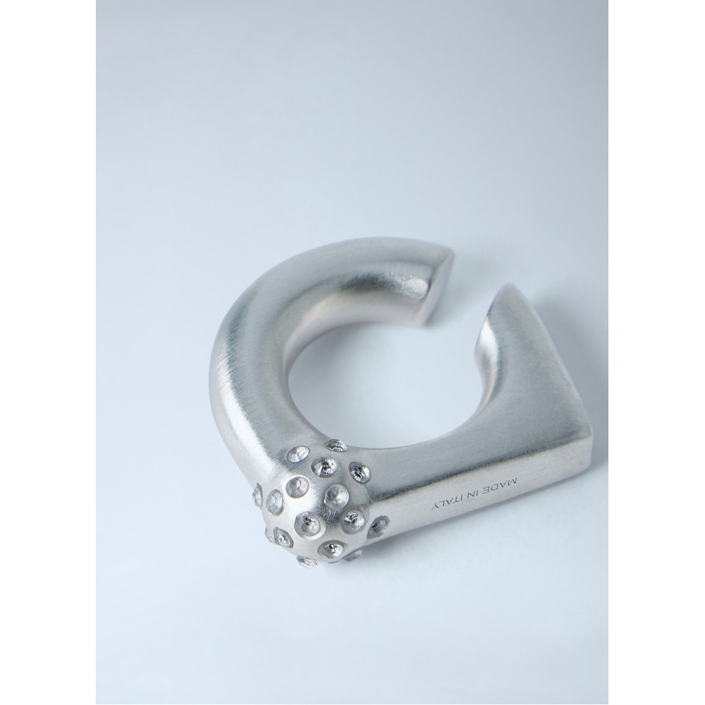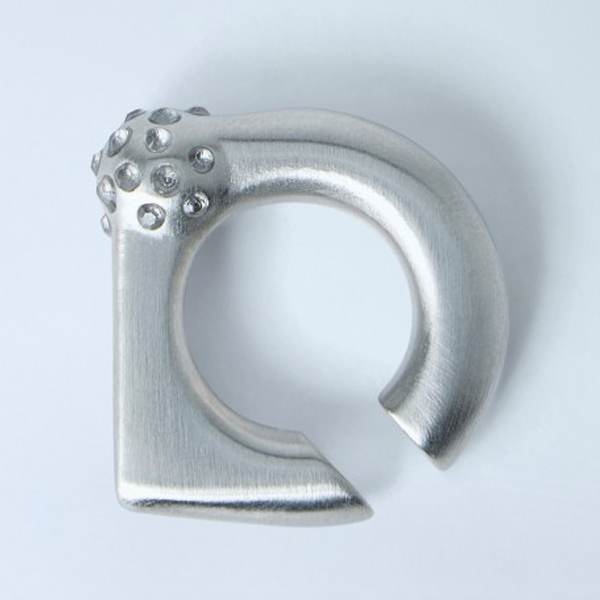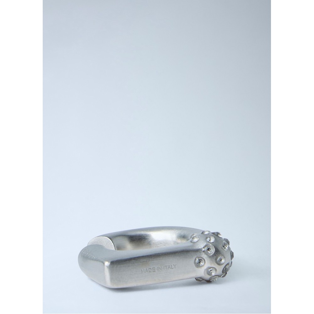 Textured metal ring with geometric open design.