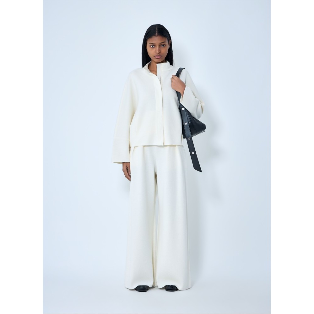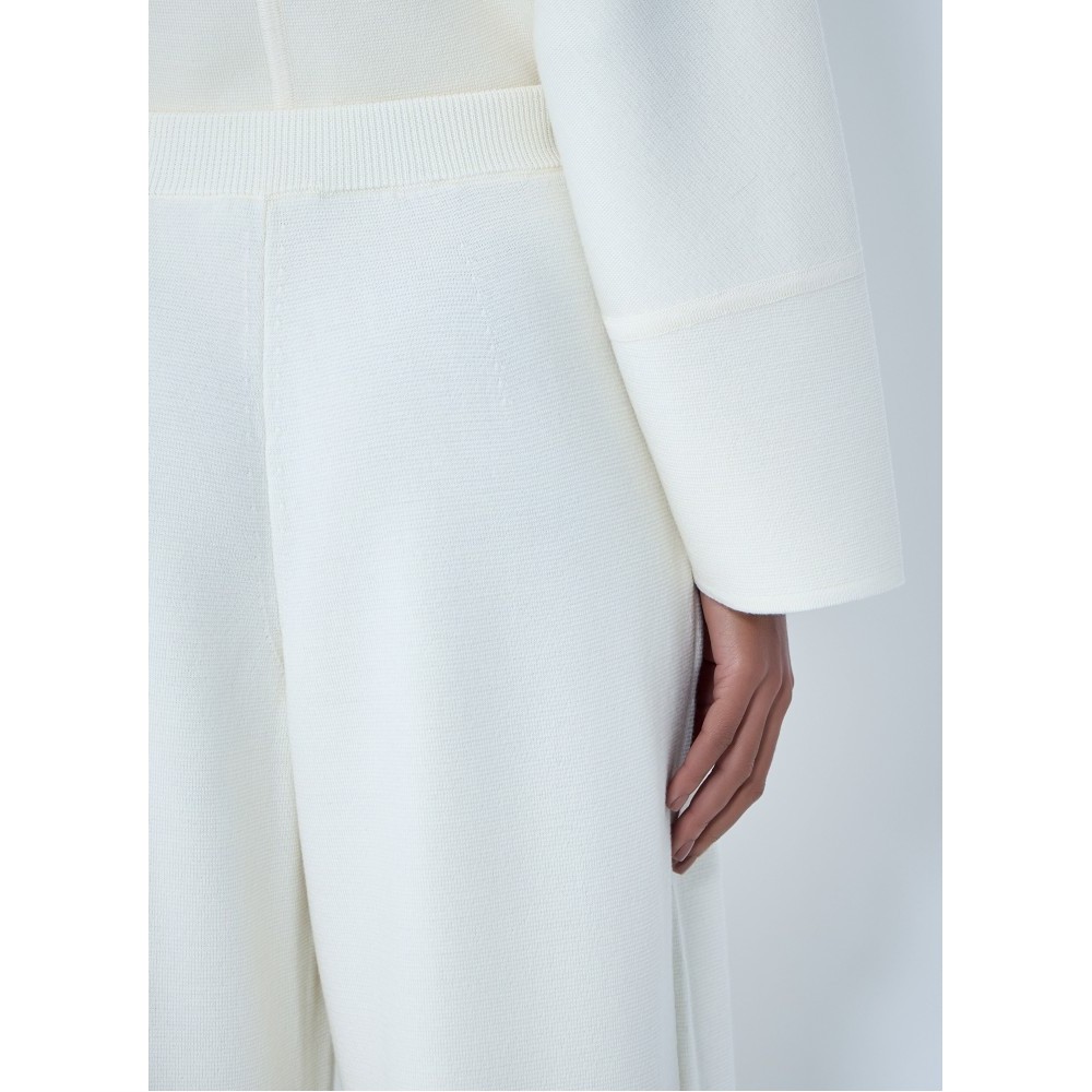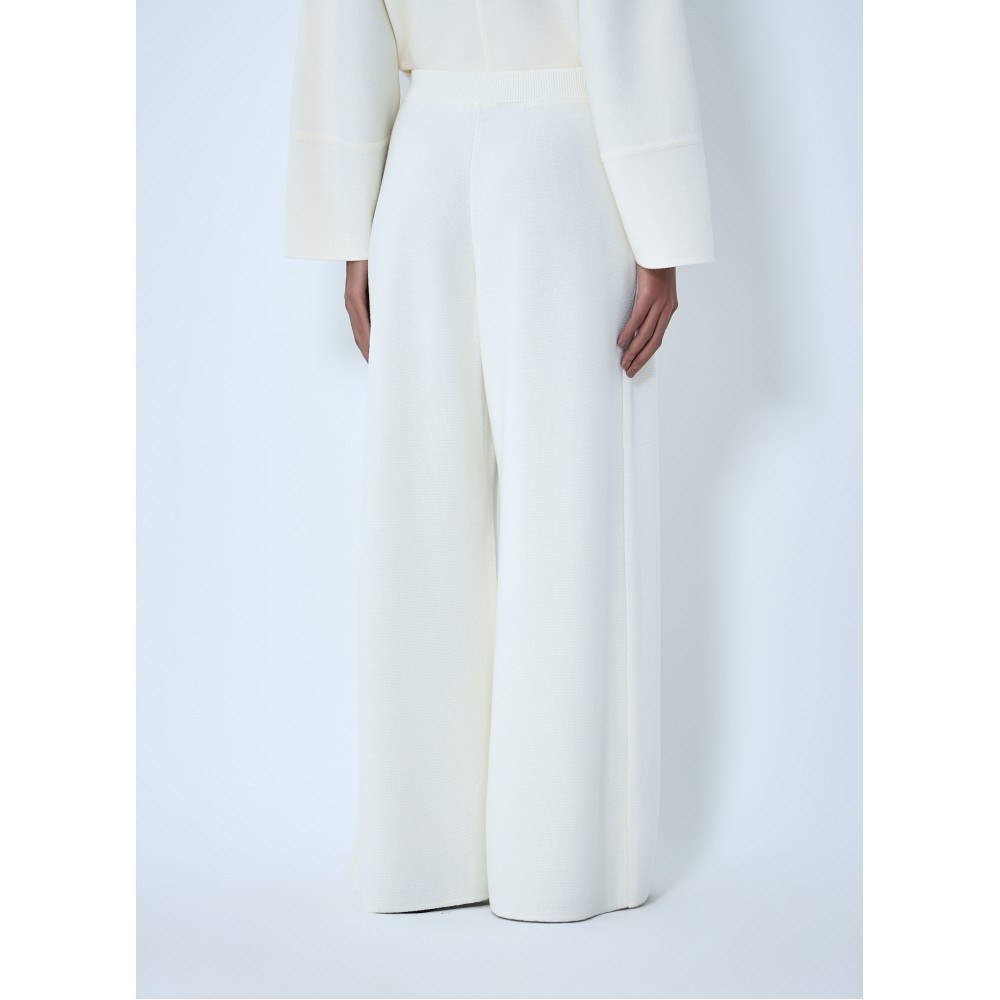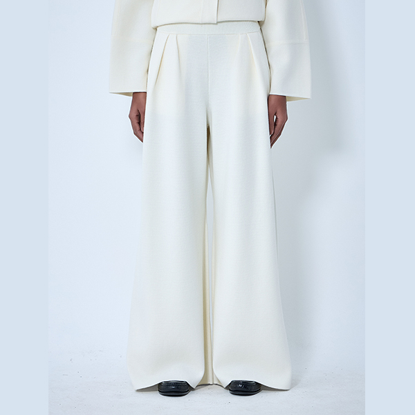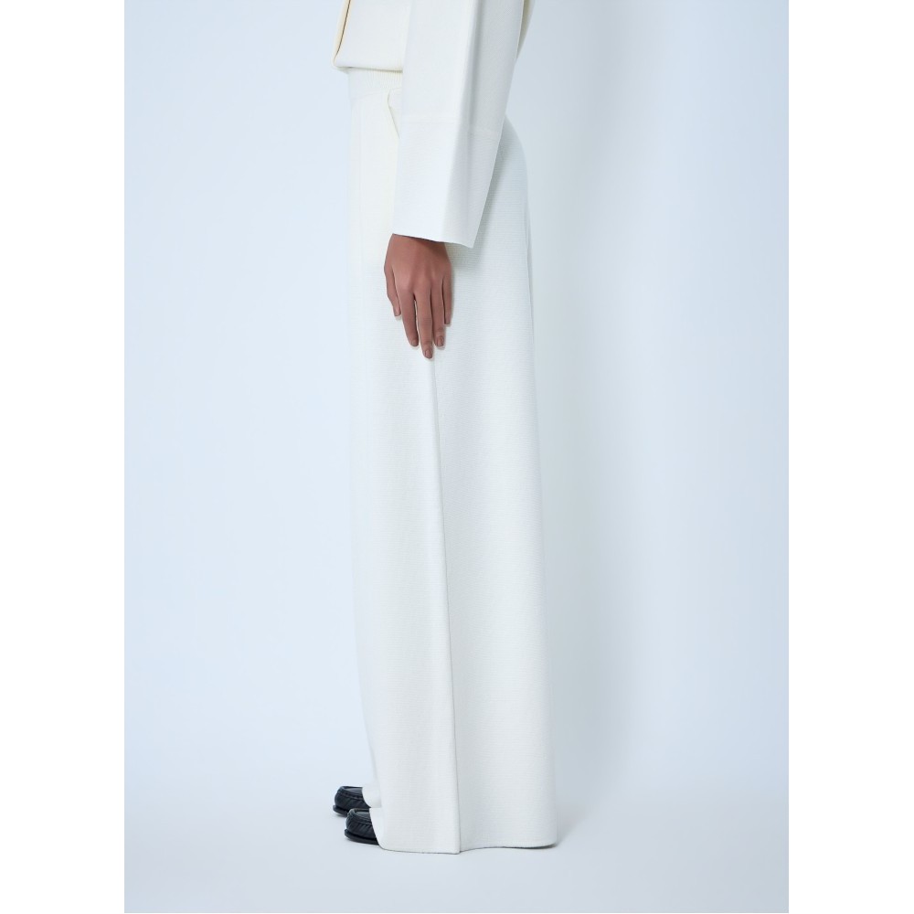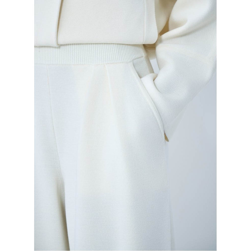 Wide-leg pants with pleated front in ribbed knit.
