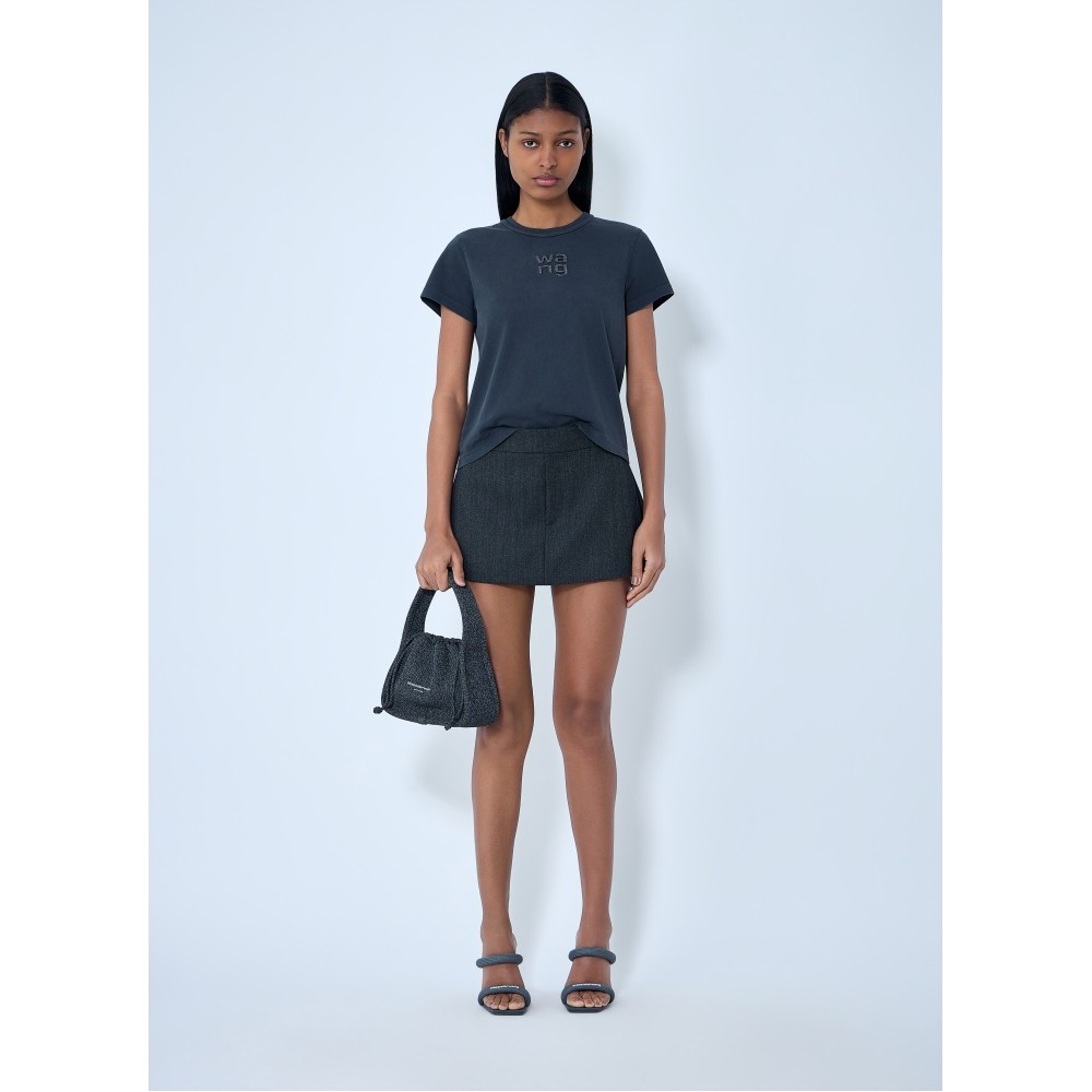 Mini skirt with tailored construction in structured fabric.