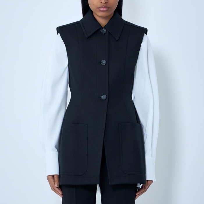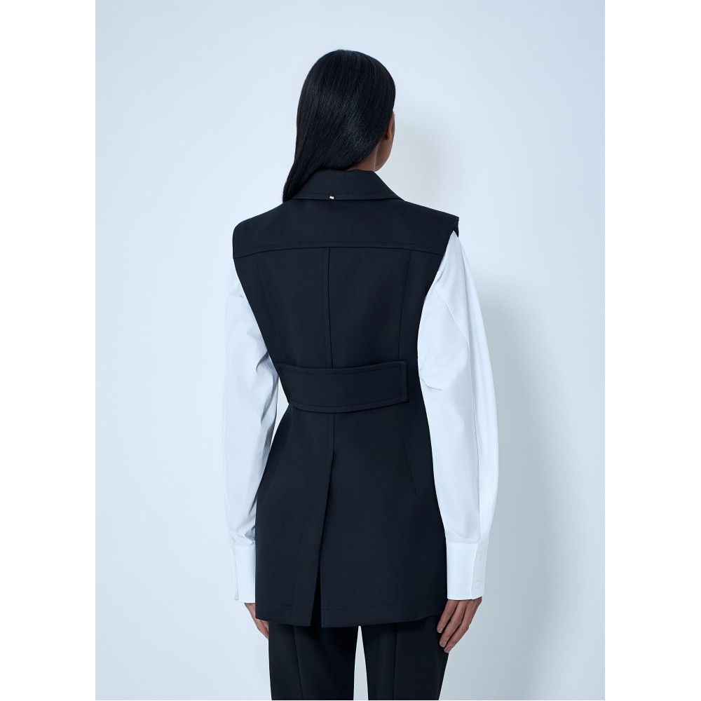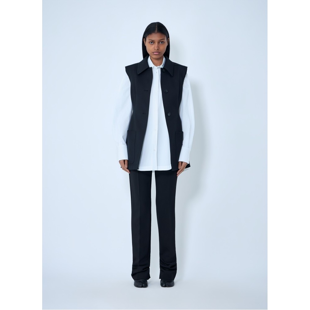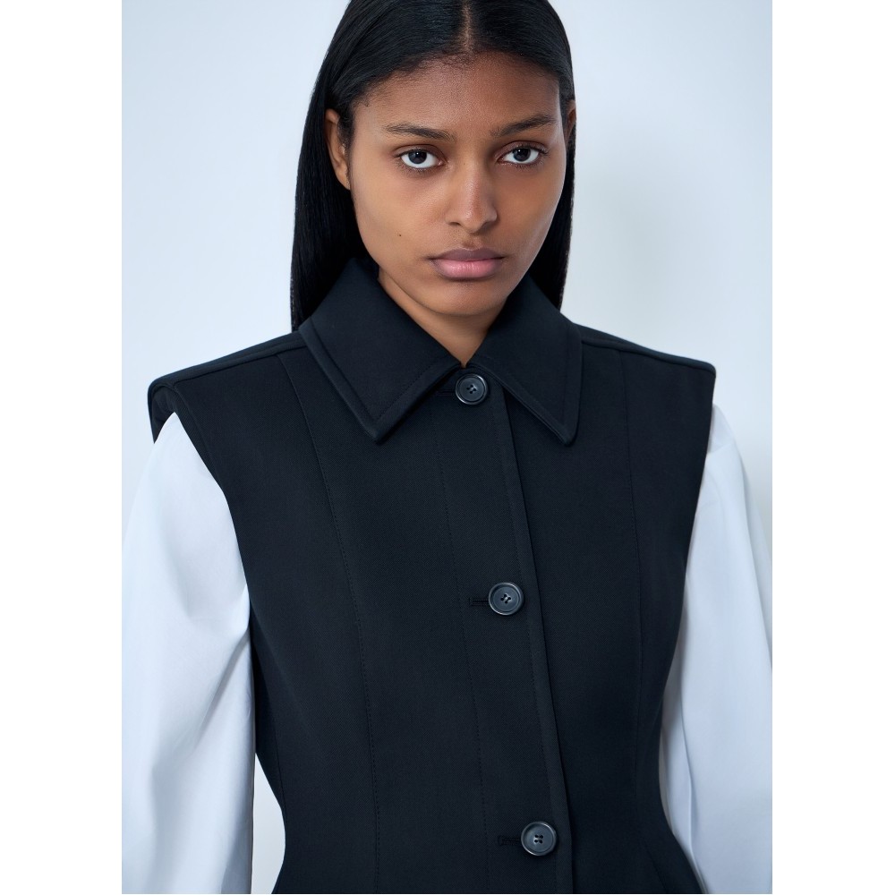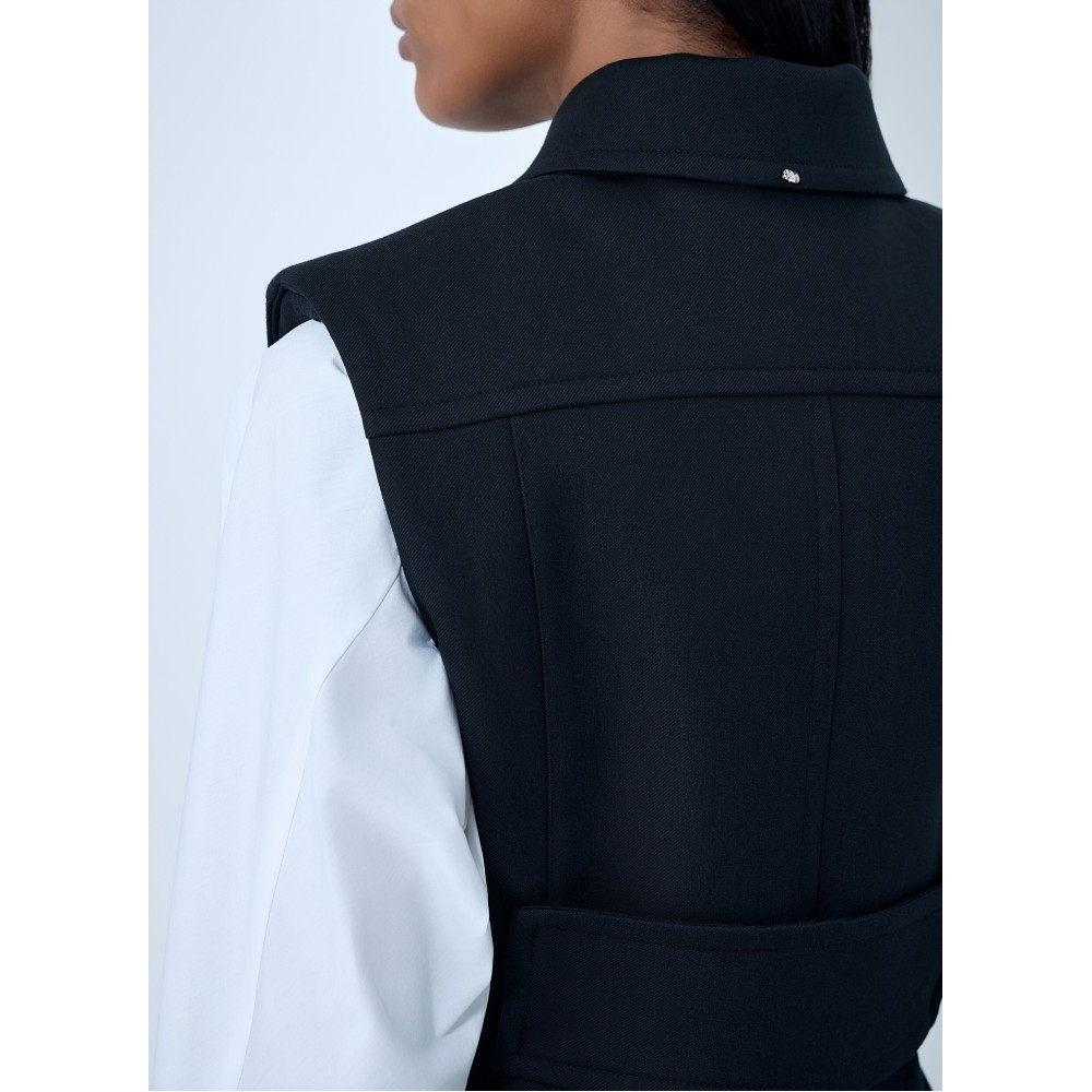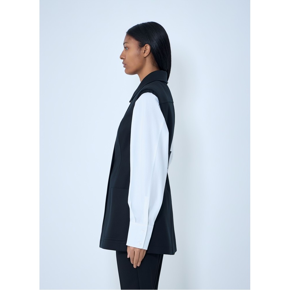 Sleeveless tailored vest in structured weave.