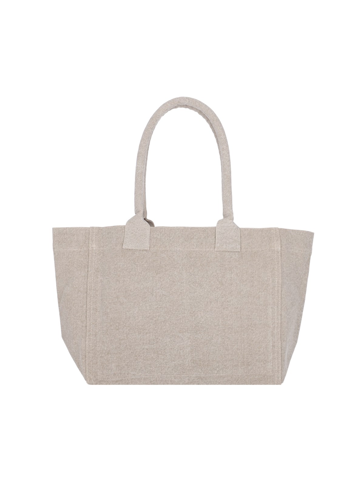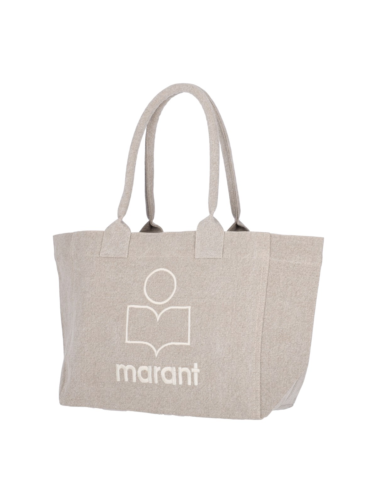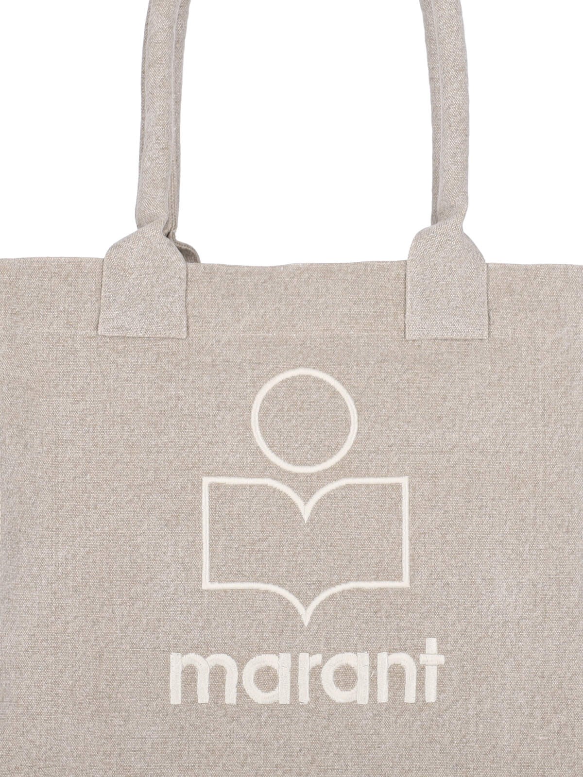 Isabel Marant "Yenky Zipped" tote bag in beige washed cotton canvas, two top handles, white logo embroidery on the front, zip closure, main inner compartment.