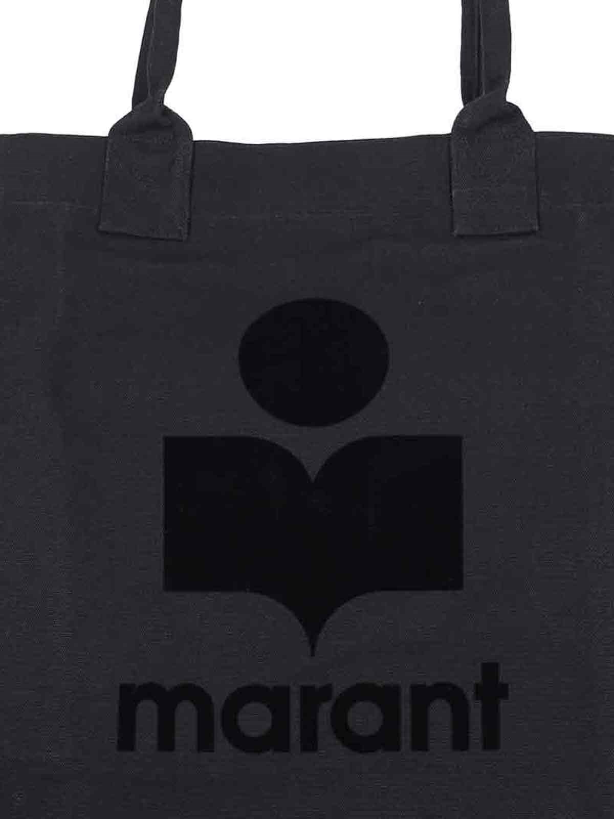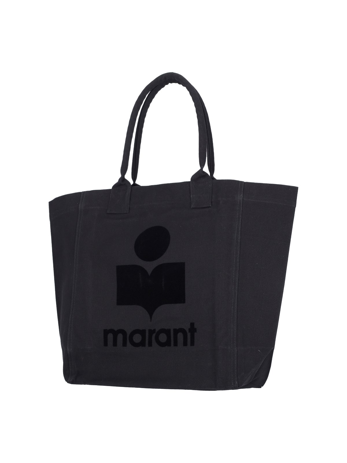 Isabel Marant "Yenky" black cotton tote bag, two top handles, tonal logo at the front, single inner compartment.