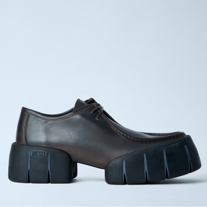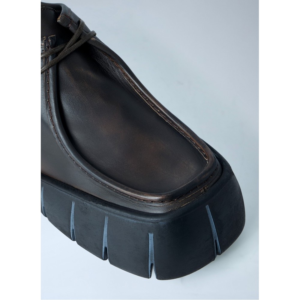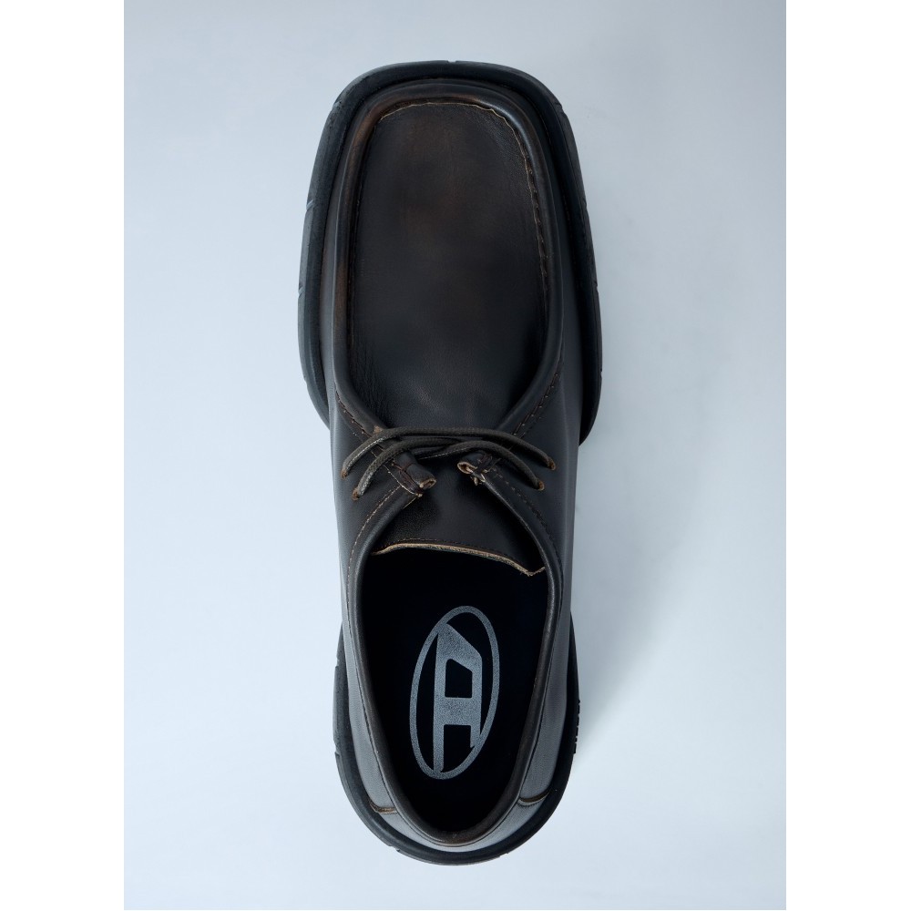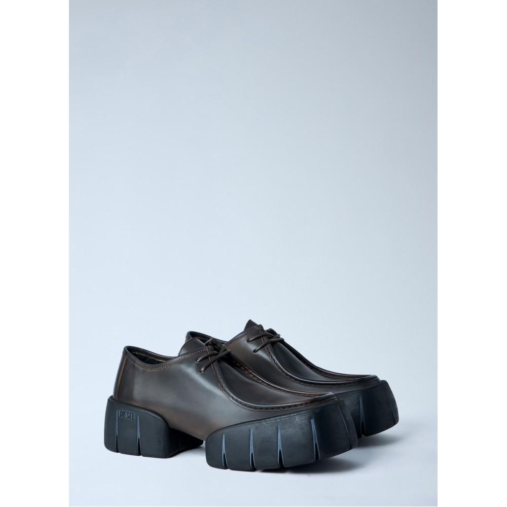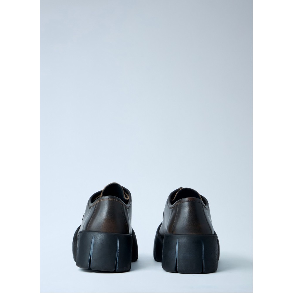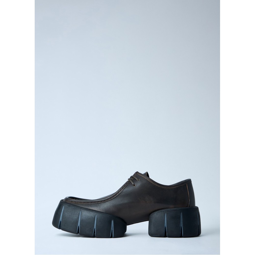 Leather derby shoes with chunky ridged sole.