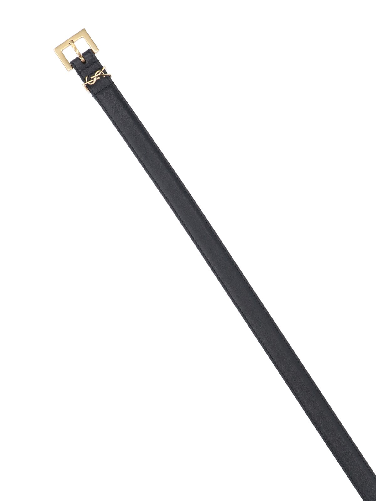 Saint LaurentMonogram Logo Belt, leather, black,square golden metal buckle, metal loop with monogram logo.