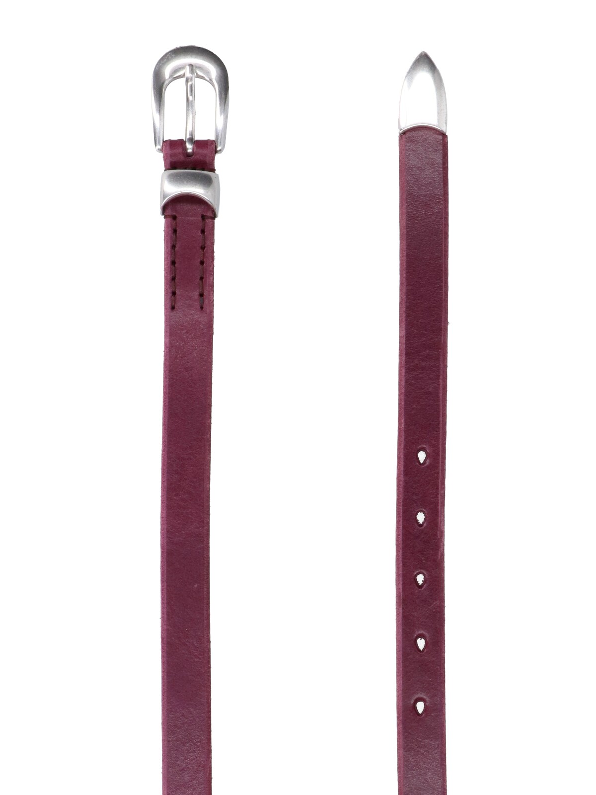 Our Legacy purple leather 2 Cm belt with silver metal loops, silver metal buckle, adjustable.