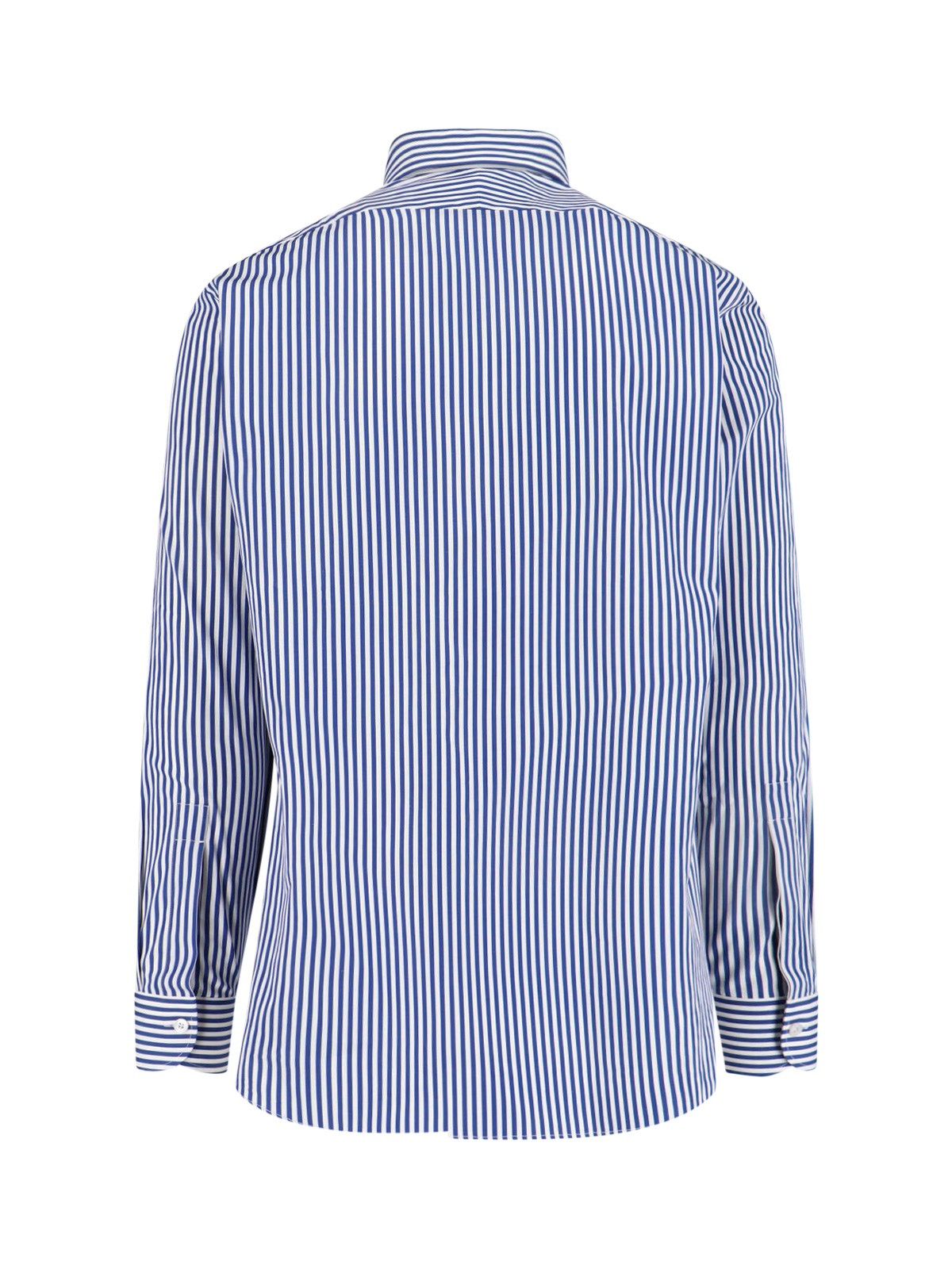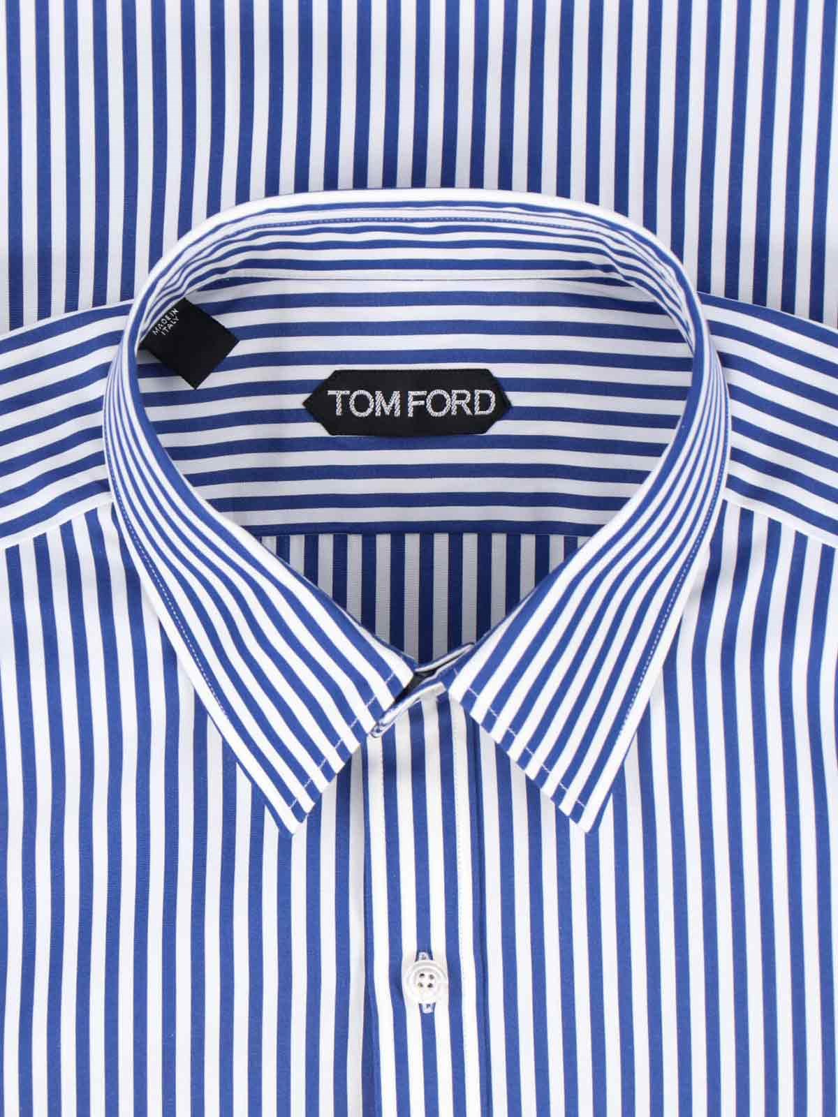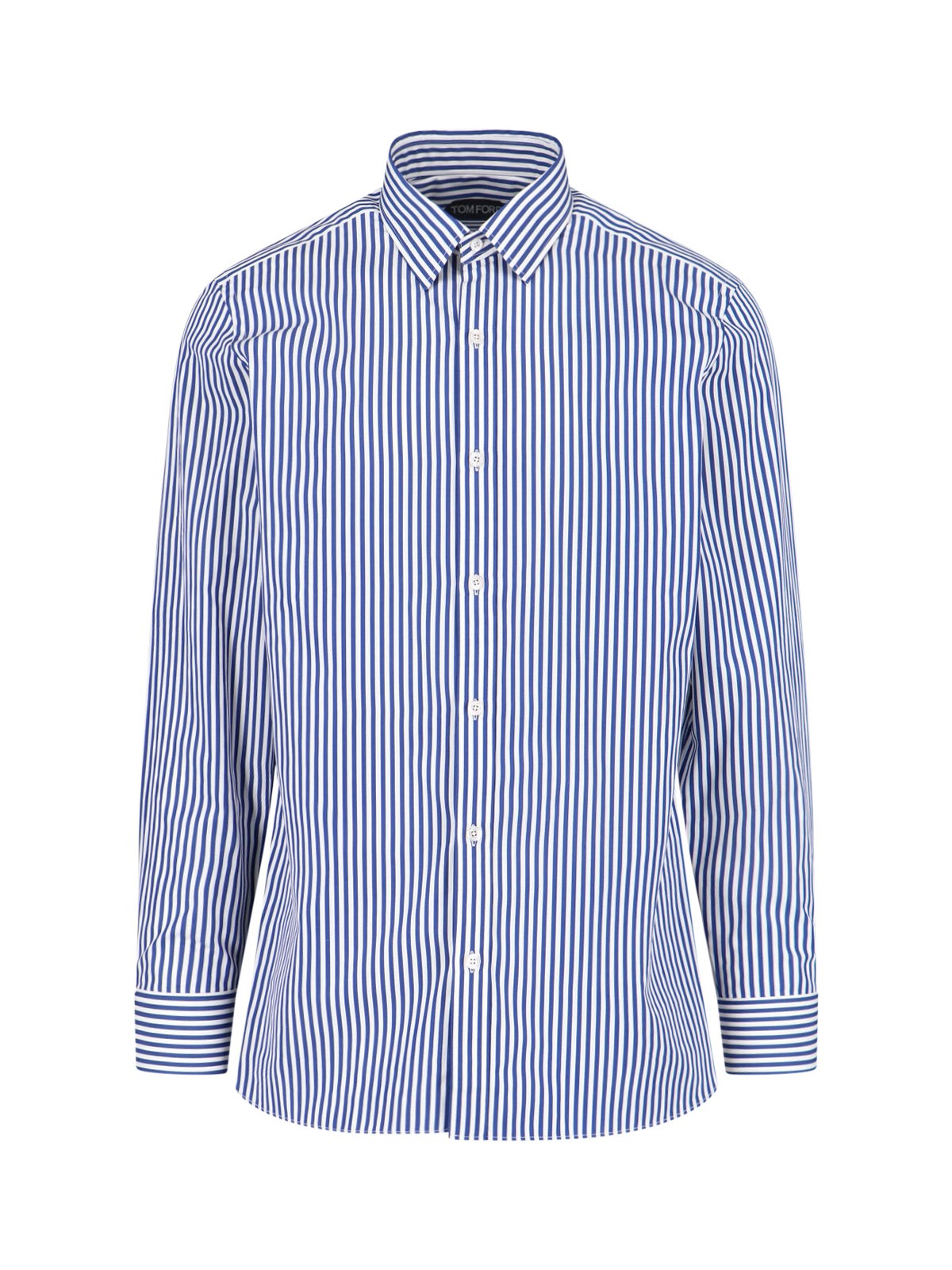 Tom Ford "Bengal" blue and white cotton shirt with striped pattern, classic collar, button closure, button cuffs, curved hem.