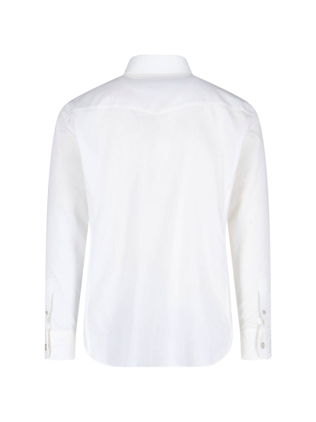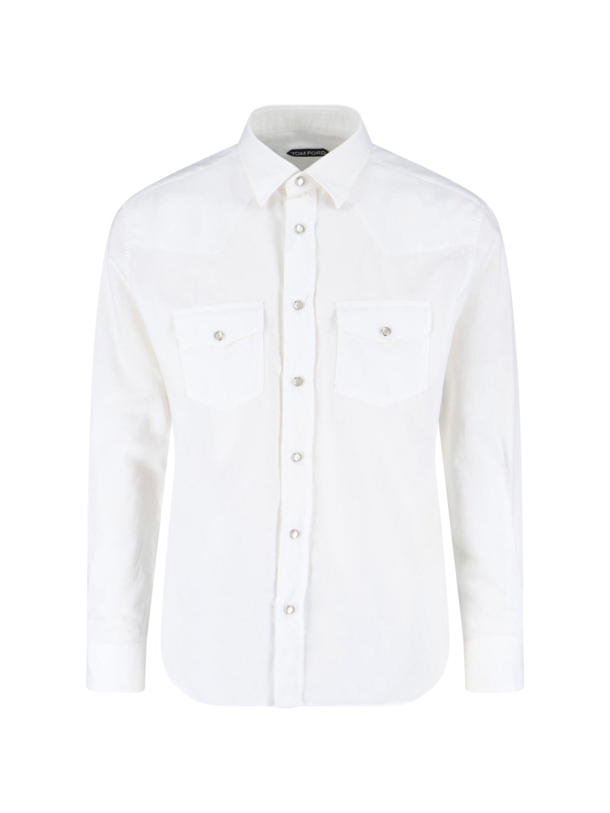 Tom Ford "western" white cotton shirt with classic collar, button closure, long sleeves, two front button flap pockets, button cuffs, curved hem.