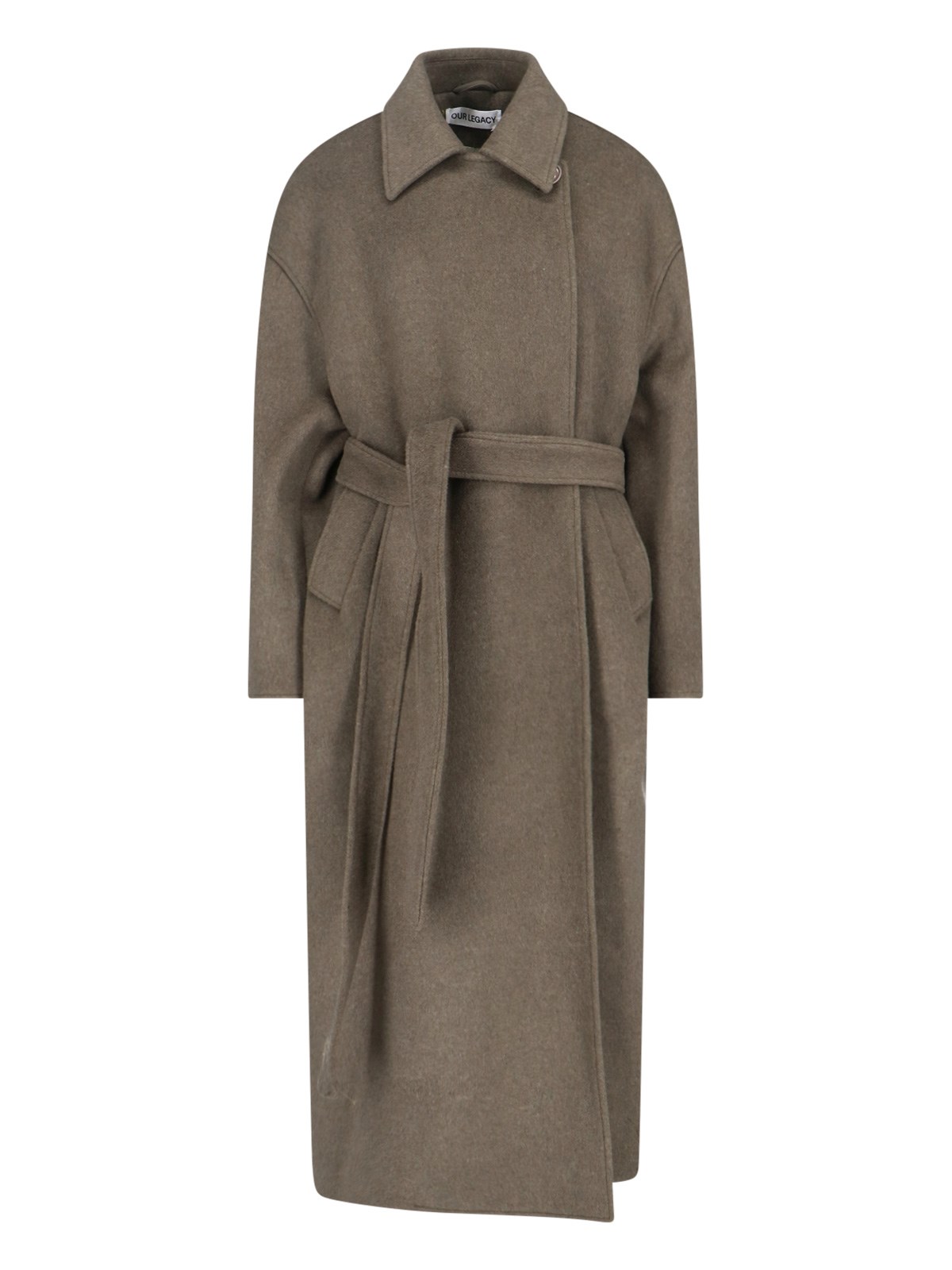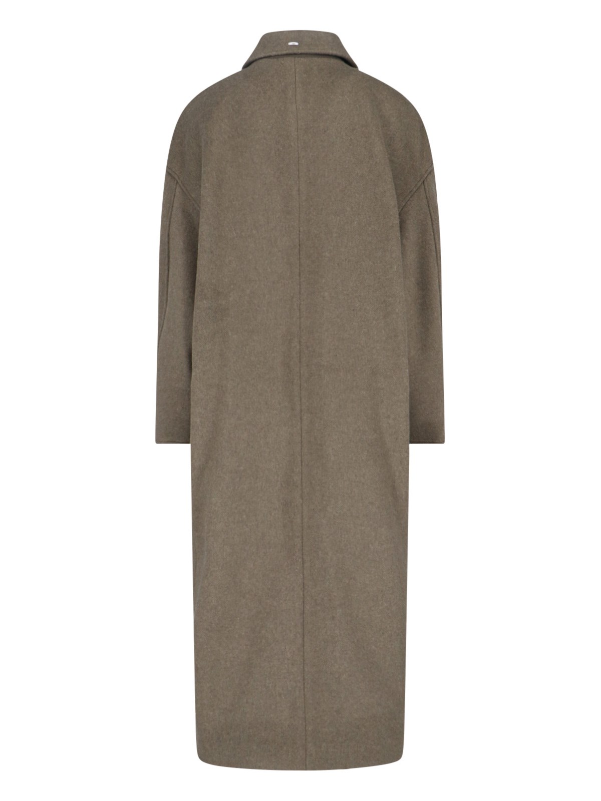 Green wool blend Court coat, classic collar, concealed button closure, two side pockets, silver metal logo at the back, straight hem.