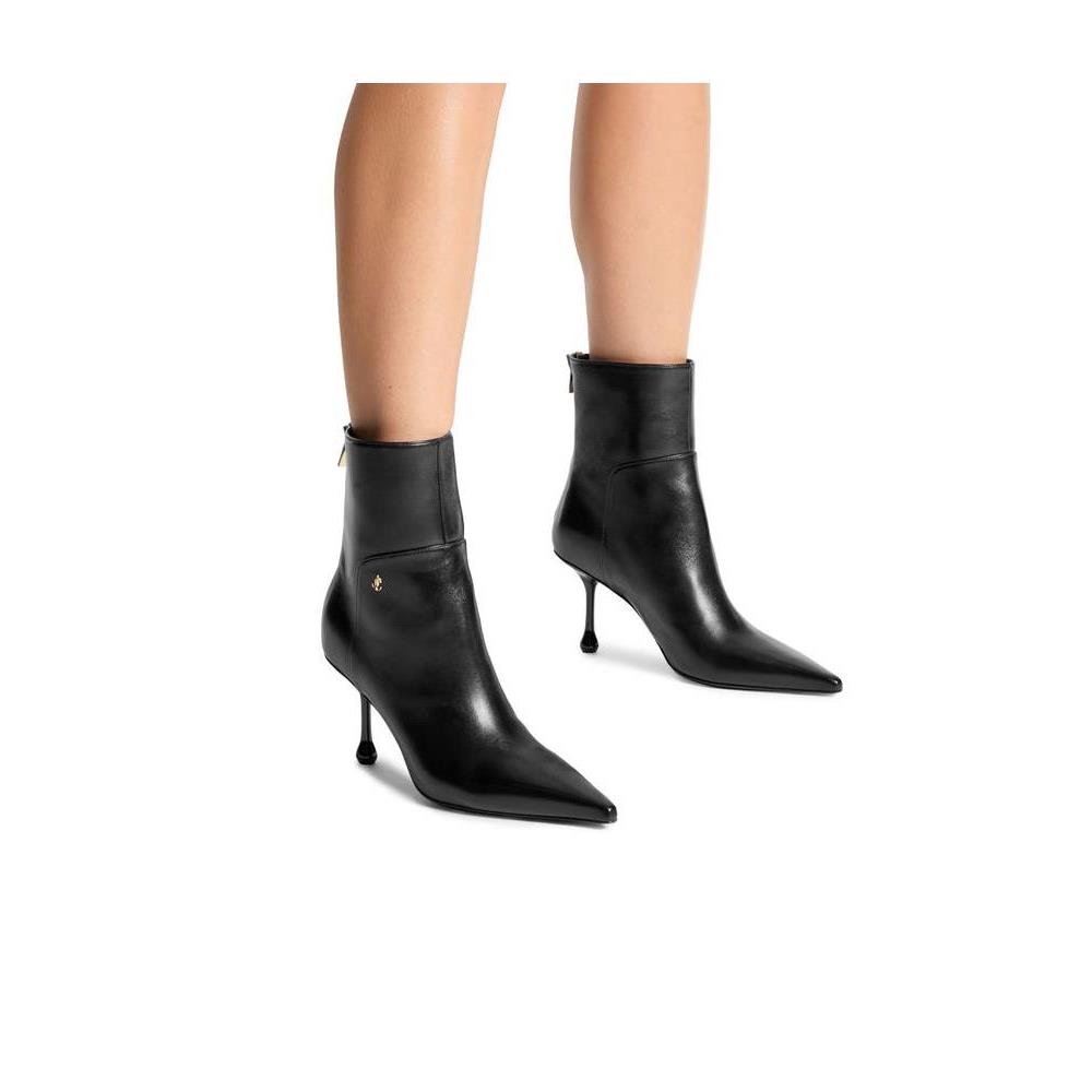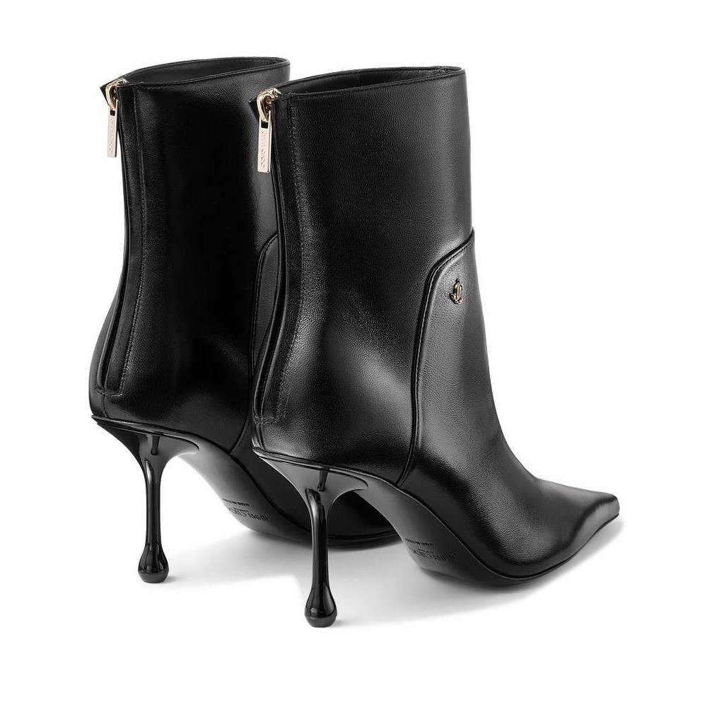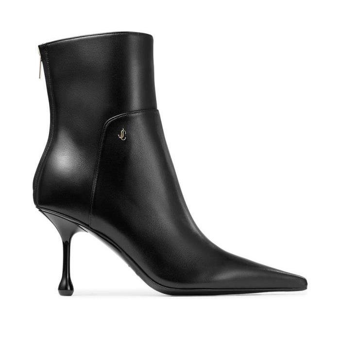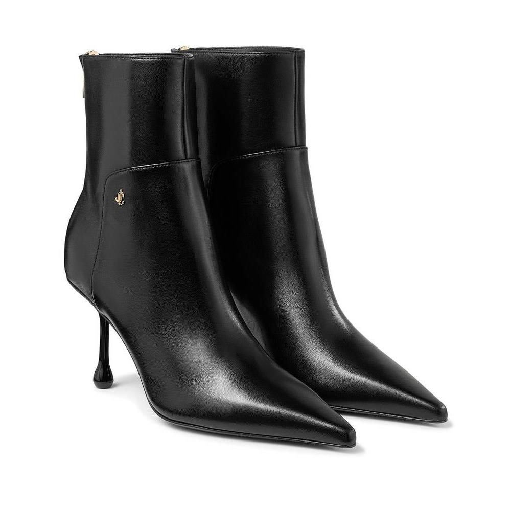 Description : Boots & ankle boots, logo on the side, logo in gold letters, smooth leather, stiletto heel, high heel, closed, pointed toe, back zipper, chelsea boots.