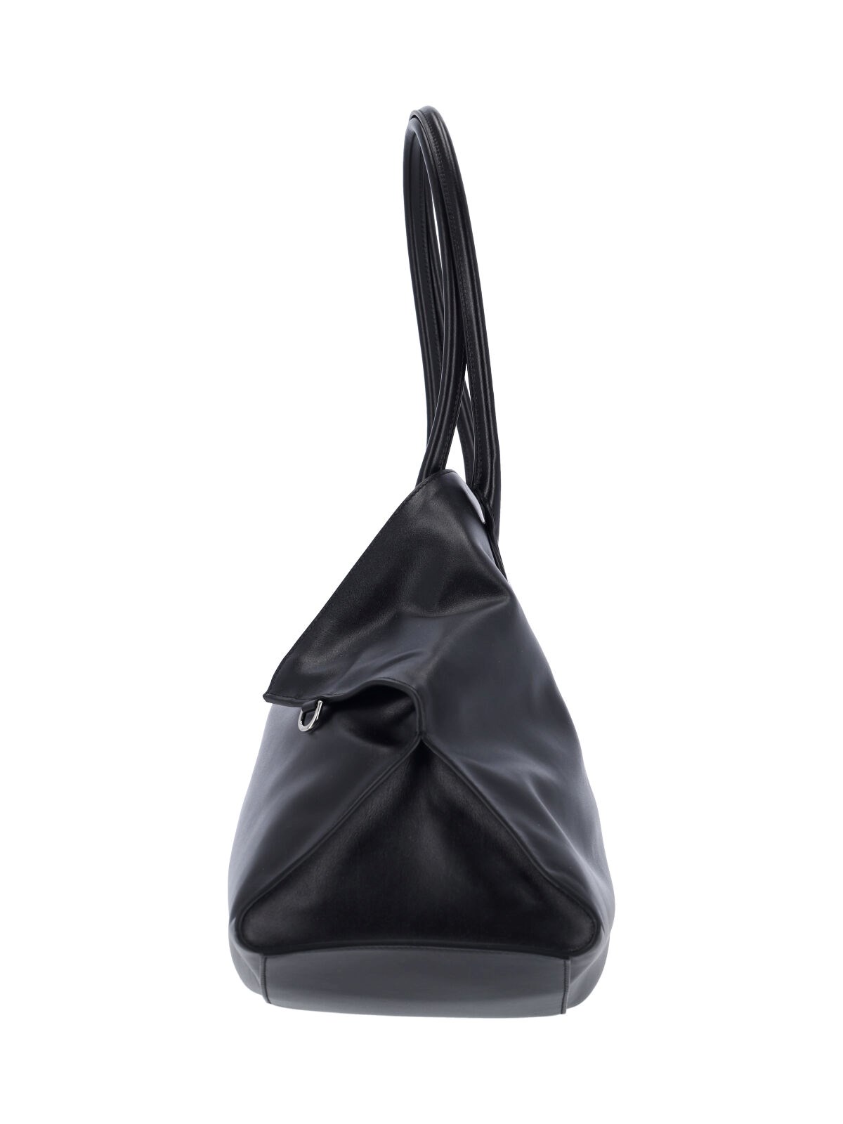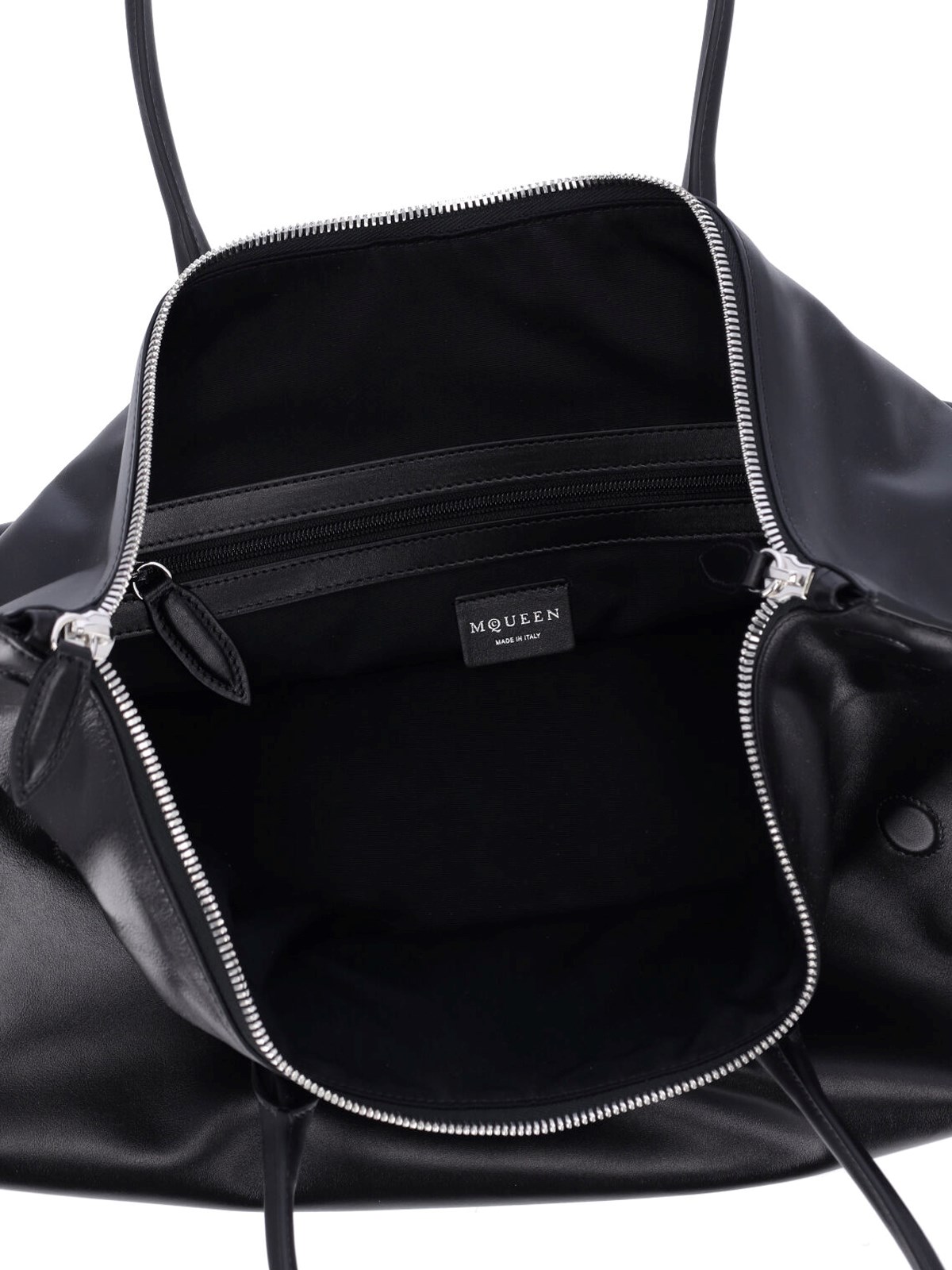 Alexander Mcqueen 'Manta' large shoulder bag in black calf leather, two top leather handles, zip closure, silver metal logo on the front, inner pocket, single inner compartment.