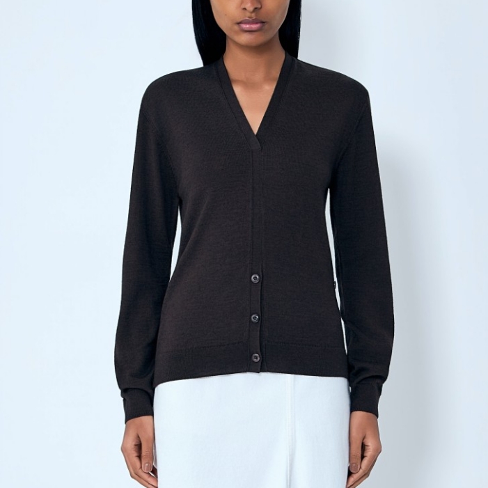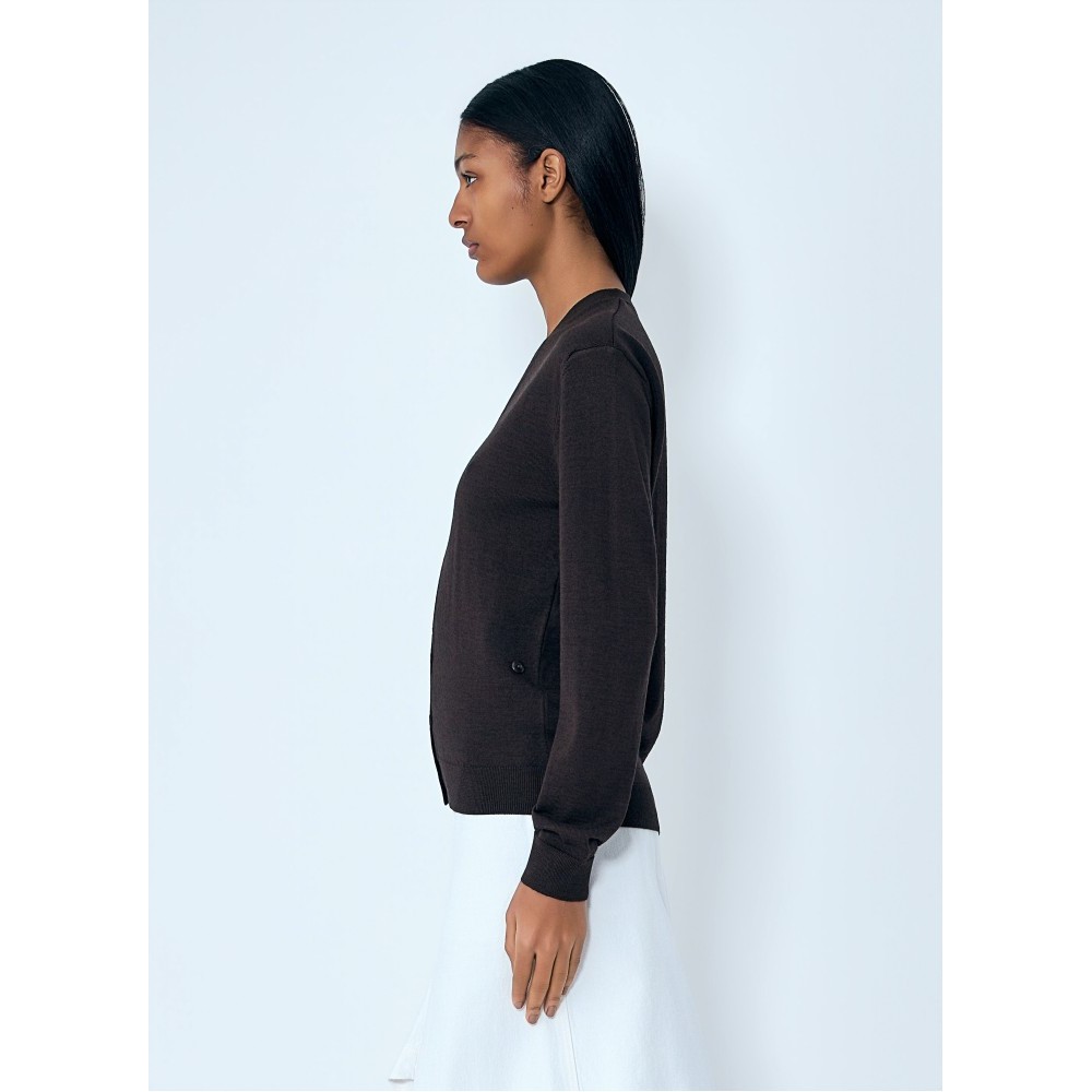 V-neck cardigan in fine knit construction.