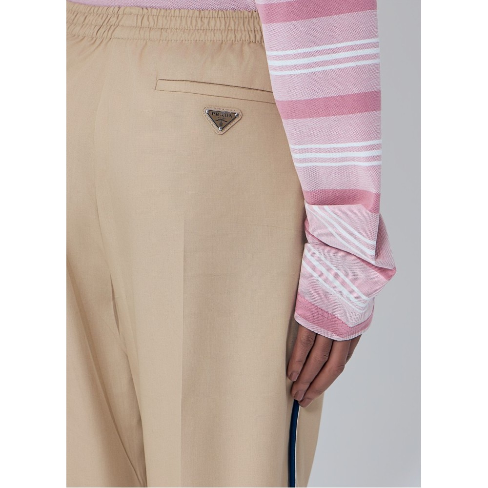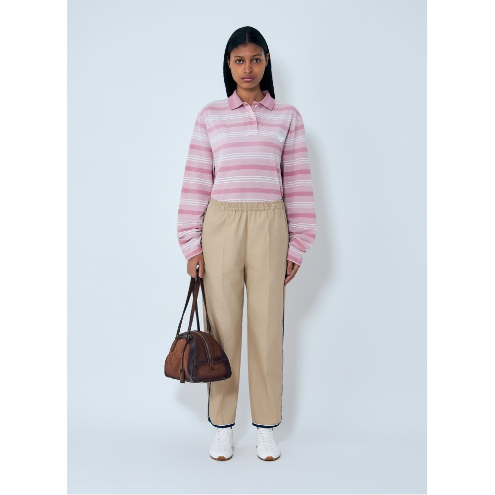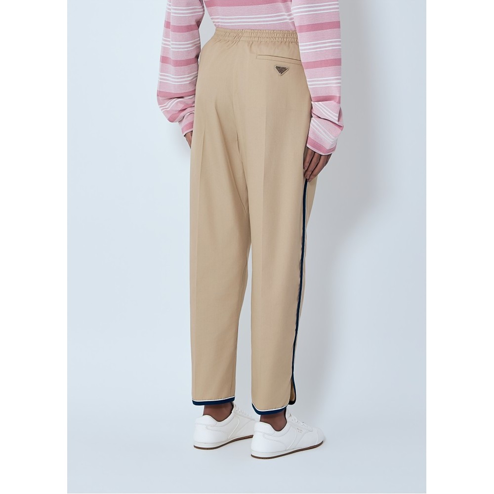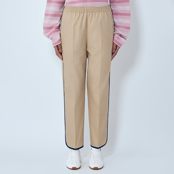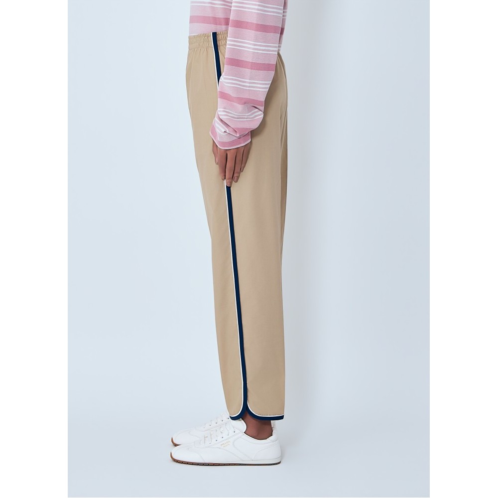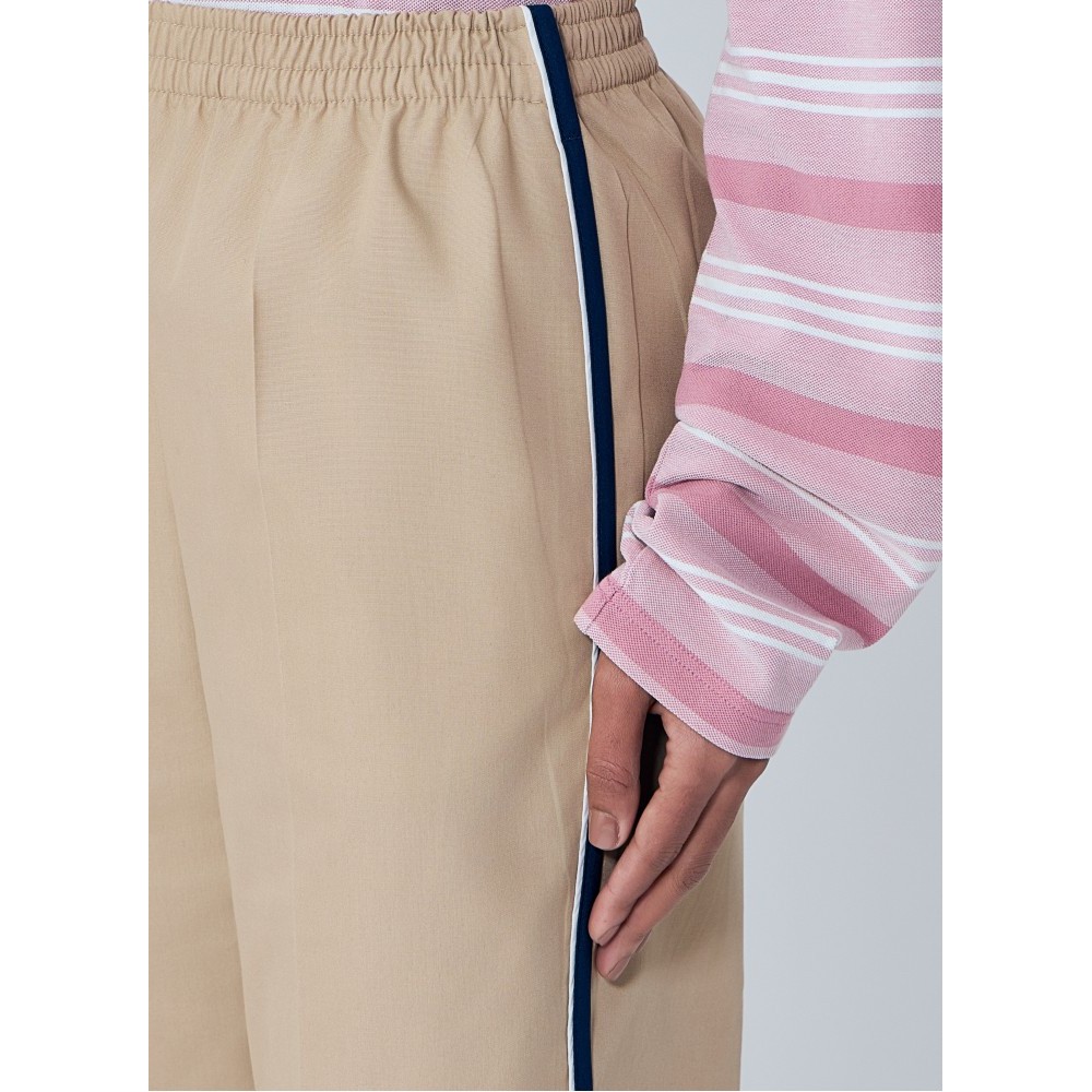 Mid rise trousers with elasticated waistband and contrast piping.