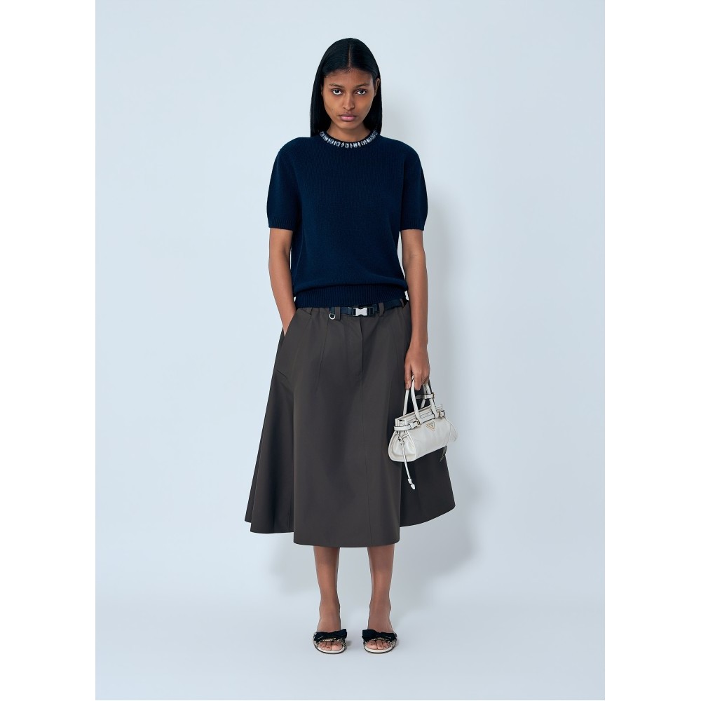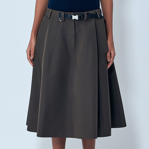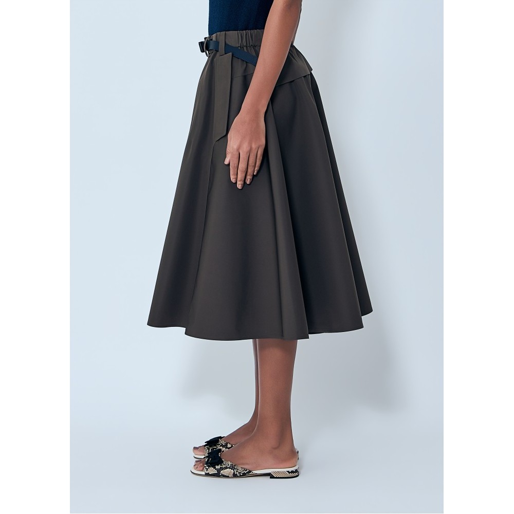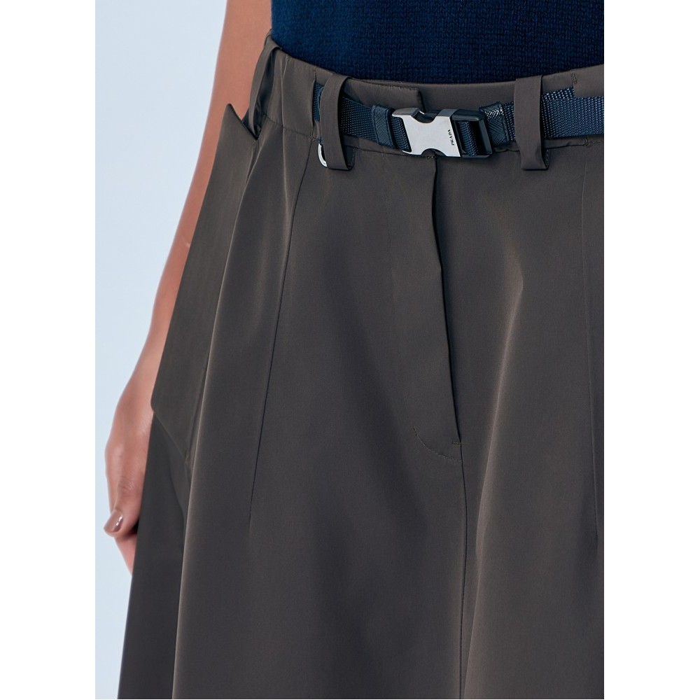 Pleated skirt with structured A-line silhouette.