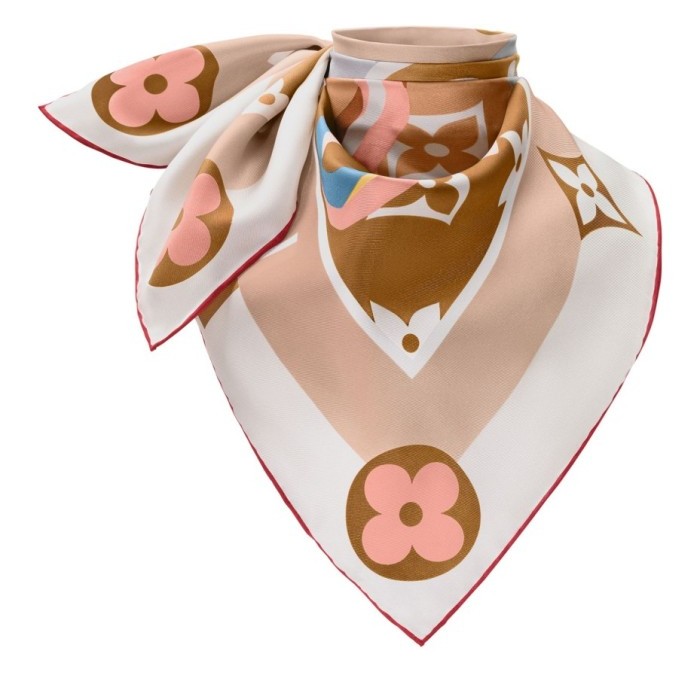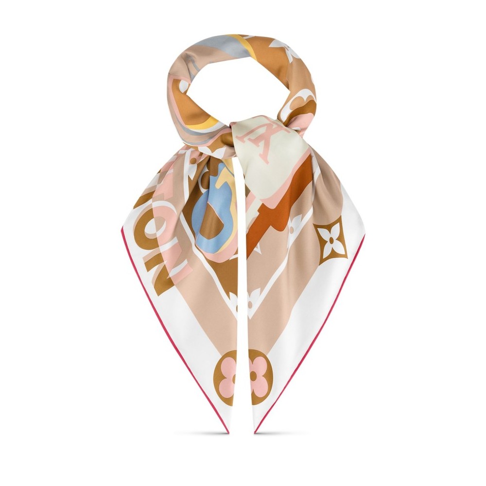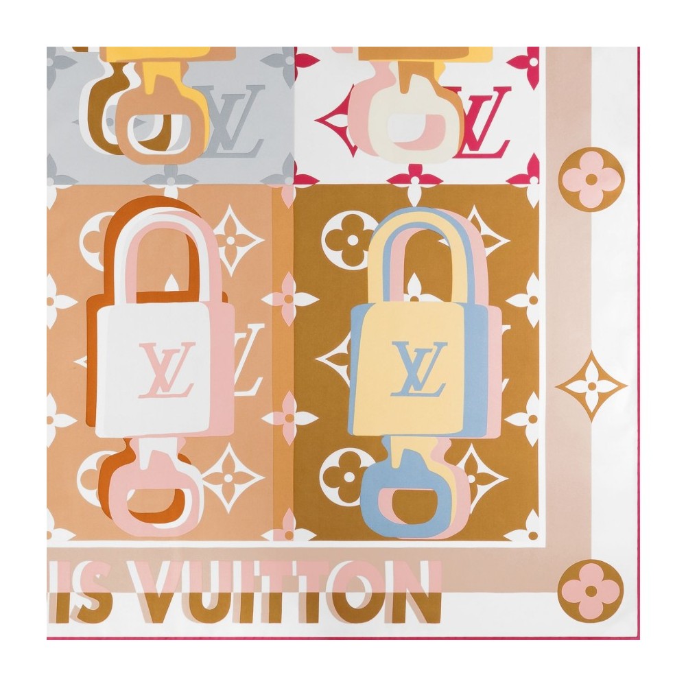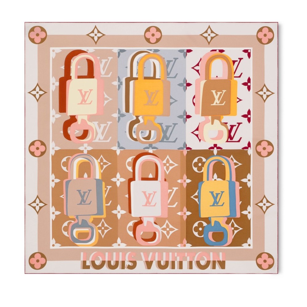 Description : Monogram, lock motifs, hand-rolled edges, contrasting border.