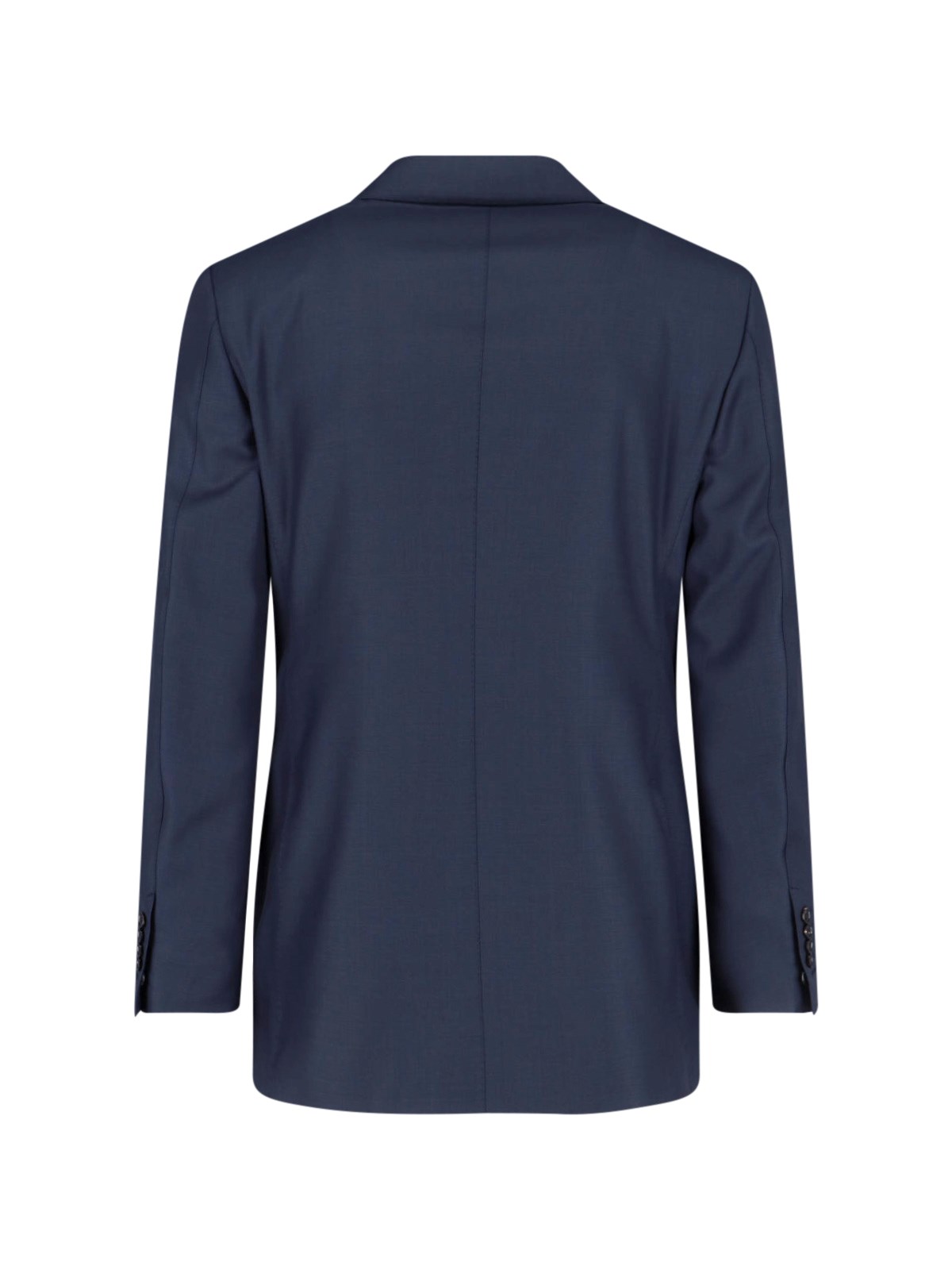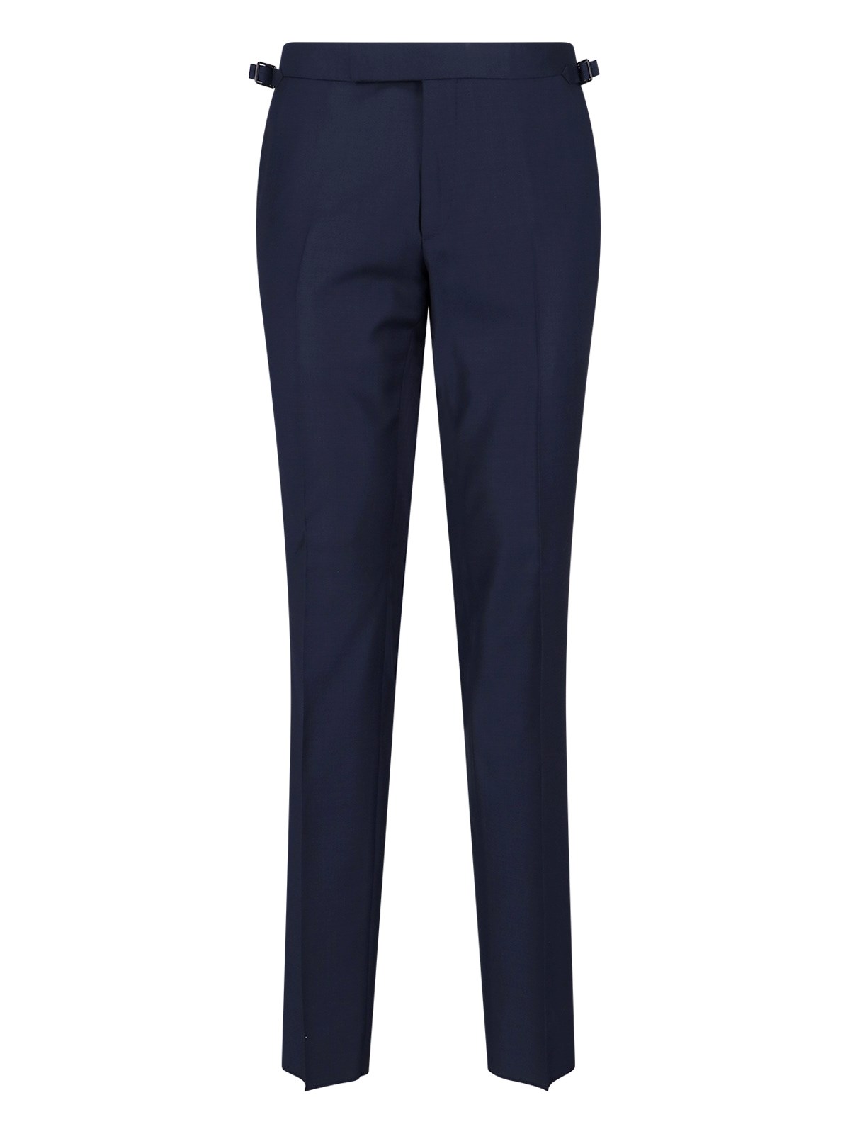 Tom Fod "shelton" single-breasted suit in navy blue wool, classic lapels, single-breasted button closure on the front, long sleeves, three front flap pockets, one chest pocket, button cuffs, straight hem, tailored trousers, zip and hook closure, two back welt pockets, straight leg.