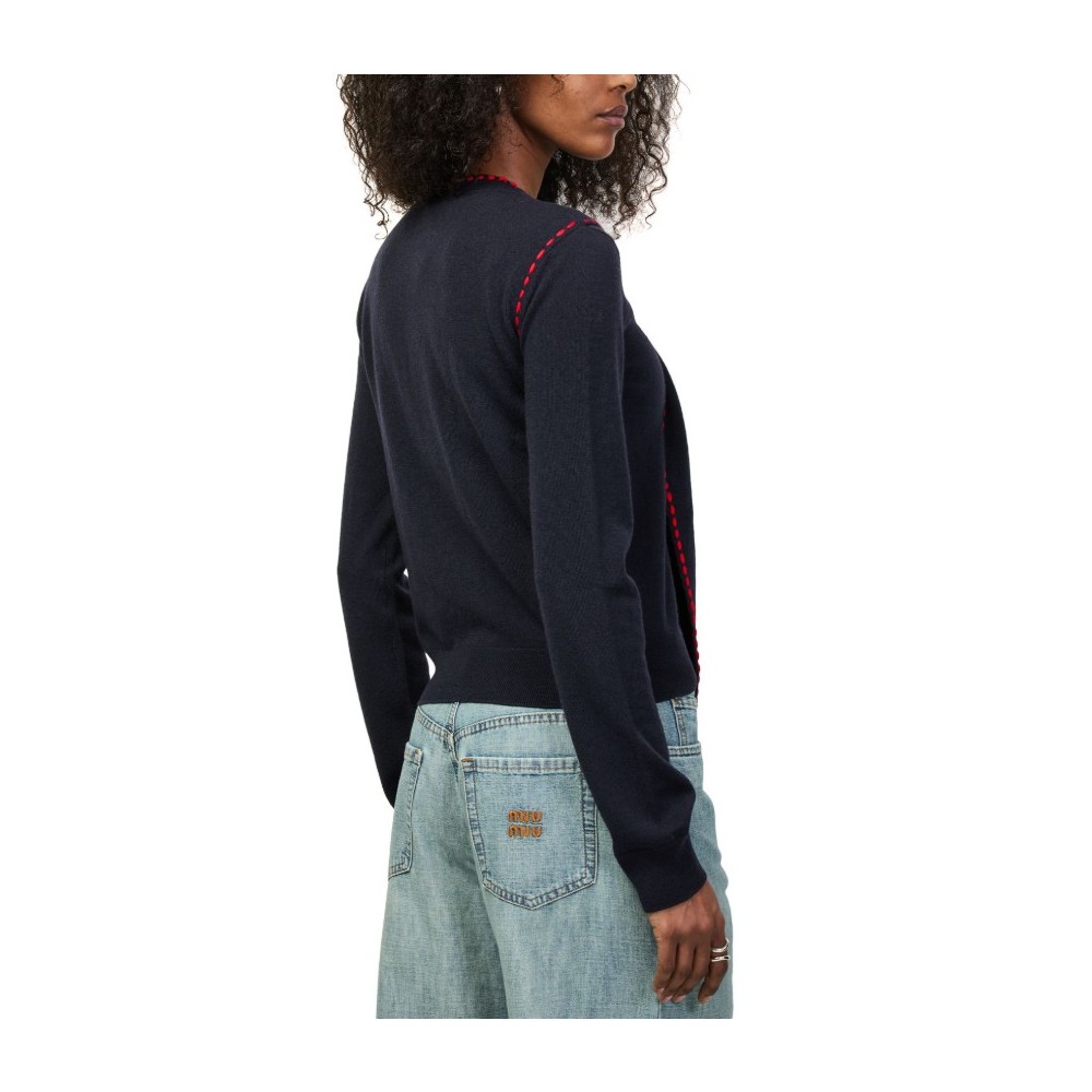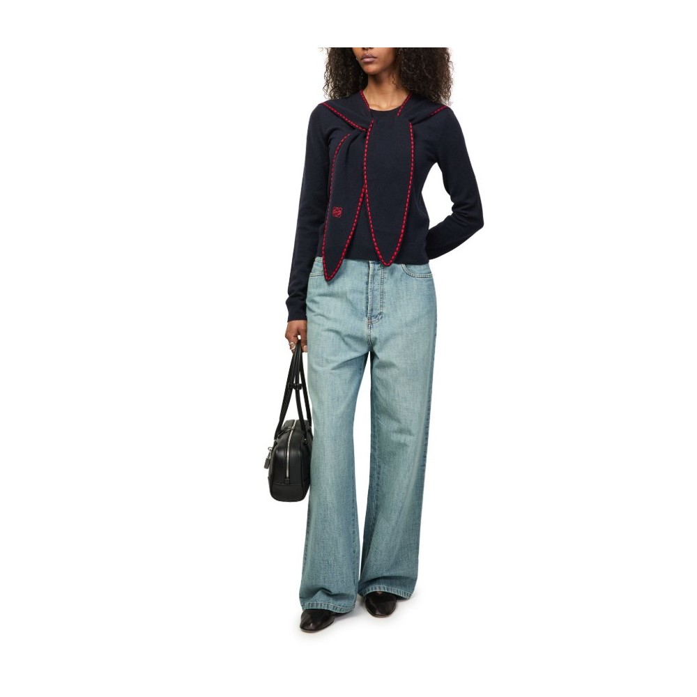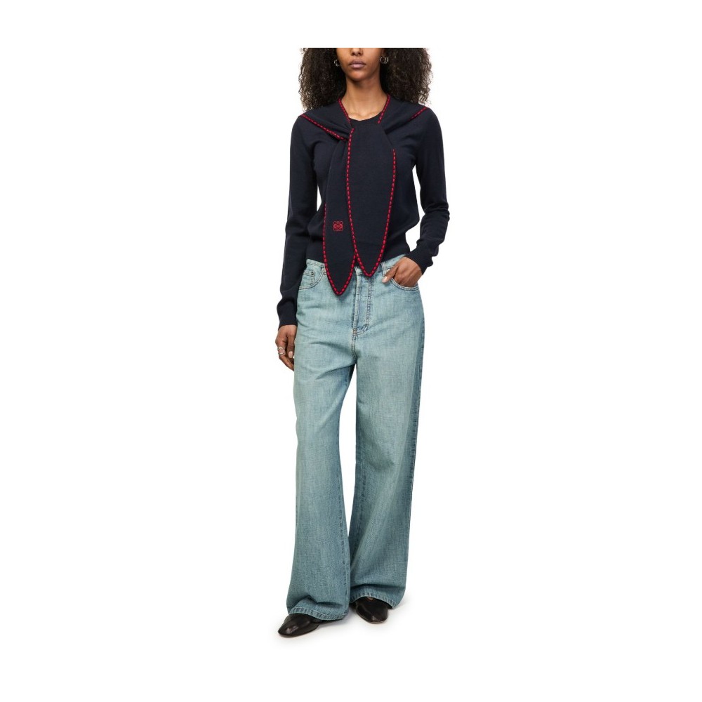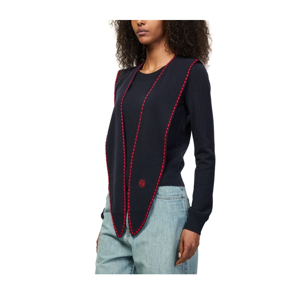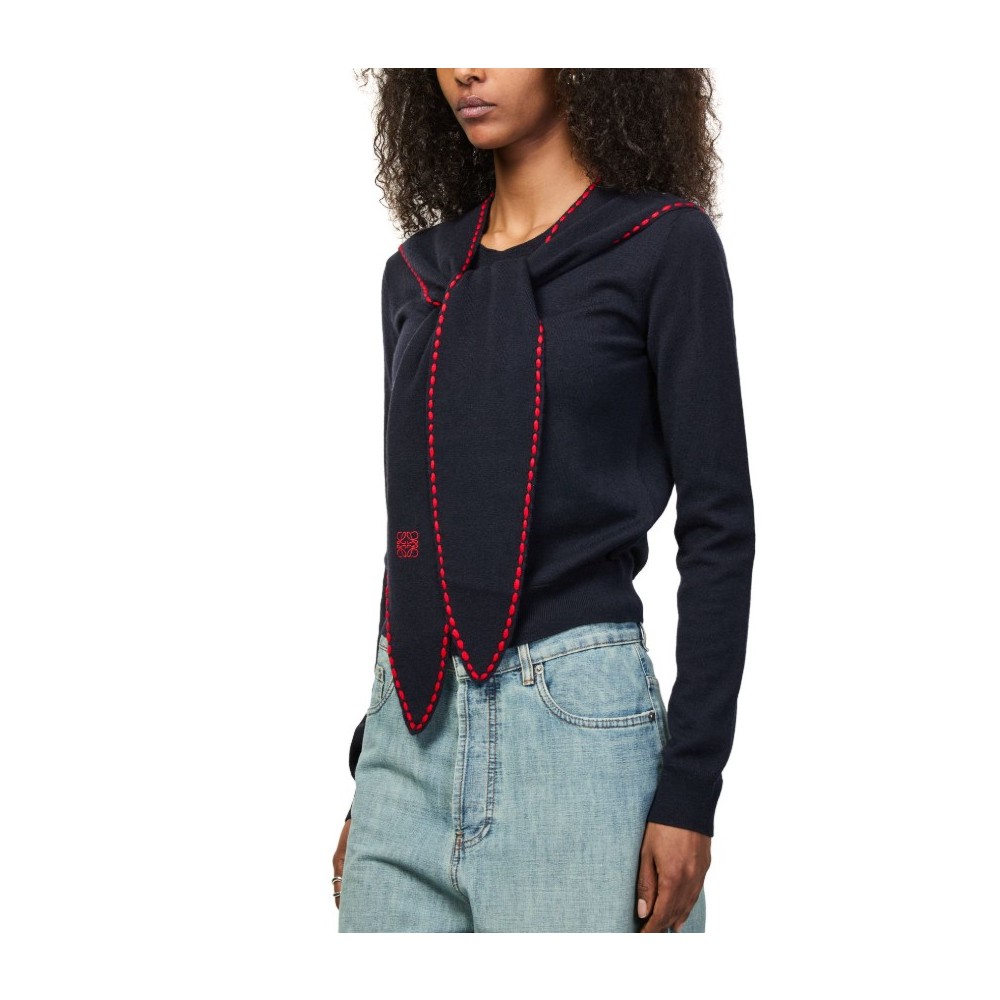 Description : Embroidered logo, round neck, topstitched edges, long-sleeved, contrast stitching.