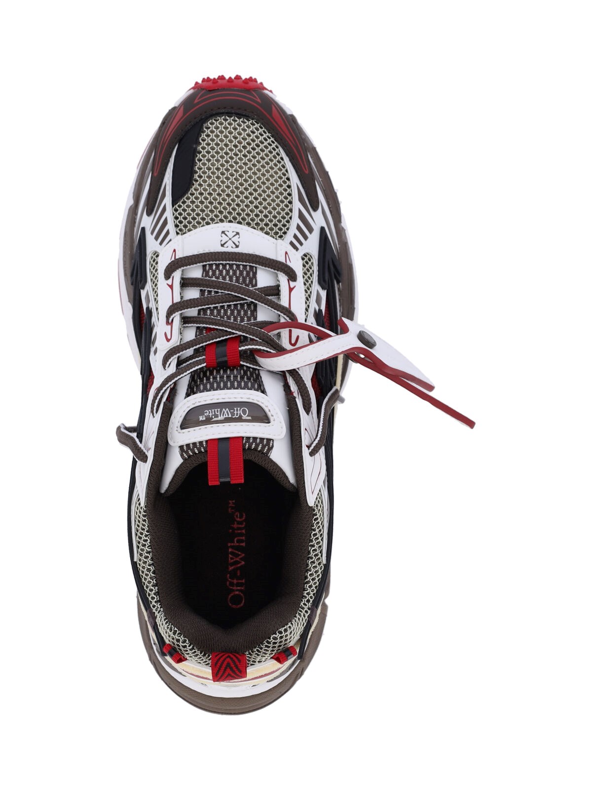 Off-White "Be right back" sneakers in multicolor fabric with round toe, mesh trim, laces, logo on the tongue, removable tag, back tab tab, textured rubber sole.