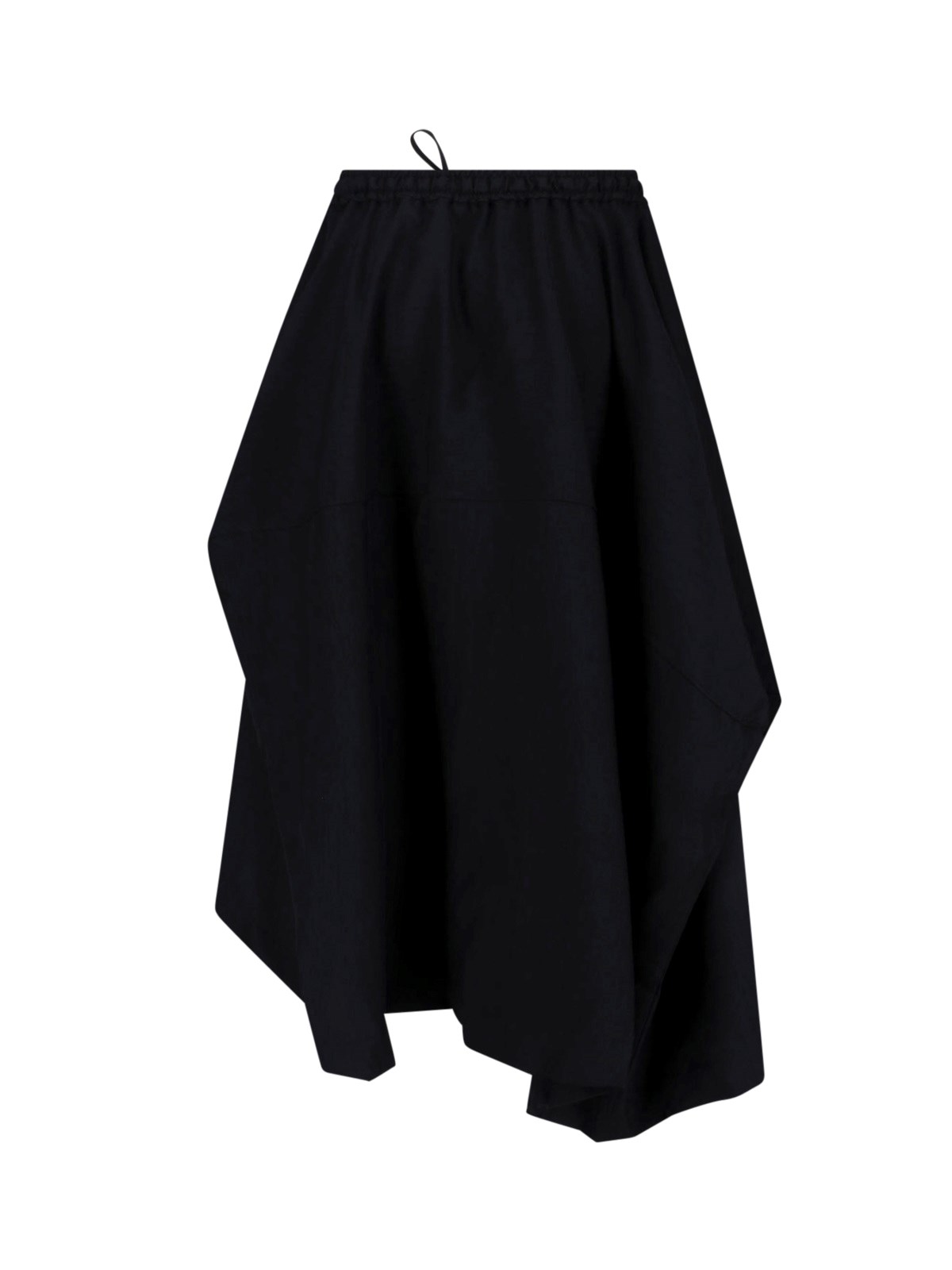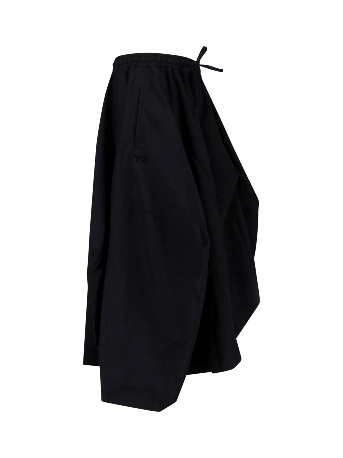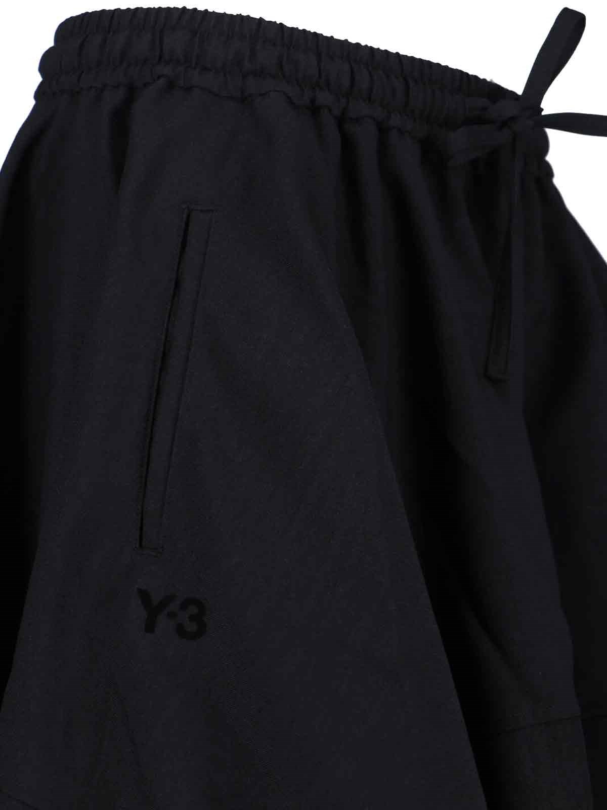 Y-3 sport uniform skirt in black recycled fabric with elastic waistband, adjustable drawstring at the waist, two side pockets, tone-on-tone logo on the side, and asymmetrical hem.